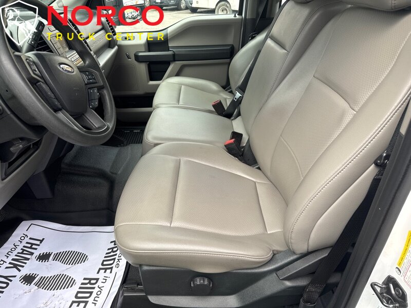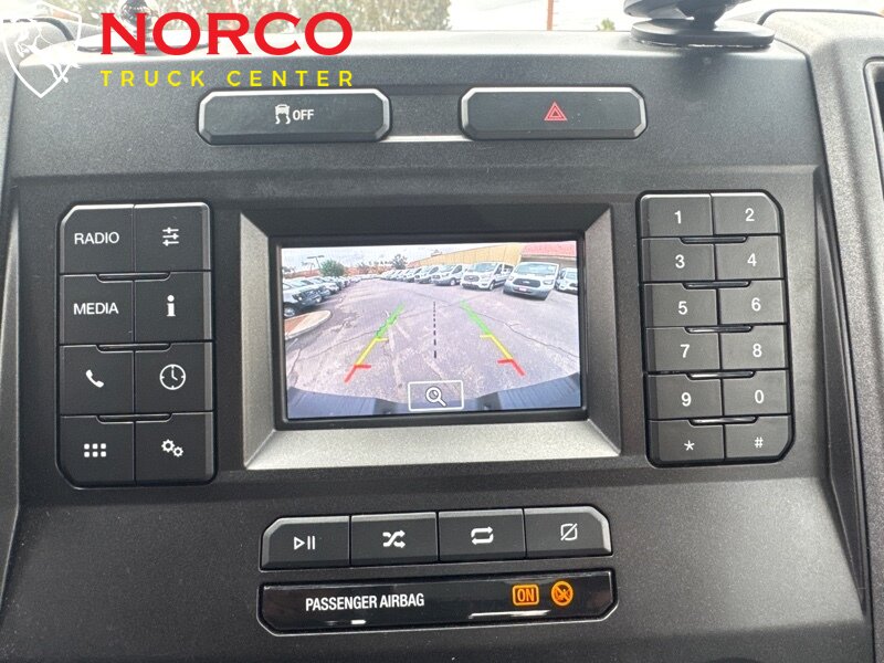 INSTALLED FEATURES: Air filtration, Front air conditioning, Front air conditioning zones: single, Airbag deactivation: passenger switch, Front airbags: dual, Side airbags: front, Side curtain airbags: front / rear, Antenna type: mast, Auxiliary audio input: Bluetooth / USB, Radio: AM/FM / voice operated, Speed sensitive volume control, Total speakers: 4, ABS: 4-wheel, Braking assist, Electronic brakeforce distribution, Front brake type: ventilated disc, Power brakes, Rear brake type: ventilated disc, Armrests: front center, Door sill trim: scuff plate, Floor material: rubber/vinyl, Steering wheel trim: urethane, Assist handle: front / rear, Cupholders: front, Overhead console: front, Power outlet(s): 12V front / USB front / USB-C front, Power steering, Reading lights: front / rear, Rearview mirror: manual day/night, Steering wheel: tilt and telescopic, Steering wheel mounted controls: audio / multi-function / phone / voice control, Storage: accessory hook / door pockets, Vanity mirrors: passenger, Door handle color: black, Front bumper color: black, Grille color: black, Mirror color: black, Pickup bed light, Rear bumper color: black, Tailgate: lift assist / removable, Window trim: black, Connected in-car apps: app marketplace integration, Infotainment: SYNC, Infotainment screen size: 4.2 in., Clock, Digital odometer, External temperature display, Gauge: oil pressure / tachometer / transmission temperature, Instrument cluster screen size: 2.3 in., Powertrain hour meter, Warnings and reminders: low fuel level / maintenance due, Headlights: auto delay off / auto on/off / halogen / quad headlights / wiper activated, Side mirror adjustments: manual / manual folding / manual telescoping, Towing mirrors, Alternator: 157 amps, Battery: maintenance-free, Battery rating: 650 CCA, Battery saver, Automatic hazard warning lights, Camera system: rearview, Child seat anchors: LATCH system, Crumple zones: front, Impact sensor: alert system / door unlock / post-collision safety system, Programmable safety key, Rearview monitor: in dash, Emergency locking retractors: front / rear, Front seatbelts: 3-point, Rear seatbelts: 3-point, Seatbelt pretensioners: front, Seatbelt warning sensor: front, Driver seat manual adjustments: 6 / lumbar / reclining, Front headrests: 2 / adjustable, Front seat type: 40-20-40 split bench, Passenger seat manual adjustments: 4 / reclining, Rear headrests: 3 / adjustable, Rear seat folding: folds up / split, Rear seat type: 60-40 split bench, Upholstery: vinyl, Anti-theft system: vehicle immobilizer, Hill holder control, Roll stability control, Stability control, Traction control, Trailer stability control, Front shock type: gas, Front spring type: coil, Front stabilizer bar, Front suspension classification: independent, Front suspension type: twin I-beam, Rear shock type: gas, Rear spring type: leaf, Rear suspension classification: solid live axle, Rear suspension type: multi-leaf, Electronic messaging assistance: voice operated / with read function, Hands-free phone call integration: voice operated, Smart device app compatibility: FordPass Connect, Smart device app function: engine start / lock operation / maintenance status / vehicle location, Wi-Fi: hotspot, Wireless data link: Bluetooth, Tow hooks: front, Trailer hitch, Trailer wiring: 4-pin / 7-pin, Spare tire mount location: underbody, Spare tire size: full-size, Spare wheel type: steel, Tire Pressure Monitoring System, Wheels: painted steel, Front wipers: variable intermittent, Solar-tinted glass: front
