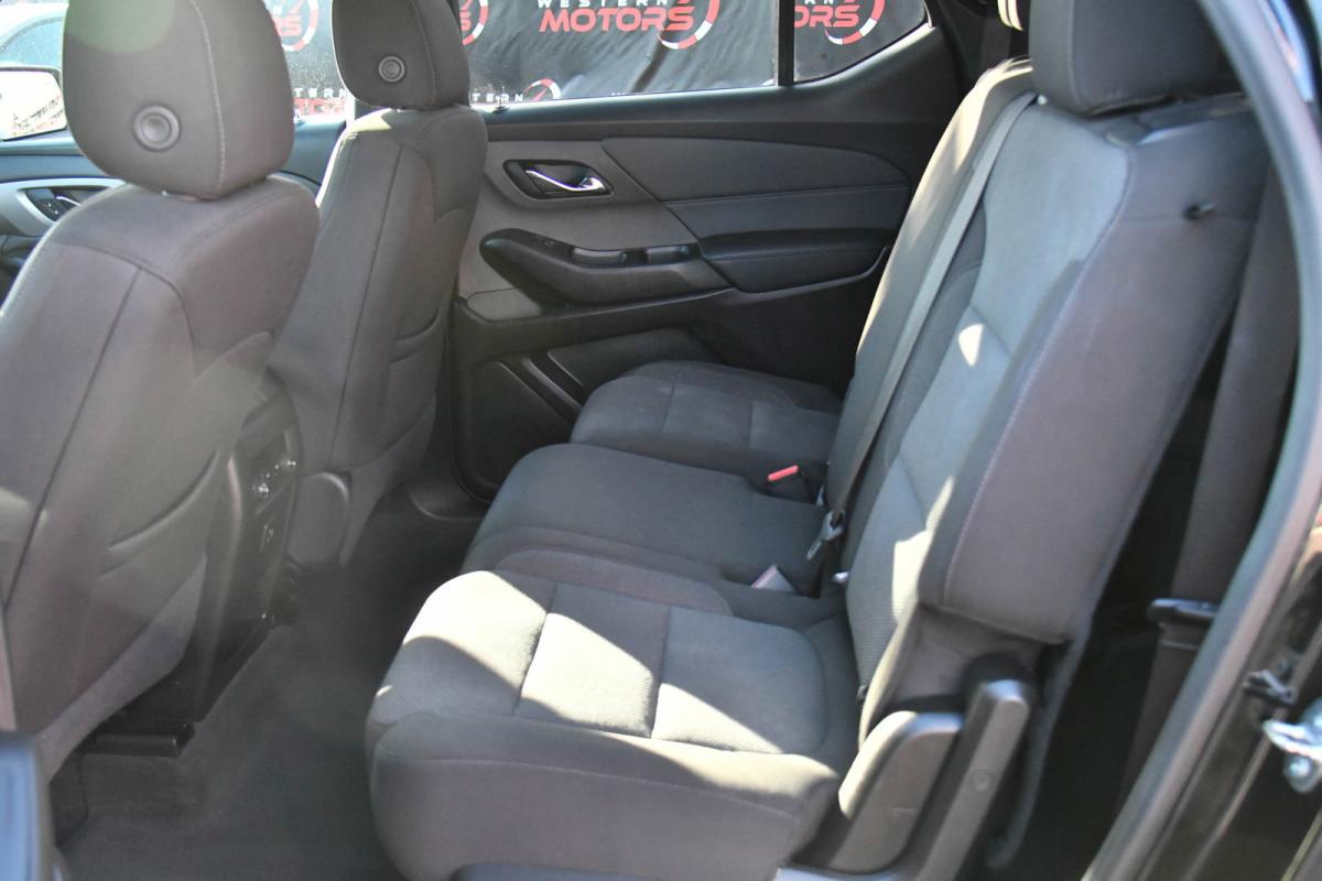 Scores 27 Highway MPG and 18 City MPG! This Chevrolet Traverse boasts a Gas V6 3.6L/217 engine powering this Automatic transmission. WHEELS, 18-INCH (45.7 CM) BRIGHT SILVER-PAINTED ALUMINUM (STD), TRANSMISSION, 9-SPEED AUTOMATIC (STD), TIRES, P255/65R18 ALL-SEASON BLACKWALL (STD).*This Chevrolet Traverse Comes Equipped with These Options *LICENSE PLATE FRONT MOUNTING PACKAGE (will be forced on orders with ship-to states that require a front license plate) , SEATS, FRONT BUCKET (STD), SEATING, 8-PASSENGER (2-3-3 SEATING CONFIGURATION), MOSAIC BLACK METALLIC, LT CLOTH PREFERRED EQUIPMENT GROUP Includes Standard Equipment, JET BLACK, PREMIUM CLOTH SEAT TRIM, ENGINE, 3.6L V6, SIDI, VVT (310 hp [232.0 kW] @ 6800 rpm, 266 lb-ft of torque [361 N-m] @ 2800 rpm) (STD), AUDIO SYSTEM, CHEVROLET INFOTAINMENT 3 SYSTEM 7 diagonal color touchscreen, AM/FM stereo. Additional features for compatible phones include: Bluetooth audio streaming for 2 active devices, voice command pass-through to phone, Apple CarPlay and Android Auto capable (STD), Wireless Phone Charging, Wireless Apple CarPlay/Wireless Android Auto.