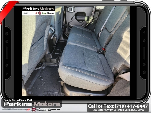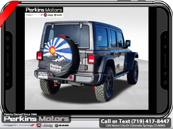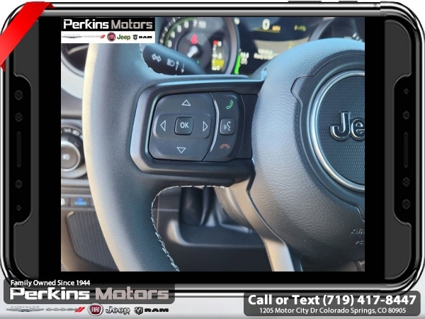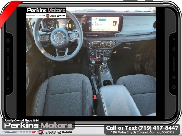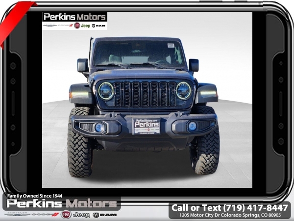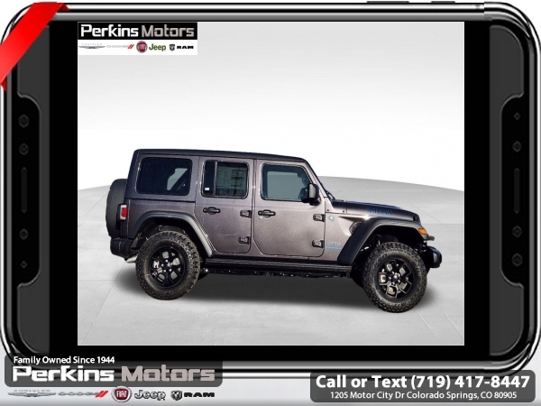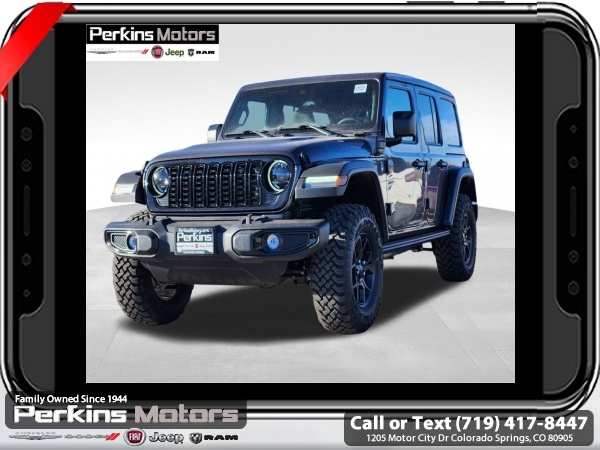 Factory MSRP: $66,200 $12,500 off MSRP! Priced below KBB Fair Purchase Price! Granite Crystal Metallic Clearcoat 2025 Jeep Wrangler Willys 4xe 4WD 8-Speed Automatic 2.0L I4 DOHC<br>2.0L I4 DOHC.<br>Check us out at www.perkinsmotors.com to see our specials! Since opening our doors in 1944, we’ve been proud to serve Colorado Springs, CO, and the surrounding areas of Pueblo, Castle Rock and Denver, CO. Throughout this time of being family owned for 80 years, we’ve maintained a firm commitment to our customers: to offer a wide selection of New Chrysler, Dodge, Fiat, Jeep, and Ram vehicles and quality pre-owned vehicles, and provide a quick, no-hassle car-buying process that ensures everyone drives off the lot satisfied with their purchase.<br><br>Convenience Group (Heated Front Seats and Remote Start System), Quick Order Package 29W Willys 4xe (Conventional Differential Front Axle, Off-Road Plus Mode, and Wheels: 17 x 7.5 Painted Black), 2.0L I4 DOHC, 3.73 Rear Axle Ratio, 4-Wheel Disc Brakes, 8 Speakers, ABS brakes, Air Conditioning, Alloy wheels, Apple CarPlay/Android Auto, Brake assist, Cloth Low-Back Bucket Seats, Compass, Cruise Control, Delay-off headlights, Driver door bin, Driver vanity mirror, Dual front impact airbags, Dual front side impact airbags, Electronic Stability Control, Front anti-roll bar, Front Bucket Seats, Front Center Armrest w/Storage, Front fog lights, Front License Plate Bracket (DISC), Front reading lights, Fully automatic headlights, Heated door mirrors, Illuminated entry, Integrated roll-over protection, Jeep Trail Rated Kit, Low tire pressure warning, MOPAR Cargo Tub Liner, MOPAR Doors Off Mirror Kit, MOPAR Hinge-Gate Reinforcement, MOPAR Plastic Door Sill Guards, Occupant sensing airbag, Outside temperature display, Overhead airbag, Panic alarm, ParkView Rear Back-Up Camera, Passenger door bin, Passenger vanity mirror, Power door mirrors, Power steering, Power windows, Radio data system, Radio: Uconnect 5 w/12.3 Display, Rear anti-roll bar, Rear reading lights, Remote keyless entry, Security system, Sky 1-Touch Power Top, Split folding rear seat, Sport Suspension, Steering wheel mounted audio controls, Tachometer, Telescoping steering wheel, Tilt steering wheel, Traction control, Trip computer, Variably intermittent wipers, Voltmeter, and Wheels: 20 x 8 Machined/Painted Gray. Sale price includes all manufacture's incentives and dealer discounts. Sale price not available on lease or compatible with special APR. $500 - 2025 National Jeep Celebration Event Bonus Cash . Exp. 03/31/2025 $6500 - 2025 National Retail Consumer Cash. Exp. 03/31/2025