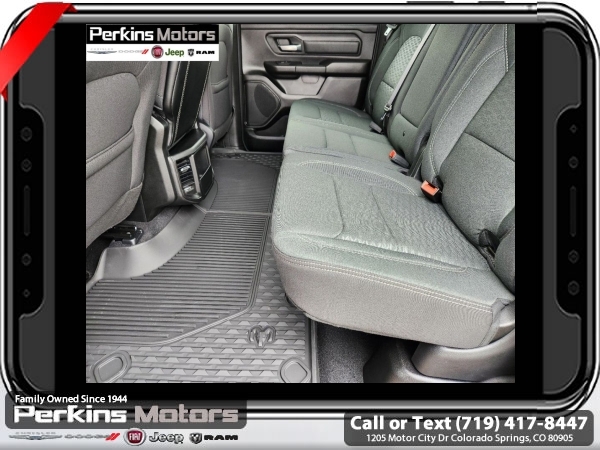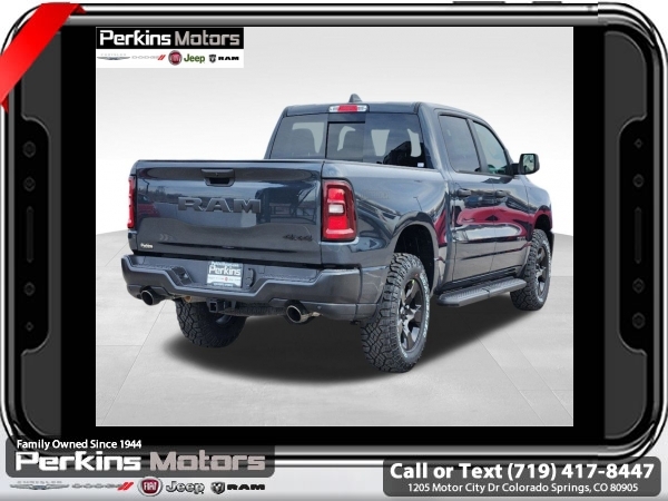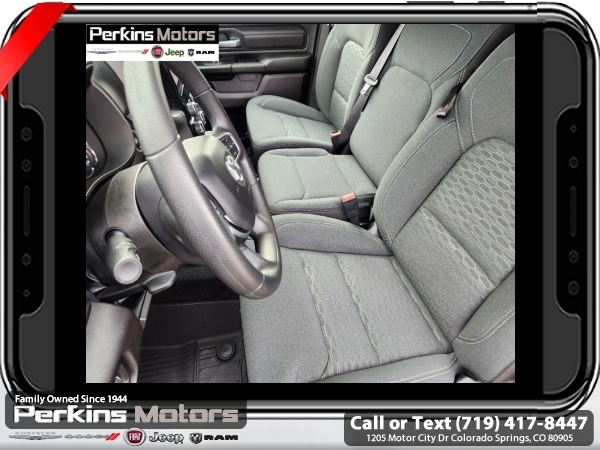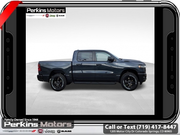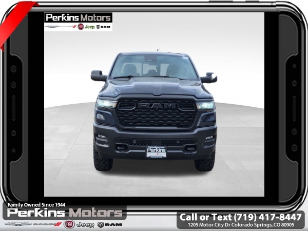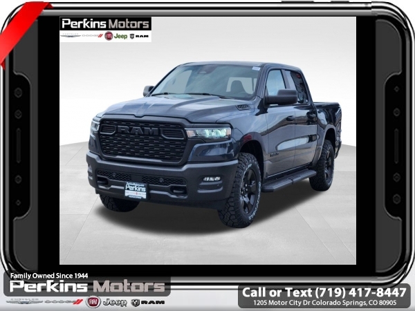 Factory MSRP: $57,440 $12,000 off MSRP! Priced below KBB Fair Purchase Price! River Rock 2025 Ram 1500 4WD 8-Speed Automatic 3.0L I6<br><br>Check us out at www.perkinsmotors.com to see our specials! Since opening our doors in 1944, we’ve been proud to serve Colorado Springs, CO, and the surrounding areas of Pueblo, Castle Rock and Denver, CO. Throughout this time of being family owned for 80 years, we’ve maintained a firm commitment to our customers: to offer a wide selection of New Chrysler, Dodge, Fiat, Jeep, and Ram vehicles and quality pre-owned vehicles, and provide a quick, no-hassle car-buying process that ensures everyone drives off the lot satisfied with their purchase.<br><br>Quick Order Package 21B Warlock (115V Auxiliary Power Outlet, 400W Inverter, Dual Exhaust w/Black Tips, E-Locker Rear Axle, Front Performance Tuned Shock Absorbers, MOPAR Front & Rear Rubber Floor Mats, Raised Ride Height, Warlock Decal, and Wheels: 18 x 8.0 Black Painted Aluminum), 3.21 Rear Axle Ratio, 3.92 Rear Axle Ratio, 4 Way Front Headrests, 4-Wheel Disc Brakes, 40/20/40 Split Bench Seat, 6 Speakers, ABS brakes, Air Conditioning, AM/FM radio, Apple CarPlay/Android Auto, Auto High-beam Headlights, Black Exterior Mirrors, Brake assist, Compass, Cruise Control, Delay-off headlights, Driver door bin, Dual front impact airbags, Dual front side impact airbags, Electronic Stability Control, Exterior Mirrors w/Heating Element, Front anti-roll bar, Front Center Armrest, Front License Plate Bracket, Front reading lights, Front wheel independent suspension, Fully automatic headlights, Heated door mirrors, Heavy Duty Vinyl 40/20/40 Split Bench Seat, Illuminated entry, Low tire pressure warning, Manual Adjust 4-Way Driver Seat, Manual Adjust 4-Way Front Passenger Seat, Manual Folding Exterior Mirrors, Manufacturer's Statement of Origin, Mopar Black Tubular Side Steps, Occupant sensing airbag, Outside temperature display, Overhead airbag, Overhead console, Panic alarm, ParkView Rear Back-Up Camera, Passenger door bin, Passenger vanity mirror, Power door mirrors, Power steering, Power windows, Radio data system, Radio: Uconnect 5 W w/8.4 Display, RAM Grille Badge - Black, Rear anti-roll bar, Rear step bumper, Remote keyless entry, Tachometer, Telescoping steering wheel, Tilt steering wheel, Traction control, Variably intermittent wipers, Voltmeter, and Wheels: 18 x 7.5 Steel Painted. Sale price includes all manufacture's incentives and dealer discounts. Sale price not available on lease or compatible with special APR. $1000 - 2025 National Truck Month Bonus Cash . Exp. 04/30/2025 $1500 - 2025 National Bonus Cash . Exp. 04/30/2025 $1500 - 2025 National Conquest Dealer Cash. Exp. 04/30/2025 $4000 - 2025 National Retail Consumer Cash. Exp. 04/30/2025