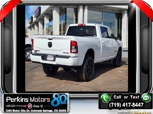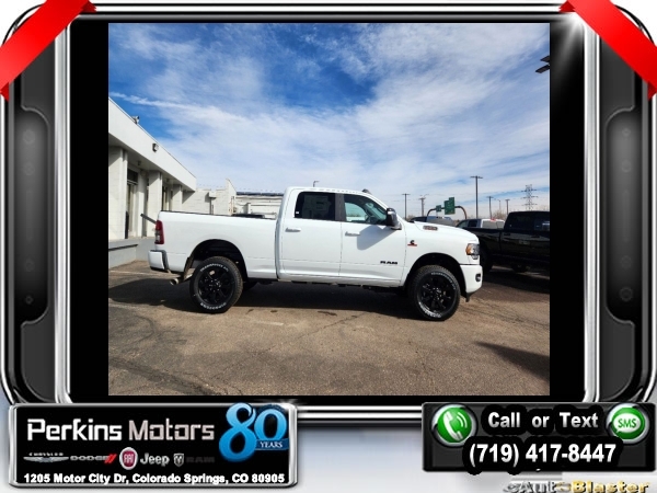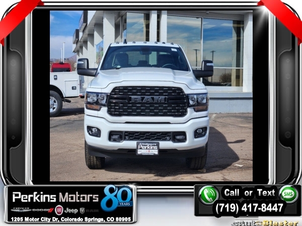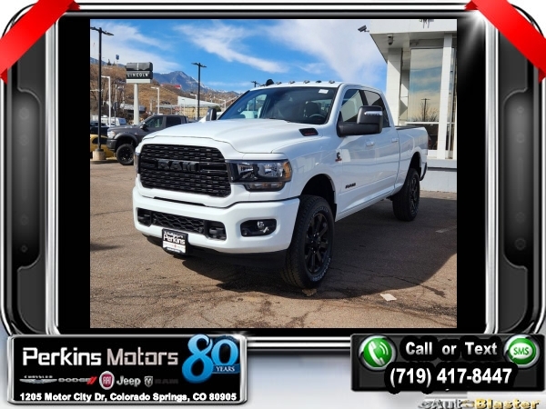 Factory MSRP: $75,740 $10,000 off MSRP! Bright White Clearcoat 2024 Ram 2500 Big Horn 4WD 6-Speed Automatic Cummins 6.7L I6 Turbodiesel<br><br>Check us out at www.perkinsmotors.com to see our specials! Since opening our doors in 1944, we’ve been proud to serve Colorado Springs, CO, and the surrounding areas of Pueblo, Castle Rock and Denver, CO. Throughout this time of being family owned for 80 years, we’ve maintained a firm commitment to our customers: to offer a wide selection of New Chrysler, Dodge, Fiat, Jeep, and Ram vehicles and quality pre-owned vehicles, and provide a quick, no-hassle car-buying process that ensures everyone drives off the lot satisfied with their purchase.<br><br>Heated Seats & Wheel Group (Heated Front Seats, Heated Steering Wheel, Leather Wrapped Steering Wheel, and Steering Wheel Mounted Audio Controls), Level 1 Equipment Group (2 Way Rear Headrest Seat, 2nd Row In Floor Storage Bins, 4 Way Front Headrests, 40/20/40 Split Bench Seat, 4G LTE Wi-Fi Hot Spot, 8.4 Touchscreen Display, Apple CarPlay, Auto Power-Folding Mirrors, Big Horn IP Badge, Black Exterior Mirrors, Bluetooth Handsfree Phone & Audio, Center Hub, Connectivity - US/Canada, Dual Glove Boxes, Exterior Mirrors Courtesy Lamps, Exterior Mirrors w/Heating Element, Exterior Mirrors w/Supplemental Signals, Foam Bottle Insert (Door Trim Panel), Footwell Courtesy Lamp, For Details, Visit DriveUconnect.com, For More Info, Call 800-643-2112, Forward & Reverse Utility Lights, Front Armrest w/Cupholders, Front Center Seat Cushion Storage, Front Fog Lamps, Front Seat Back Map Pockets, Global Telematics Box Module (TBM), Glove Box Lamp, Google Android Auto, GPS Antenna Input, Integrated Center Stack Radio, Integrated Voice Command w/Bluetooth, Locking Lower Glove Box, Manual Adjust 4-Way Front Passenger Seat, Mirror Running Lights, Power 2-Way Driver Lumbar Adjust, Power Adjust 8-Way Driver Seat, Power Adjust Mirrors, Power Adjustable Convex Aux Mirrors, Power Heated Fold Telescope Mirrors, Power Telescoping Mirrors, Rear 60/40 Folding Seat, Rear Dome w/On/Off Switch Lamp, Remote USB Port - Charge Only, Selectable Tire Fill Alert, SiriusXM Radio Service, SiriusXM Satellite Radio, Storage Tray, and Wheels: 18 x 8.0 Polished Aluminum), Night Edition (Black Exterior Truck Badging, Black Headlamp Bezels, Black Interior Accents, Black Ram Head Tailgate Badge, Black Tail Lamp Bezels, Black Wheel Center Hub, Body Color Door Handles, Body Color Grille Surround, Gloss Black Nostrils/MIC Black Grille, Painted Front Bumper, Painted Rear Bumper, ParkSense Front/Rear Park Assist System, and Wheels: 20 x 8.0 Black Painted Aluminum), Protection Group (Tow Hooks), Quick Order Package 2HZ Big Horn, 220 Amp Alternator, 3.73 Axle Ratio, 4-Wheel Disc Brakes, 5th Wheel/Gooseneck Towing Prep Group, 6 Speakers, 9 Alpine Speakers w/Subwoofer, ABS brakes, Active Noise Control System, Air Conditioning, Air Conditioning ATC w/Dual Zone Control, Alexa Built-In, All R1 High Radios, All Radio Equipped Vehicles, Anti-Spin Differential Rear Axle, Brake assist, Bumpers: chrome, Center Stack Storage Drawer, Clearance Lamps, Cloth 40/20/40 Bench Seat, Compass, Connected Travel & Traffic Services, Cruise Control, Dash Pass Thru Wire Circuits, Delay-off headlights, Disassociated Touchscreen Display, Driver door bin, Dual front impact airbags, Dual front side impact airbags, Electronic Stability Control, Electronically Controlled Throttle, Emergency communication system: SiriusXM Guardian, Engine Block Heater, Front anti-roll bar, Front Center Armrest w/Storage, Front License Plate Bracket, Front reading lights, Fully automatic headlights, GPS Navigation, HD Radio, Heated door mirrors, I/P Mounted Auxiliary Switches, Illuminated entry, Low tire pressure warning, Manual Adjust 4-Way Driver Sale price includes all manufacture's incentives and dealer discounts. Sale price not available on lease or compatible with special APR. $2500 - 2024 National Truck Month Bonus Cash. Exp. 0