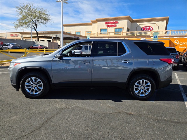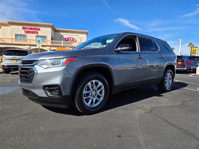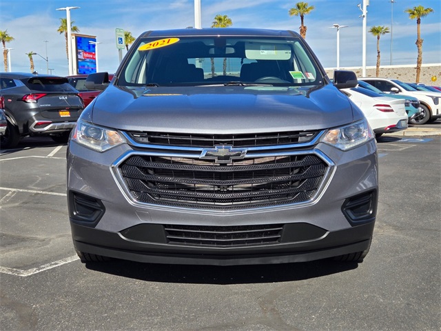 CARFAX One-Owner.Priced below KBB Fair Purchase Price!Odometer is 17030 miles below market average!18/27 City/Highway MPGSatin Steel Metallic 2021 Chevrolet Traverse LS FWD 9-Speed Automatic 3.6L V6 SIDI VVTIf you don't drive here, you can't save here!Awards: * 2021 IIHS Top Safety Pick with optional front crash prevention and specific headlightsPrice may not include recon fee. Floor Liner Package (LPO) (1st & 2nd Row All-Weather Floor Liner (LPO), 3rd Row All-Weather Floor Liner (LPO), and Integrated Cargo Liner (LPO)), Front License Plate Bracket Mounting Package, Preferred Equipment Group 1LS, 3.49 Axle Ratio, 3rd row seats: split-bench, 4-Wheel Disc Brakes, 6 Speakers, 8-Passenger Seating (2-3-3 Seating Configuration), ABS brakes, Air Conditioning, Alloy wheels, AM/FM radio, Apple CarPlay/Android Auto, Automatic temperature control, Brake assist, Bumpers: body-color, Compass, Delay-off headlights, Driver door bin, Driver vanity mirror, Dual front impact airbags, Dual front side impact airbags, Electronic Stability Control, Emergency communication system: OnStar and Chevrolet connected services capable, Four wheel independent suspension, Front & Rear Black Bowtie Emblems (LPO), Front anti-roll bar, Front Bucket Seats, Front Center Armrest, Front dual zone A/C, Front reading lights, Fully automatic headlights, Heated door mirrors, High-Intensity Discharge Headlights, Illuminated entry, Low tire pressure warning, Occupant sensing airbag, Outside temperature display, Overhead airbag, Overhead console, Panic alarm, Passenger door bin, Passenger vanity mirror, Power door mirrors, Power steering, Power windows, Premium Cloth Seat Trim, Radio data system, Radio: Chevrolet Infotainment System AM/FM Stereo, Rear air conditioning, Rear anti-roll bar, Rear reading lights, Rear window defroster, Rear window wiper, Remote keyless entry, Security system, Speed control, Speed-sensing steering, Split folding rear seat, Spoiler, Steering wheel mounted audio controls, Tachometer, Telescoping steering wheel, Tilt steering wheel, Traction control, Trip computer, Variably intermittent wipers, Voltmeter, and Wheels: 18" Bright Silver Painted Aluminum.