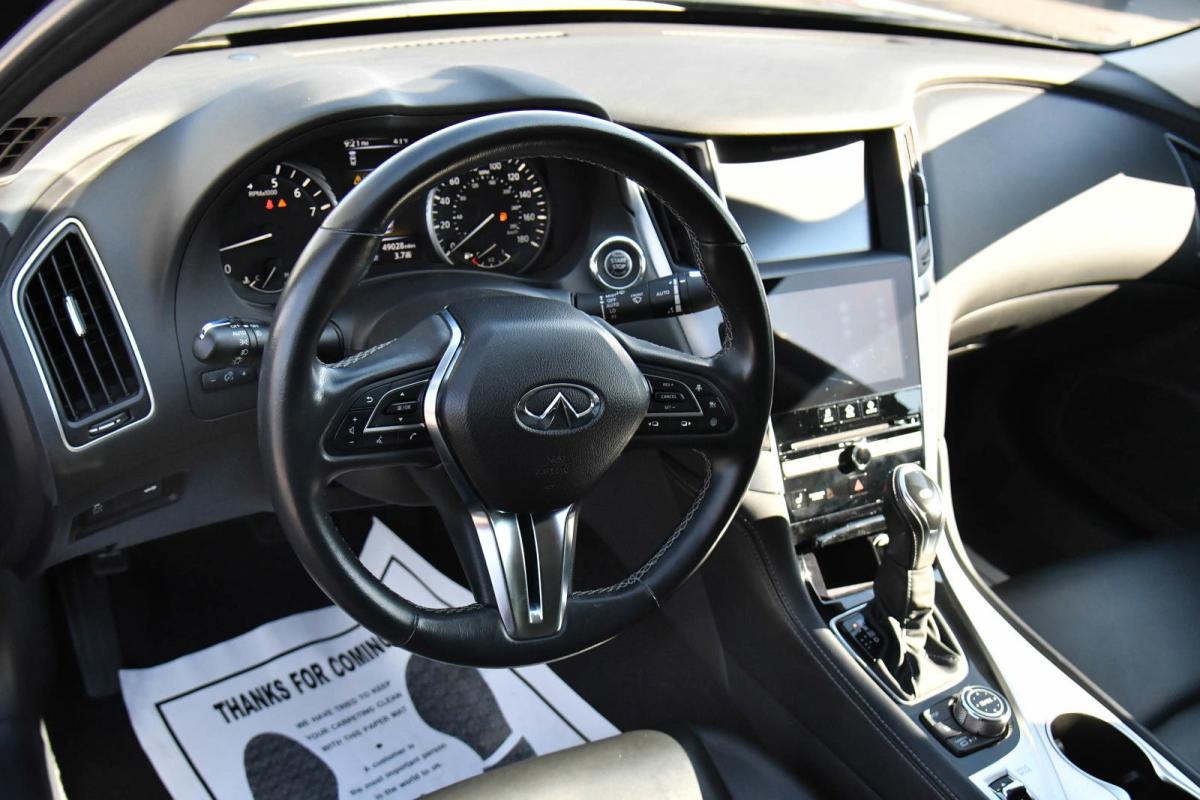 Scores 29 Highway MPG and 20 City MPG! This INFINITI Q50 delivers a Twin Turbo Premium Unleaded V-6 3.0 L/183 engine powering this Automatic transmission. MIDNIGHT BLACK, GRAPHITE, LEATHERETTE SEATING SURFACES, GRAPHITE, LEATHER-APPOINTED SEATING SURFACES.*This INFINITI Q50 Features the Following Options *[M92] CARGO PACKAGE -inc: Shopping Bag Hooks, Cargo Net, First Aid Kit, Trunk Mat, [L92] ALL WEATHER PACKAGE -inc: All-Season Floor Mats, Trunk Protector , [S55] LITERATURE KIT, [N94] INFINITI RADIANT INTERIOR AMBIENT LIGHTING, [N93] INFINITI RADIANT WELCOME LIGHTING, [N92] INFINITI RADIANT ILLUMINATED KICK PLATES, [H92] REAR USB CHARGING PORTS, [E10] PREMIUM PAINT, [B92] SPLASH GUARDS, Window Grid Diversity Antenna.