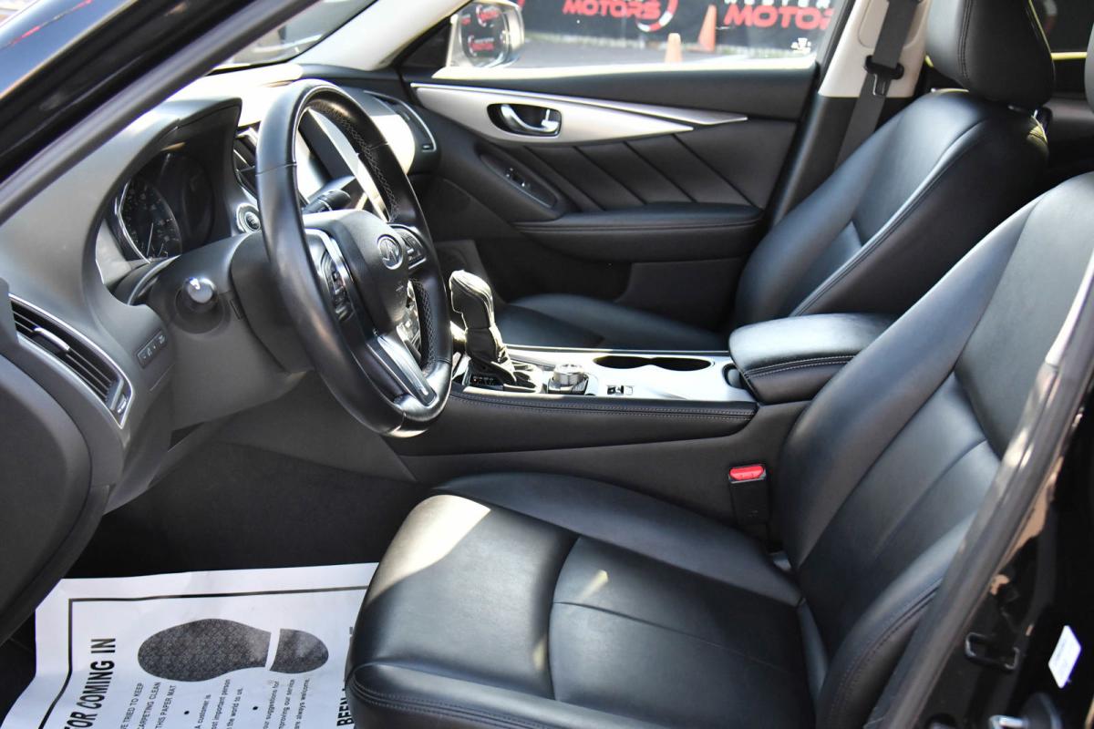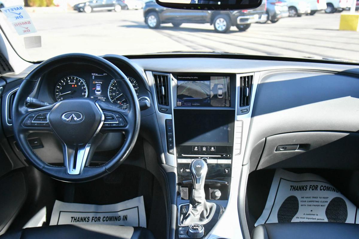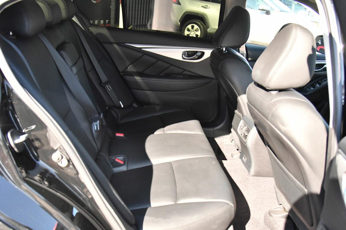 Scores 29 Highway MPG and 20 City MPG! This INFINITI Q50 delivers a Twin Turbo Premium Unleaded V-6 3.0 L/183 engine powering this Automatic transmission. MIDNIGHT BLACK, GRAPHITE, LEATHERETTE SEATING SURFACES, GRAPHITE, LEATHER-APPOINTED SEATING SURFACES.*This INFINITI Q50 Features the Following Options *[M92] CARGO PACKAGE -inc: Shopping Bag Hooks, Cargo Net, First Aid Kit, Trunk Mat, [L92] ALL WEATHER PACKAGE -inc: All-Season Floor Mats, Trunk Protector , [S55] LITERATURE KIT, [N94] INFINITI RADIANT INTERIOR AMBIENT LIGHTING, [N93] INFINITI RADIANT WELCOME LIGHTING, [N92] INFINITI RADIANT ILLUMINATED KICK PLATES, [H92] REAR USB CHARGING PORTS, [E10] PREMIUM PAINT, [B92] SPLASH GUARDS, Window Grid Diversity Antenna.