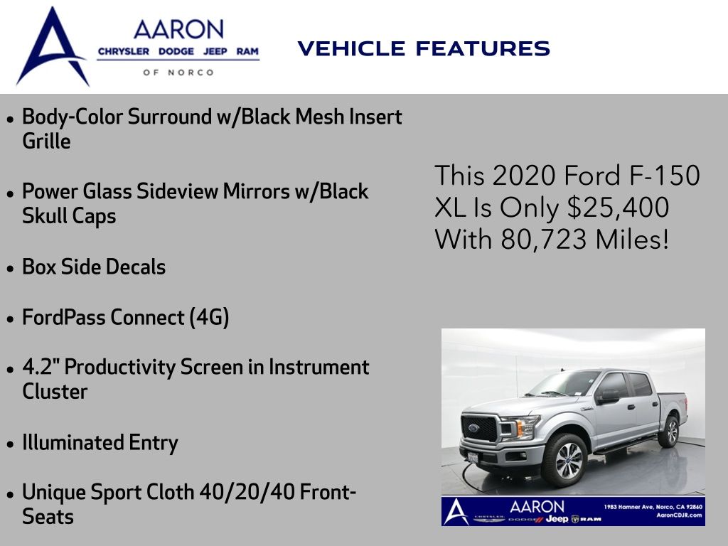Priced below KBB Fair Purchase Price!LIFE TIME WARRANTY, FRESH OIL CHANGE, NEW FILTERS, NEW WIPERS, NEW BATTERY, 4D SuperCrew, 2.7L V6 EcoBoost, 10-Speed Automatic, 4WD, Medium Earth Gray Cloth, 20" Machined-Aluminum Wheels, 4.2" Productivity Screen in Instrument Cluster, Body-Color Front & Rear Bumpers, Body-Color Surround w/Black Mesh Insert Grille, Box Side Decals, Class IV Trailer Hitch Receiver, Compass, Cruise Control, Driver/Passenger Seat Back Pocket, Equipment Group 101A Mid, Exterior Parking Camera Rear, Fog Lamps, FordPass Connect (4G), Illuminated Entry, Low tire pressure warning, Manual Driver/Passenger Lumbar, MyKey, Overhead airbag, Perimeter Alarm, Power Door Locks, Power Front & Rear Windows, Power Glass Sideview Mirrors w/Black Skull Caps, Power Tailgate Lock, Rear Window Defroster, Rear Window Fixed Privacy Glass, STX Appearance Package, SYNC, SYNC 3, Unique Sport Cloth 40/20/40 Front-Seats, Wheels: 17" Silver Painted Aluminum, XL Power Equipment Group, XL Sport Appearance Package.For help with any Vehicle needs please call us directly at 951-621-1288.Clean CARFAX.CARFAX One-Owner.