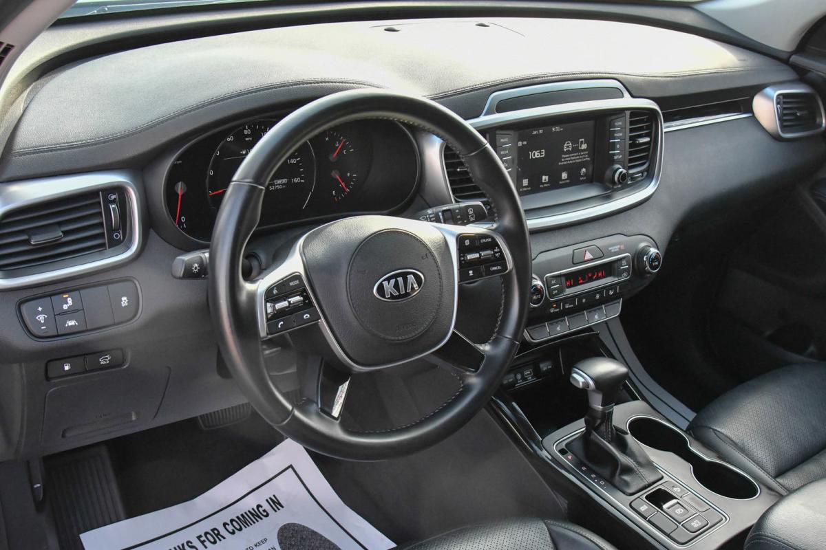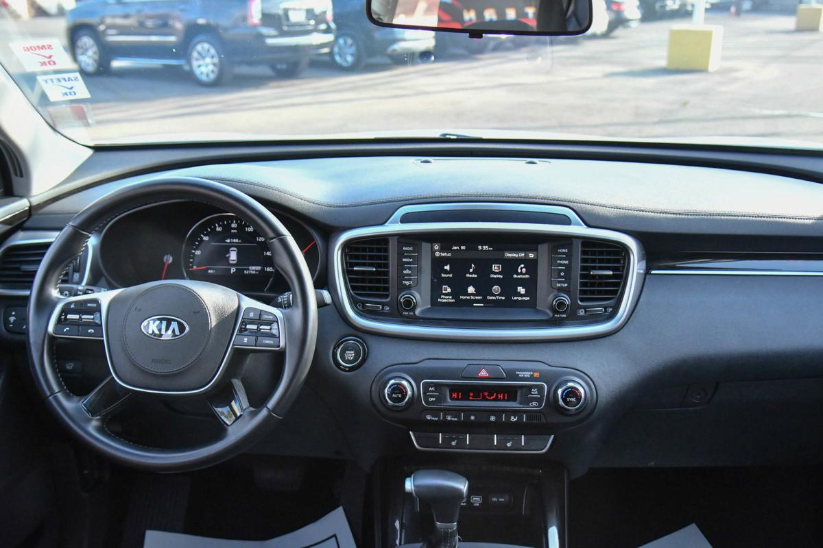 Only 52,720 Miles! Delivers 26 Highway MPG and 19 City MPG! This Kia Sorento boasts a Regular Unleaded V-6 3.3 L/204 engine powering this Automatic transmission. SNOW WHITE PEARL, CARPETED FLOOR MATS (7-PASSENGER), CARGO NET (ENVELOPE).*This Kia Sorento Features the Following Options *BLACK, LEATHER SEAT TRIM, Wheels: 19 x 7.5 Sport Black Alloy, Variable Intermittent Wipers, Trunk/Hatch Auto-Latch, Trip Computer, Transmission: 8-Speed Automatic w/Sportmatic, Transmission w/Driver Selectable Mode, Tires: P235/55R19, Tire Specific Low Tire Pressure Warning, Tailgate/Rear Door Lock Included w/Power Door Locks.