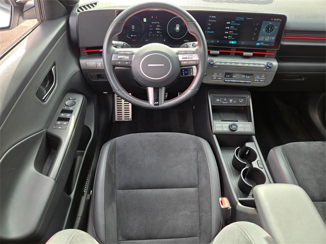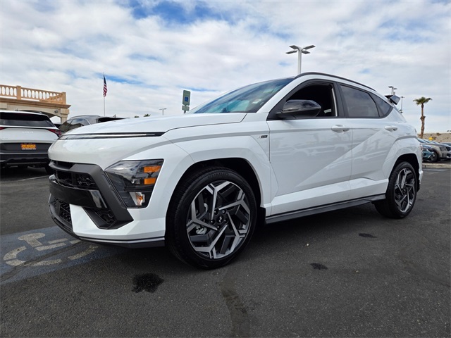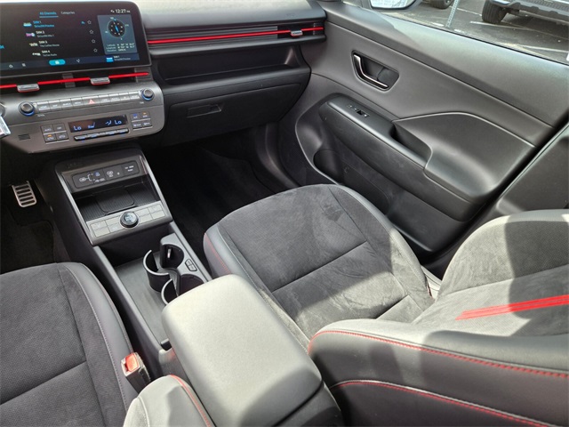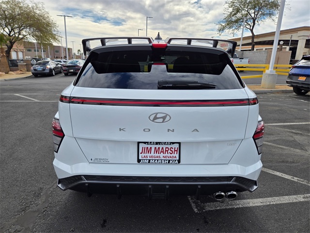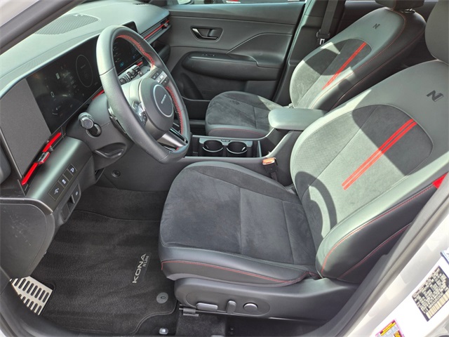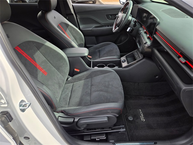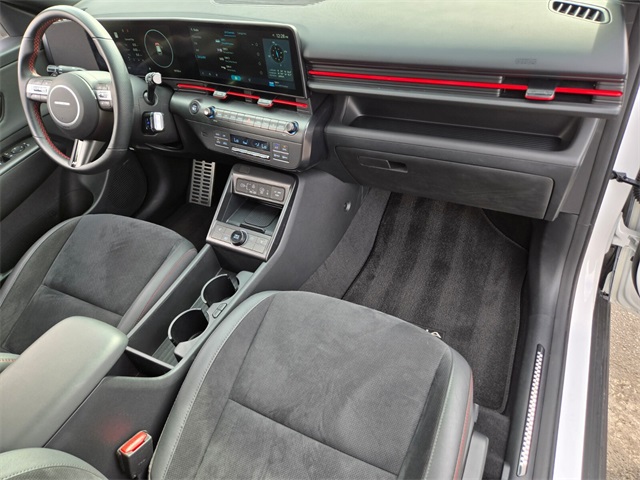 CARFAX One-Owner.26/32 City/Highway MPGAtlas White 2024 Hyundai Kona N Line FWD 8-Speed Automatic I4If you don't drive here, you can't save here!Price may not include recon fee. Option Group 01, 3.510 Axle Ratio, 4-Wheel Disc Brakes, 8 Speakers, ABS brakes, Air Conditioning, Alloy wheels, AM/FM radio: SiriusXM, Apple CarPlay & Android Auto, Auto High-beam Headlights, Auto-dimming Rear-View mirror, Automatic temperature control, Brake assist, Bumpers: body-color, Cargo Net, Cargo Tray, Carpeted Floor Mats, Column-Mounted Shift-By-Wire, Delay-off headlights, Driver door bin, Driver vanity mirror, Dual front impact airbags, Dual front side impact airbags, Electronic Stability Control, Emergency communication system: Bluelink+, Exterior Parking Camera Rear, Front anti-roll bar, Front Bucket Seats, Front Center Armrest, Front dual zone A/C, Front reading lights, Front wheel independent suspension, Fully automatic headlights, Heated door mirrors, Heated front seats, Heated Front Sport Bucket Seats, Illuminated entry, Leather Shift Knob, Leather steering wheel, Low tire pressure warning, N-Line Alcantara Sport Combination Seat Trim, Navigation System, Occupant sensing airbag, Outside temperature display, Overhead airbag, Panic alarm, Passenger door bin, Passenger vanity mirror, Power door mirrors, Power driver seat, Power moonroof, Power steering, Power windows, Radio: AM/FM/HD Radio/SiriusXM Audio System, Rear seat center armrest, Rear window defroster, Rear window wiper, Remote keyless entry, Security system, Speed control, Speed-sensing steering, Split folding rear seat, Spoiler, Steering wheel mounted audio controls, Tachometer, Telescoping steering wheel, Tilt steering wheel, Traction control, Trip computer, Turn signal indicator mirrors, Variably intermittent wipers, and Wheels: 19" x 7.5J Metallic Alloy.