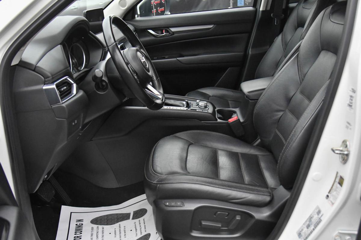 Boasts 30 Highway MPG and 24 City MPG! This Mazda CX-5 boasts a Regular Unleaded I-4 2.5 L/152 engine powering this Automatic transmission. RHODIUM WHITE METALLIC PAINT, RHODIUM WHITE METALLIC, MAZDA NAVIGATION SYSTEM.*This Mazda CX-5 Comes Equipped with These Options *BLACK, LEATHER SEAT TRIM, Wheels: 17 x 7J Aluminum Alloy -inc: gray metallic finish, Trunk/Hatch Auto-Latch, Trip Computer, Transmission: 6-Speed SKYACTIV-Drive Automatic -inc: manual-shift mode and sport mode, Transmission w/Sequential Shift Control and Oil Cooler, Tracker System, Tires: P225/65R17 AS, Tailgate/Rear Door Lock Included w/Power Door Locks, Strut Front Suspension w/Coil Springs.
