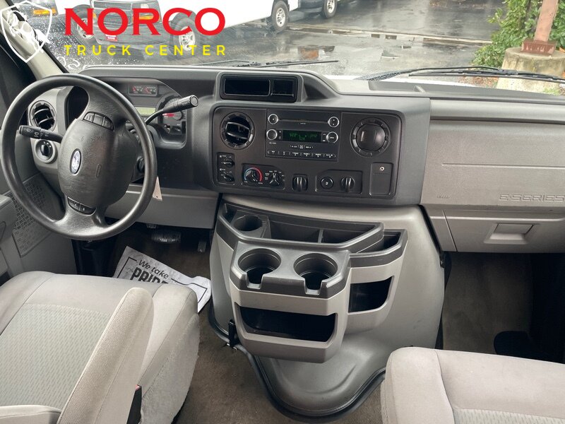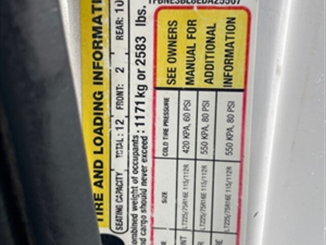 -- INSTALLED FEATURES: Front air conditioning, Front air conditioning zones: single, Rear air conditioning, Rear air conditioning zones: single, Airbag deactivation: passenger switch, Front airbags: dual, Antenna type: mast, Auxiliary audio input: jack, In-Dash CD: single disc, Radio: AM/FM, Total speakers: 6, ABS: 4-wheel, Electronic brakeforce distribution, Front brake type: ventilated disc, Rear brake type: ventilated disc, Floor mat material: carpet, Floor material: carpet, Floor mats: front, Ashtray, Cargo area light, Center console: front console with storage, Cruise control, Cupholders: front / rear, One-touch windows: 1, Power outlet(s): 12V front / 12V rear, Power steering, Reading lights: front, Steering wheel: tilt, Steering wheel mounted controls: cruise control, Storage: door pockets, Vanity mirrors: dual illuminating, Door handle color: black, Front bumper color: chrome, Grille color: chrome, Mirror color: black, Rear bumper color: chrome, Rear trunk/liftgate: barn, Side door type: passenger-side hinged swing-out, Clock, Gauge: tachometer, Warnings and reminders: low fuel level, Side mirror adjustments: power, Alternator: 120 amps, Battery: maintenance-free, Battery rating: 650 CCA, OEM roof height: undefined, Front seatbelts: 3-point, Rear seatbelts: 3-point, Seatbelt pretensioners: front, Third row seatbelts: 3-point, Driver seat manual adjustments: height, Fourth row seat type: bench, Front headrests: 2 / integrated, Front seat type: captains chairs, Passenger seat manual adjustments, Rear seat type: bench, Third row seat type: bench, Upholstery: cloth, Power door locks, Roll stability control, Stability control, Traction control, Front shock type: gas, Front spring type: coil, Front stabilizer bar, Front suspension classification: independent, Front suspension type: twin I-beam, Rear shock type: gas, Rear spring type: leaf, Rear suspension classification: solid live axle, Rear suspension type: multi-leaf, Spare tire mount location: underbody, Spare tire size: full-size matching, Spare wheel type: steel, Tire Pressure Monitoring System, Wheel covers: full, Wheels: steel, Front wipers: intermittent, Power windows, Tinted glass