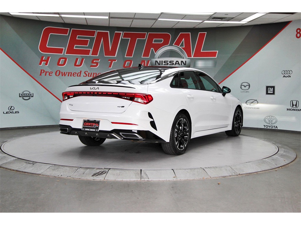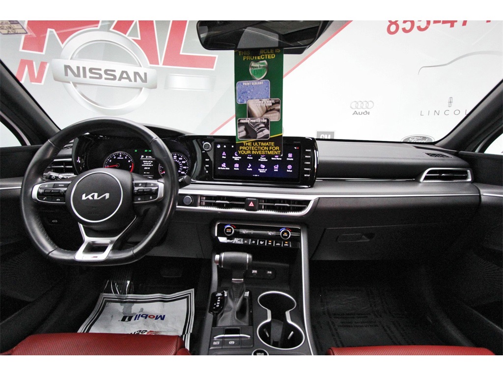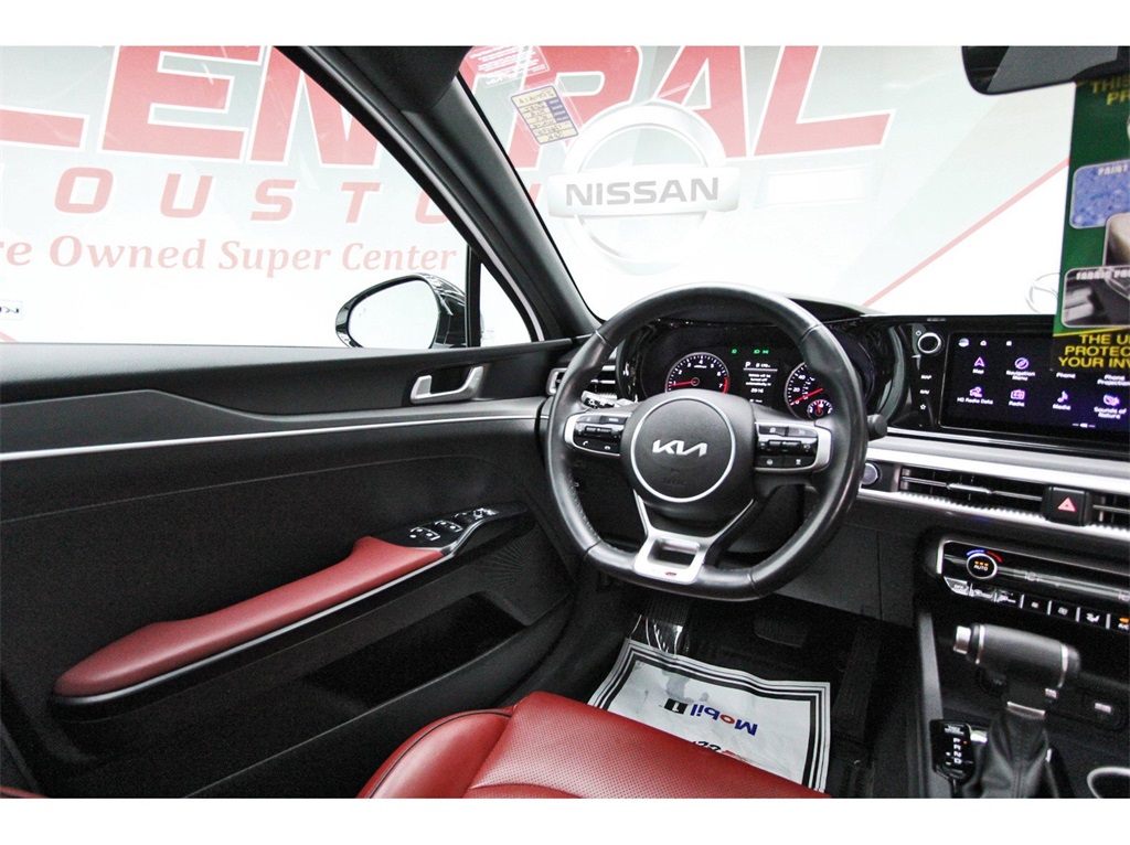 Central Houston Nissan is proud to present you with another True Market Priced Pre-Owned Vehicle. This 2022 Kia K5 GT-Line Nissan CPO Select is loaded with the following Factory Options: Nissan CPO Select Certified GT-Line FWD Premium Package (Forward Collision Avoidance-Assist - Cyclist, Forward Collision Avoidance-Assist - Junction Turn, Gloss Black Pillar & Door Frame Cover, Highway Driving Assist, LED Interior Lighting, LED Projection Headlights, Navigation-Based Smart Cruise Control - Curve, Panoramic Sunroof, and Smart Cruise Control w/Stop & Go), GT-Line Red Interior Package, Nissan CPO Select Certified, 4-Wheel Disc Brakes, 6 Speakers, ABS brakes, Air Conditioning, Alloy wheels, AM/FM radio: SiriusXM, Apple CarPlay & Android Auto, Auto High-beam Headlights, Automatic temperature control, Brake assist, Bumpers: body-color, Cargo Mat, Carpeted Floor Mats, Cloth/Leatherette Seat Trim, Delay-off headlights, Driver door bin, Driver vanity mirror, Dual front impact airbags, Dual front side impact airbags, Electronic Stability Control, Four wheel independent suspension, Front anti-roll bar, Front Bucket Seats, Front Center Armrest, Front dual zone A/C, Front fog lights, Front reading lights, Fully automatic headlights, Heated door mirrors, Illuminated entry, Knee airbag, Low tire pressure warning, Navigation System, Occupant sensing airbag, Outside temperature display, Overhead airbag, Overhead console, Panic alarm, Passenger door bin, Passenger vanity mirror, Power door mirrors, Power driver seat, Power steering, Power windows, Radio data system, Radio: AM/FM/MP3 Audio System, Rear anti-roll bar, Rear seat center armrest, Rear side impact airbag, Rear window defroster, Remote keyless entry, Security system, Speed control, Speed-sensing steering, Split folding rear seat, Spoiler, Sport steering wheel, Steering wheel mounted audio controls, Tachometer, Telescoping steering wheel, Tilt steering wheel, Traction control, Trip computer, Turn signal indicator mirrors, Variably intermittent wipers, and Wheels: 7.5J x 18" Gloss Black Machined Finish Alloy!!Central Houston Nissan is more than just your typical car dealership. When our customers visit us, our goal is to provide quality vehicles, exceptional service and a friendly atmosphere. Our staff has been trained to create ease during your purchase or service experience and we are always making sure you get everything you want and deserve out of your visit. Our vision and mission is an employee-centered and customer-focused environment. Vehicles may be subject to prep package and market adjustment. When you buy from Central Houston Nissan, we'll make it the best car buying experience you've ever had. When you purchase a New Nissan or a qualifying Pre-Owned vehicle from Central Houston Nissan, you are automatically enrolled into our Central Houston Nissan Central Care Program at no cost to you. You can’t beat that! Vehicles may be subject to prep package and market adjustment. Stop by 2901 S Loop W, Houston, Texas 77054 today!!!
