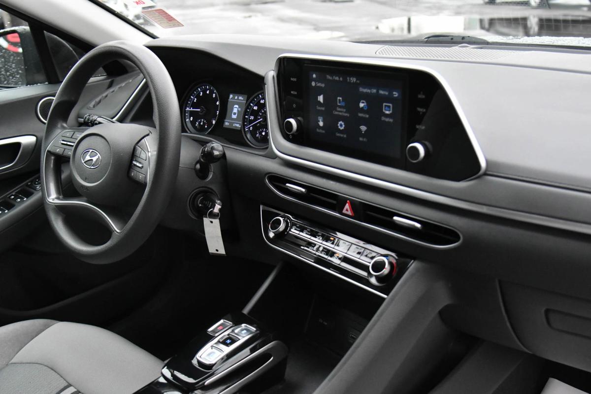 ALG Residual Value Awards, Residual Value Awards. Boasts 38 Highway MPG and 28 City MPG! This Hyundai Sonata boasts a Regular Unleaded I-4 2.5 L/152 engine powering this Automatic transmission. REAR BUMPER APPLIQUE, OPTION GROUP 01 -inc: standard equipment, HAMPTON GRAY.*This Hyundai Sonata Comes Equipped with These Options *CARGO PACKAGE -inc: Reversible Cargo Tray, Cargo Net, Cargo Hook , DARK GRAY, PREMIUM CLOTH SEATING SURFACES, CARPETED FLOOR MATS, Window Grid Antenna, Wheels: 16 x 6.5J Aluminum Alloy, Wheels w/Silver Accents, Trunk Rear Cargo Access, Trip Computer, Transmission: 8-Speed Electronic Automatic -inc: drive mode select, idle stop and go (ISG), shift-by-wire and OD lock-up torque converter, Transmission w/Oil Cooler.