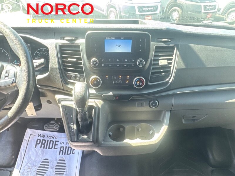 INSTALLED FEATURES: Front air conditioning, Front air conditioning zones: single, Airbag deactivation: passenger switch, Front airbags: dual, Side airbags: front, Side curtain airbags: front, Antenna type: mast, Auxiliary audio input: Bluetooth / USB, Radio: AM/FM, Total speakers: 4, ABS: 4-wheel, Braking assist, Cornering brake control, Electronic brakeforce distribution, Emergency braking preparation, Front brake type: ventilated disc, Power brakes, Rear brake type: ventilated disc, Armrests: dual front, Floor material: rubber/vinyl, Shift knob trim: urethane, Steering wheel trim: urethane, Assist handle: front / rear, Capless fuel filler system, Cargo area light, Center console: front console with storage, Cupholders: front, Multi-function remote: keyless entry / panic alarm / trunk release, Overhead console: front, Power outlet(s): 12V front, Power steering: variable/speed-proportional, Reading lights: front, Steering wheel: tilt and telescopic, Steering wheel mounted controls: audio / multi-function / phone, Storage: cargo tie-down anchors and hooks / door pockets, Sun visors, Body side moldings: black, Door handle color: black, Front bumper color: black, Grille color: black / black surround, Mirror color: black, Rear bumper color: black, Rear trunk/liftgate: barn, Side door type: passenger-side manual sliding, Window trim: black, Infotainment screen size: 4 in., Clock, Digital odometer, Gauge: tachometer, Trip odometer, Warnings and reminders: low fuel level, Headlights: auto high beam dimmer / halogen / wiper activated, Side mirror adjustments: manual folding / power, Alternator: 250 amps, Auxiliary transmission fluid cooler, Battery: maintenance-free, Battery rating: 610 CCA, OEM roof height: medium, Automatic emergency braking: front, Camera system: rearview, Driver attention alert system, Impact sensor: door unlock / post-collision safety system, Lane deviation sensors, Pre-collision warning system: audible warning / visual warning, Rearview monitor: in dash, Front seatbelts: 3-point, Driver seat manual adjustments: 2 / reclining, Front headrests: 2 / adjustable, Front seat type: bucket, Passenger seat manual adjustments: 2 / reclining, Upholstery: vinyl, Anti-theft system: vehicle immobilizer, Power door locks: auto-locking, Crosswind stabilization, Hill holder control, Roll stability control, Stability control, Traction control, Trailer stability control, Front shock type: gas, Front spring type: coil, Front stabilizer bar, Front struts: MacPherson, Front suspension classification: independent, Front suspension type: lower control arms, Rear shock type: gas, Rear spring type: leaf, Rear suspension classification: solid live axle, Rear suspension type: multi-leaf, Smart device app compatibility: FordPass Connect, Smart device app function: engine start / lock operation / maintenance status / vehicle location, Wi-Fi: hotspot, Wireless data link: Bluetooth, Spare tire mount location: underbody, Spare tire size: full-size, Spare wheel type: steel, Tire Pressure Monitoring System, Wheel covers: partial, Wheels: painted steel, Front wipers: rain sensing / variable intermittent, Power windows, Solar-tinted glass