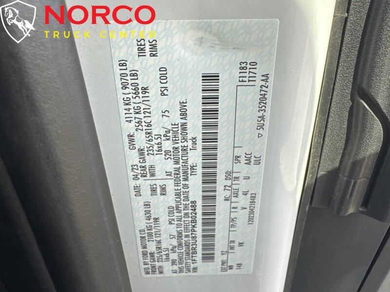 INSTALLED FEATURES: Front air conditioning, Front air conditioning zones: single, Airbag deactivation: passenger switch, Front airbags: dual, Side airbags: front, Side curtain airbags: front, Antenna type: mast, Auxiliary audio input: Bluetooth / USB, Radio: AM/FM, Total speakers: 4, ABS: 4-wheel, Braking assist, Cornering brake control, Electronic brakeforce distribution, Electronic parking brake: auto off, Emergency braking preparation, Front brake type: ventilated disc, Power brakes, Rear brake type: ventilated disc, Armrests: dual front, Floor material: rubber/vinyl, Shift knob trim: urethane, Steering wheel trim: urethane, Assist handle: front / rear, Capless fuel filler system, Cargo area light, Center console: front console with storage, Cupholders: front, Multi-function remote: keyless entry / panic alarm / trunk release, One-touch windows: 1, Power outlet(s): 12V front / USB front, Power steering: variable/speed-proportional, Reading lights: front, Steering wheel: tilt and telescopic, Steering wheel mounted controls: audio / multi-function / phone, Storage: door pockets, Sun visors, Body side moldings: black, Door handle color: black, Front bumper color: black, Grille color: black / black surround, Mirror color: black, Rear bumper color: black, Rear trunk/liftgate: barn, Side door type: passenger-side manual sliding, Window trim: black, Infotainment screen size: 4 in., Clock, Digital odometer, External temperature display, Fuel economy display: range, Gauge: tachometer, Trip odometer, Warnings and reminders: coolant temperature warning / low fuel level / low oil pressure, Headlights: auto delay off / auto high beam dimmer / auto on/off / halogen, Side mirror adjustments: manual folding / power, 4WD type: on demand, Alternator: 250 amps, Auto start/stop, Auxiliary transmission fluid cooler, Battery: AGM / maintenance-free, Limited slip differential: rear, OEM roof height: high, Automatic emergency braking: front / front pedestrian, Camera system: rearview, Driver attention alert system, Impact sensor: door unlock / post-collision safety system, Lane deviation sensors, Pre-collision warning system: audible warning / pedestrian detection / visual warning, Rearview monitor: in dash, Safety brake pedal system, Emergency locking retractors: front, Front seatbelts: 3-point, Seatbelt pretensioners: front, Seatbelt warning sensor: front, Driver seat manual adjustments: 2 / reclining, Front headrests: 2 / adjustable, Front seat type: bucket, Passenger seat manual adjustments: 2 / reclining, Upholstery: vinyl, Anti-theft system: alarm / vehicle immobilizer, Power door locks: auto-locking, Crosswind stabilization, Hill holder control, Roll stability control, Stability control, Traction control, Trailer stability control, Front shock type: gas, Front spring type: coil, Front stabilizer bar, Front struts: MacPherson, Front suspension classification: independent, Front suspension type: lower control arms, Rear shock type: gas, Rear spring type: leaf, Rear suspension classification: solid live axle, Rear suspension type: multi-leaf, Hands-free phone call integration, Smart device app compatibility: FordPass Connect, Smart device app function: engine start / lock operation / maintenance status / vehicle location, Wi-Fi: hotspot, Wireless data link: Bluetooth, Spare tire mount location: underbody, Spare tire size: full-size, Spare wheel type: steel, Tire Pressure Monitoring System, Wheel covers: partial, Wheels: painted steel, Front wipers: rain sensing / variable intermittent, Power windows: safety reverse, Solar-tinted glass