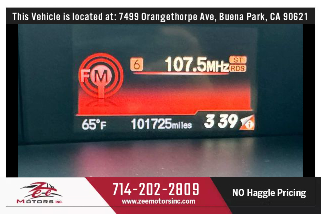 THIS VEHICLE IS LOCATED AT OUR BUENA PARK LOCATION: 7499 ORANGETHORPE AVE, BUENA PARK CA 90621. Please Call us at 714-202-2809 Ext #2 , Or email us at BUENAPARK@ZEEMOTORSINC.COM To Check Availability. * 2-OWNER* Clean Title. * Clean Carfax. * No Accidents.* Very Well Maintained Vehicle, Service records available on CARFAX. * Very Clean Inside and Outside.* Passed Safety inspection and Smog Check.Attention to all buyers: All special prices are cash price and it does not include sales tax, license and registration fee, documentation fee, smog fee or any dealer add-ons / accessories. Additional financing charges may apply on approved credit. While great effort is made to ensure the accuracy of the information provided on this site, errors do occur so please verify information with a team member. This is easily done by contacting us via phone or email (Call or Text 657-346-8544)