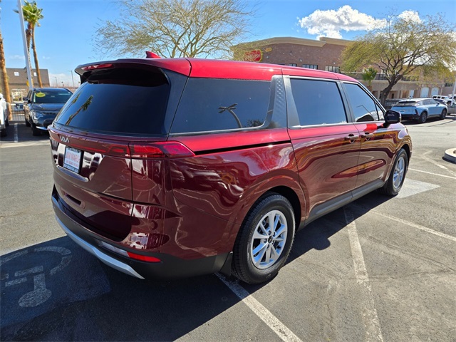 Recent Arrival!CARFAX One-Owner.Priced below KBB Fair Purchase Price!Odometer is 18028 miles below market average!19/26 City/Highway MPGFlare Red 2022 Kia Carnival LXS FWD 8-Speed Automatic V6If you don't drive here, you can't save here!Price may not include recon fee. 2-Way Power Driver's Lumbar Support, 3.51 Axle Ratio, 3rd row seats: split-bench, 4-Wheel Disc Brakes, 6 Speakers, 8 Way Power Driver's Seat, ABS brakes, Air Conditioning, Alloy wheels, AM/FM radio, Apple CarPlay & Android Auto, Artificial Leather Seat Trim, Auto High-beam Headlights, Brake assist, Bumpers: body-color, Cargo Mat, Cargo Net, Carpeted Floor Mats (8-Passenger), Delay-off headlights, Driver door bin, Driver vanity mirror, Dual front impact airbags, Dual front side impact airbags, Electronic Stability Control, Four wheel independent suspension, Front anti-roll bar, Front Bucket Seats, Front Center Armrest, Front reading lights, Fully automatic headlights, Heated door mirrors, Heated Front Bucket Seats, Heated front seats, Illuminated entry, Knee airbag, Leather Shift Knob, Leather steering wheel, Low tire pressure warning, Mud Guards, Occupant sensing airbag, Outside temperature display, Overhead airbag, Overhead console, Panic alarm, Passenger door bin, Passenger vanity mirror, Power door mirrors, Power driver seat, Power steering, Power windows, Radio: AM/FM Audio System, Rear air conditioning, Rear anti-roll bar, Rear reading lights, Rear window defroster, Rear window wiper, Reclining 3rd row seat, Remote keyless entry, Security system, Speed control, Speed-sensing steering, Split folding rear seat, Spoiler, Steering wheel mounted audio controls, Tachometer, Telescoping steering wheel, Tilt steering wheel, Traction control, Trip computer, Turn signal indicator mirrors, Variably intermittent wipers, and Wheels: 6.5J x 17" Clear Silver Painted Alloy.