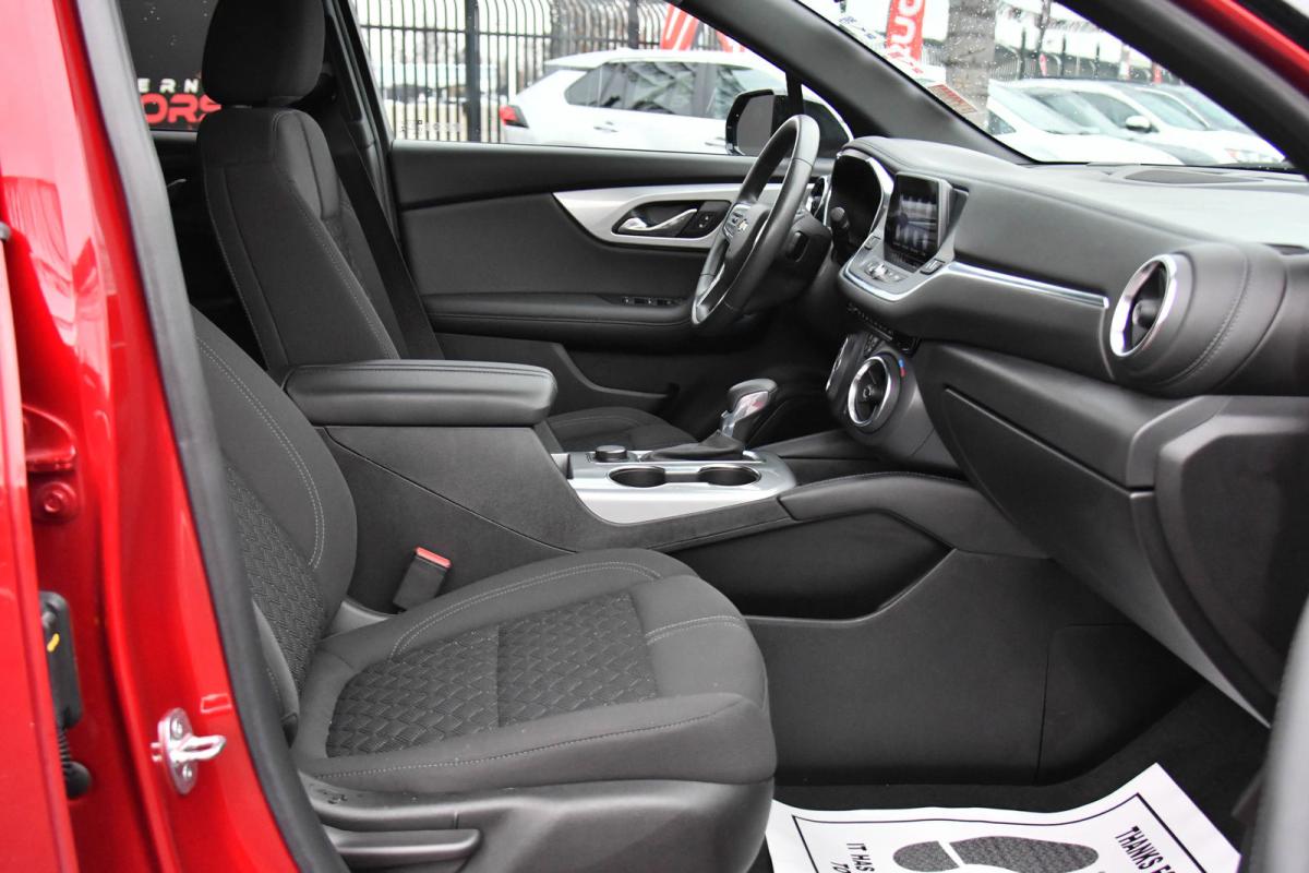 Only 27,446 Miles! Delivers 27 Highway MPG and 20 City MPG! This Chevrolet Blazer delivers a Gas V6 3.6L/ engine powering this Automatic transmission. WHEELS, 18 (45.7 CM) GLOSS BLACK PAINTED ALUMINUM, TRANSMISSION, 9-SPEED AUTOMATIC, ELECTRONICALLY-CONTROLLED with overdrive, includes Driver Shift Control, TIRES, P235/65R18 ALL-SEASON BLACKWALL (STD).*This Chevrolet Blazer Comes Equipped with These Options *LICENSE PLATE FRONT MOUNTING PACKAGE (will be forced on orders with ship-to states that require a front license plate) , SEATS, FRONT BUCKETS (STD), ROOF RAILS, BLACK, MIDNIGHT/SPORT EDITION includes Gloss Black grille bar, front and rear Black bowties, Black mirrors, Gloss Black nameplate (and AWD badge on AWD models), (PZJ) 18 Gloss Black painted aluminum wheels, and Black center caps with Black logo (Also includes (V59) Black roof rails., LT PREFERRED EQUIPMENT GROUP Includes Standard Equipment, JET BLACK, PREMIUM CLOTH SEAT TRIM, ENGINE, 3.6L V6, SIDI, DOHC WITH VARIABLE VALVE TIMING (VVT) and Active Fuel Management with Stop/Start (308 hp [229 kW] @ 6600 rpm, 270 lb-ft of torque [366 N-m] @ 5000 rpm), CHERRY RED TINTCOAT, AXLE, 3.49 FINAL DRIVE RATIO, AUDIO SYSTEM, CHEVROLET INFOTAINMENT 3 SYSTEM 8 diagonal color touchscreen, AM/FM stereo. Additional features for compatible phones include: Bluetooth audio streaming for 2 active devices, voice command pass-through to phone, Apple CarPlay and Android Auto capable. (STD).