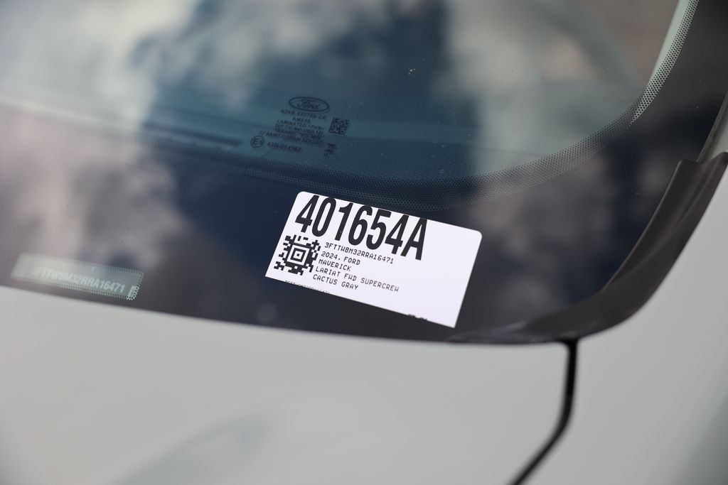 Cactus Gray 2024 Ford Maverick Lariat FWD CVT 2.5L I-4 Hybrid 2.5L I-4 Hybrid, Exterior Parking Camera Rear, Heated front seats, Navigation System, Radio: B&O Sound System by Bang & Olufsen, Rear Parking Sensors, Remote keyless entry, SiriusXM Radio, SYNC 3 Communications & Entertainment System, Wheels: 18" Machined-Face Bright Aluminum.42/33 City/Highway MPG