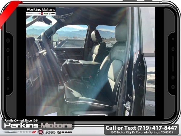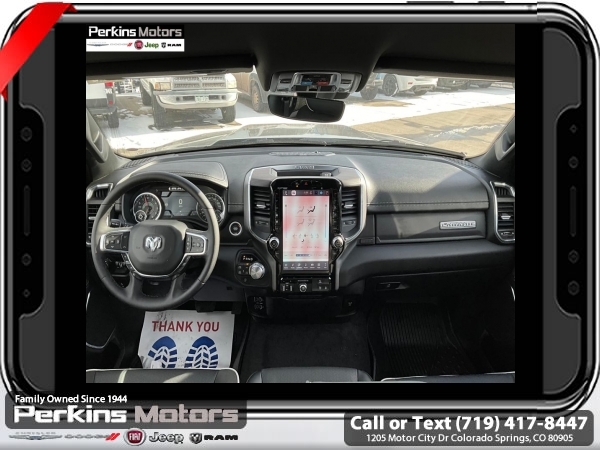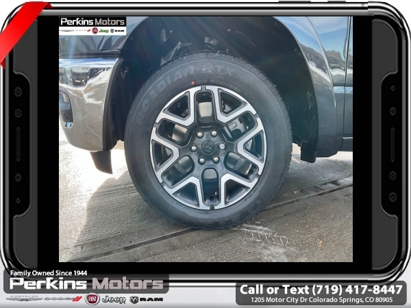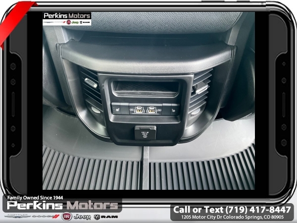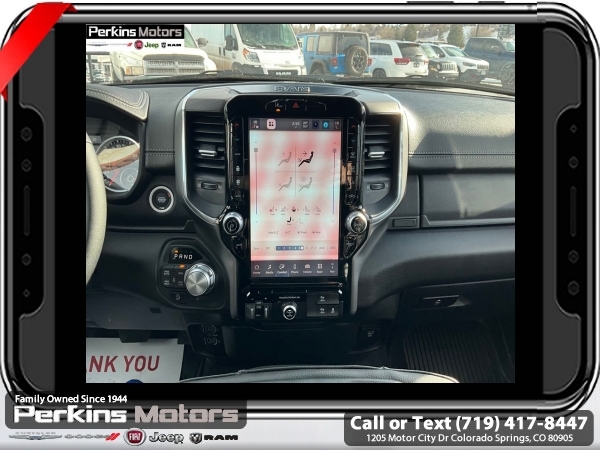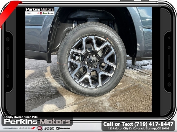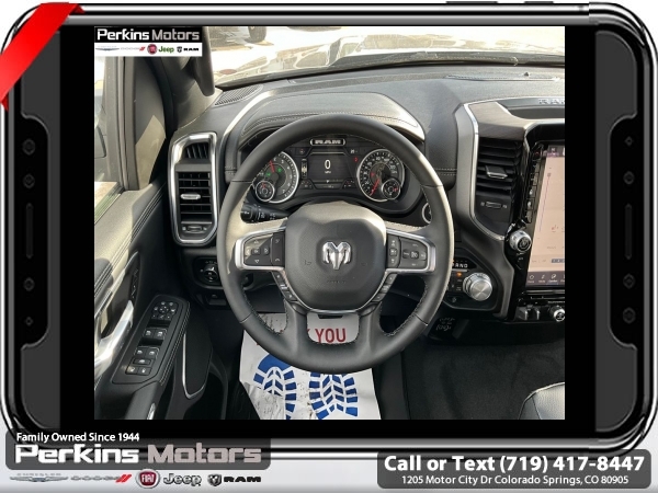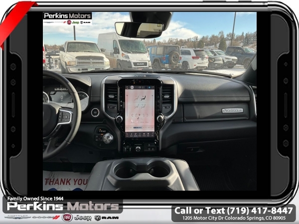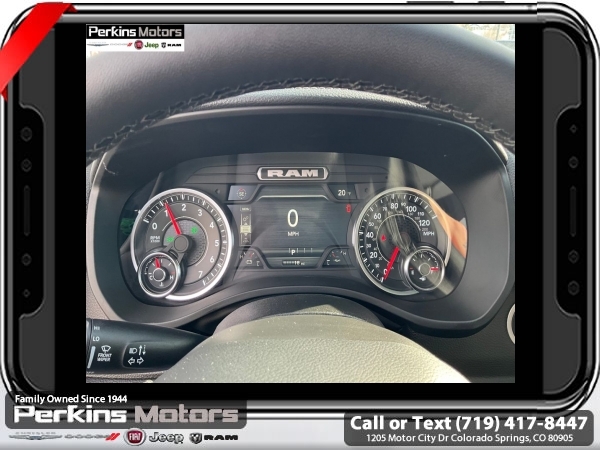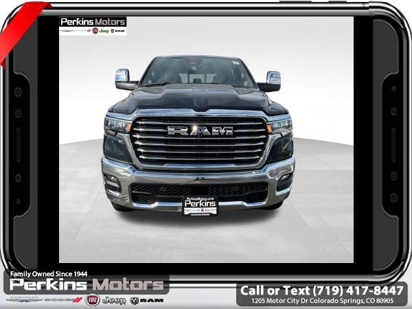 Factory MSRP: $69,610 $15,000 off MSRP! Priced below KBB Fair Purchase Price! River Rock 2025 Ram 1500 Laramie 4WD 8-Speed Automatic 3.0L I6<br><br>Check us out at www.perkinsmotors.com to see our specials! Since opening our doors in 1944, we’ve been proud to serve Colorado Springs, CO, and the surrounding areas of Pueblo, Castle Rock and Denver, CO. Throughout this time of being family owned for 80 years, we’ve maintained a firm commitment to our customers: to offer a wide selection of New Chrysler, Dodge, Fiat, Jeep, and Ram vehicles and quality pre-owned vehicles, and provide a quick, no-hassle car-buying process that ensures everyone drives off the lot satisfied with their purchase.<br><br>Laramie Level 1 Equipment Group (Rain Sensitive Windshield Wipers and Remote Tailgate Release), Quick Order Package 21H Laramie, Trailer Tow Group (Auto Power-Folding Mirrors, Auto-Dimming Exterior Driver Mirror, Auto-Dimming Exterior Passenger Mirror, Black Exterior Mirrors, Chrome Exterior Mirrors, Exterior Mirrors Courtesy Lamps, Exterior Mirrors w/Heating Element, Exterior Mirrors w/Memory, Exterior Mirrors w/Supplemental Signals, Forward & Reverse Utility Lights, Mirror Clearance/Running Lights, Power Telescoping Mirrors, Power-Adjustable Convex Aux Mirrors, Trailer Brake Control, Trailer Light Check, Trailer Reverse Steering Control, Trailer Tire Pressure Monitoring System, and Trailer Tow Mirrors), 10 Speakers, 3 Rear Seat Head Restraints, 3.55 Rear Axle Ratio, 3.92 Rear Axle Ratio, 4 Way Front Headrests, 4-Wheel Disc Brakes, 4G LTE Wi-Fi Hot Spot, ABS brakes, Air Conditioning, Alloy wheels, AM/FM radio: SiriusXM with 360L, Anti-Spin Differential Rear Axle, Apple CarPlay, Apple CarPlay/Android Auto, Audio memory, Auto High-beam Headlights, Auto-dimming door mirrors, Auto-dimming Rear-View mirror, Automatic temperature control, Brake assist, Bumpers: chrome, Compass, Connected Travel & Traffic Services, Connectivity - US/Canada, Convex Wide-Angle Exterior Mirror Insert, Cruise Control, Delay-off headlights, Driver door bin, Driver Seat Memory, Driver vanity mirror, Dual front impact airbags, Dual front side impact airbags, Electronic Stability Control, Front anti-roll bar, Front Center Armrest w/Storage, Front dual zone A/C, Front fog lights, Front License Plate Bracket, Front reading lights, Front Seat Back Map Pockets, Front wheel independent suspension, Fully automatic headlights, Garage door transmitter, Google Android Auto, GPS Antenna Input, GPS Navigation, HD Radio, Heated door mirrors, Heated Front Seats, Heated front seats, Heated rear seats, Heated Steering Wheel, Heated steering wheel, Illuminated entry, Integrated Voice Command w/Bluetooth, Leather steering wheel, Leather Trim 40/20/40 Bench Seat, Low tire pressure warning, Manufacturer's Statement of Origin, Memory seat, MOPAR Front & Rear Rubber Floor Mats, Navigation System, Occupant sensing airbag, Outside temperature display, Overhead airbag, Overhead console, Panic alarm, ParkView Rear Back-Up Camera, Passenger door bin, Passenger vanity mirror, Power 2-Way Driver Lumbar Adjust, Power 2-Way Passenger Lumbar Adjust, Power Adjust 8-Way Front Passenger Seat, Power door mirrors, Power driver seat, Power passenger seat, Power steering, Power windows, Radio data system, Radio: Uconnect 5 Nav w/12.0 Display, RAM Grille Badge - Chrome, Rear anti-roll bar, Rear reading lights, Rear seat center armrest, Rear step bumper, Remote keyless entry, Security system, SiriusXM w/360L, Split folding rear seat, Steering wheel mounted audio controls, Tachometer, Telescoping steering wheel, Tilt steering wheel, Traction control, Trip computer, Turn signal indicator mirrors Sale price includes all manufacture's incentives and dealer discounts. Sale price not available on lease or compatible with special APR. $1500 - 2025 National Conquest Dealer Cash. Exp. 04/30/2025 $2500 - 2025 National Truck Month Bonus Cash . Exp. 04/30/2025 $4000 - 2025 National Retail Consumer Cash. Exp. 0