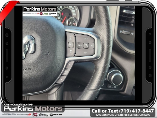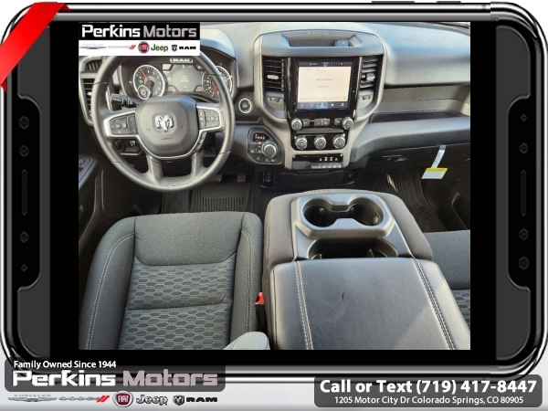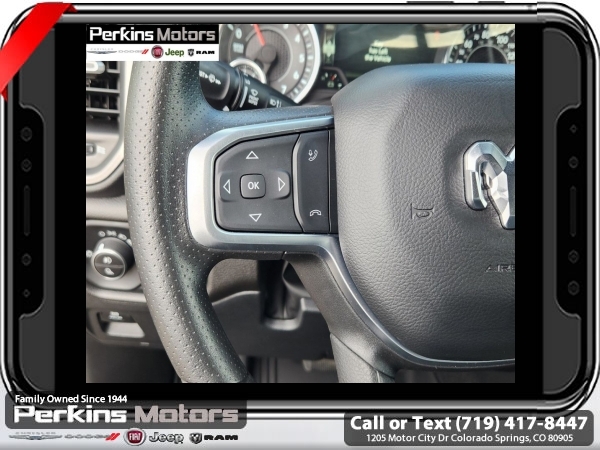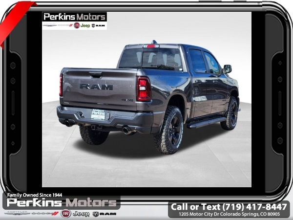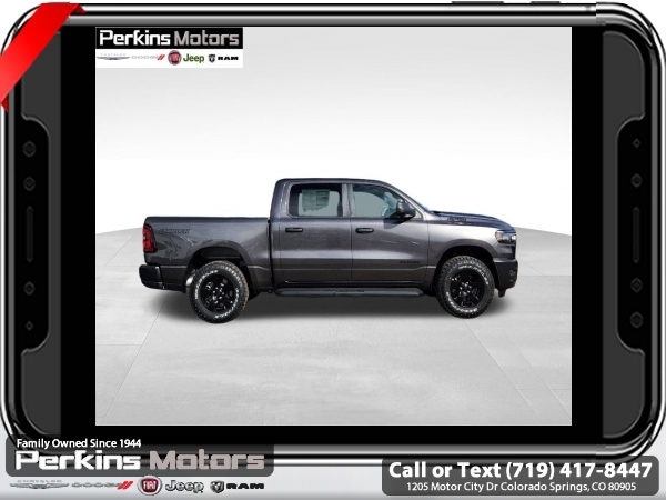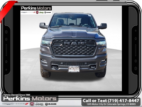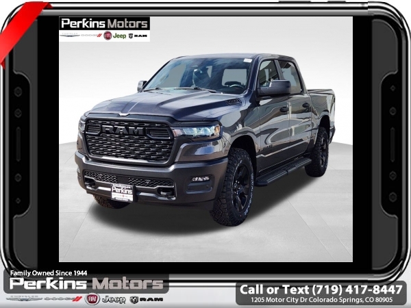 Factory MSRP: $57,440 $10,000 off MSRP! Priced below KBB Fair Purchase Price! Granite Crystal Metallic Clearcoat 2025 Ram 1500 4WD 8-Speed Automatic 3.0L I6<br><br>Check us out at www.perkinsmotors.com to see our specials! Since opening our doors in 1944, we’ve been proud to serve Colorado Springs, CO, and the surrounding areas of Pueblo, Castle Rock and Denver, CO. Throughout this time of being family owned for 80 years, we’ve maintained a firm commitment to our customers: to offer a wide selection of New Chrysler, Dodge, Fiat, Jeep, and Ram vehicles and quality pre-owned vehicles, and provide a quick, no-hassle car-buying process that ensures everyone drives off the lot satisfied with their purchase.<br><br>Quick Order Package 21B Warlock (115V Auxiliary Power Outlet, 400W Inverter, Dual Exhaust w/Black Tips, E-Locker Rear Axle, Front LED Fog Lamps, Front Performance Tuned Shock Absorbers, Raised Ride Height, and Wheels: 18 x 8.0 Black Painted Aluminum), 3.21 Rear Axle Ratio, 3.92 Rear Axle Ratio, 4 Way Front Headrests, 4-Wheel Disc Brakes, 40/20/40 Split Bench Seat, 6 Speakers, ABS brakes, Air Conditioning, AM/FM radio, Apple CarPlay/Android Auto, Auto High-beam Headlights, Black Exterior Mirrors, Brake assist, Compass, Cruise Control, Delay-off headlights, Driver door bin, Dual front impact airbags, Dual front side impact airbags, Electronic Stability Control, Exterior Mirrors w/Heating Element, Front anti-roll bar, Front Center Armrest, Front License Plate Bracket, Front reading lights, Front wheel independent suspension, Fully automatic headlights, Heated door mirrors, Heavy Duty Vinyl 40/20/40 Split Bench Seat, Illuminated entry, Low tire pressure warning, Manual Adjust 4-Way Driver Seat, Manual Adjust 4-Way Front Passenger Seat, Manual Folding Exterior Mirrors, Manufacturer's Statement of Origin, Mopar Black Tubular Side Steps, Occupant sensing airbag, Outside temperature display, Overhead airbag, Overhead console, Panic alarm, ParkView Rear Back-Up Camera, Passenger door bin, Passenger vanity mirror, Power door mirrors, Power steering, Power windows, Radio data system, Radio: Uconnect 5 W w/8.4 Display, RAM Grille Badge - Black, Rear anti-roll bar, Rear step bumper, Remote keyless entry, Tachometer, Telescoping steering wheel, Tilt steering wheel, Traction control, Variably intermittent wipers, Voltmeter, and Wheels: 18 x 7.5 Steel Painted. Sale price includes all manufacture's incentives and dealer discounts. Sale price not available on lease or compatible with special APR. $1000 - 2025 National Truck Month Bonus Cash . Exp. 03/31/2025 $1500 - 2025 National Bonus Cash . Exp. 03/31/2025 $4000 - 2025 National Retail Consumer Cash. Exp. 03/31/2025