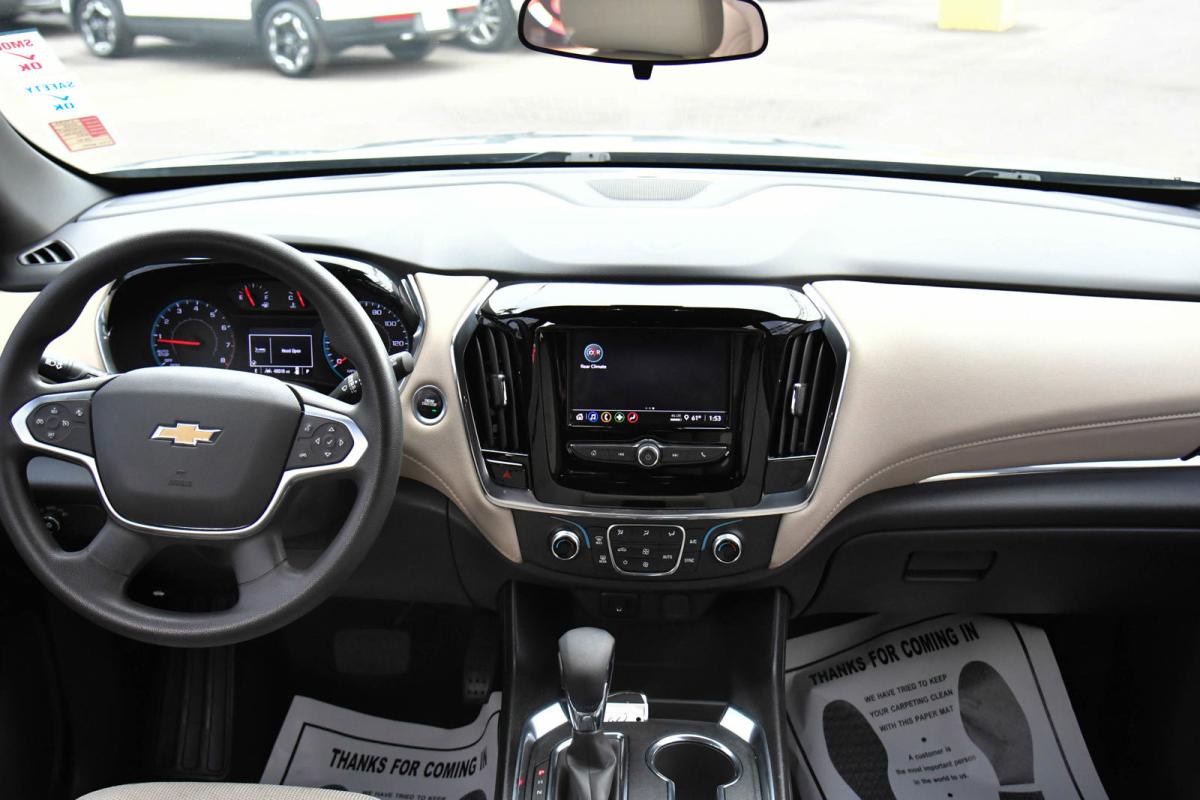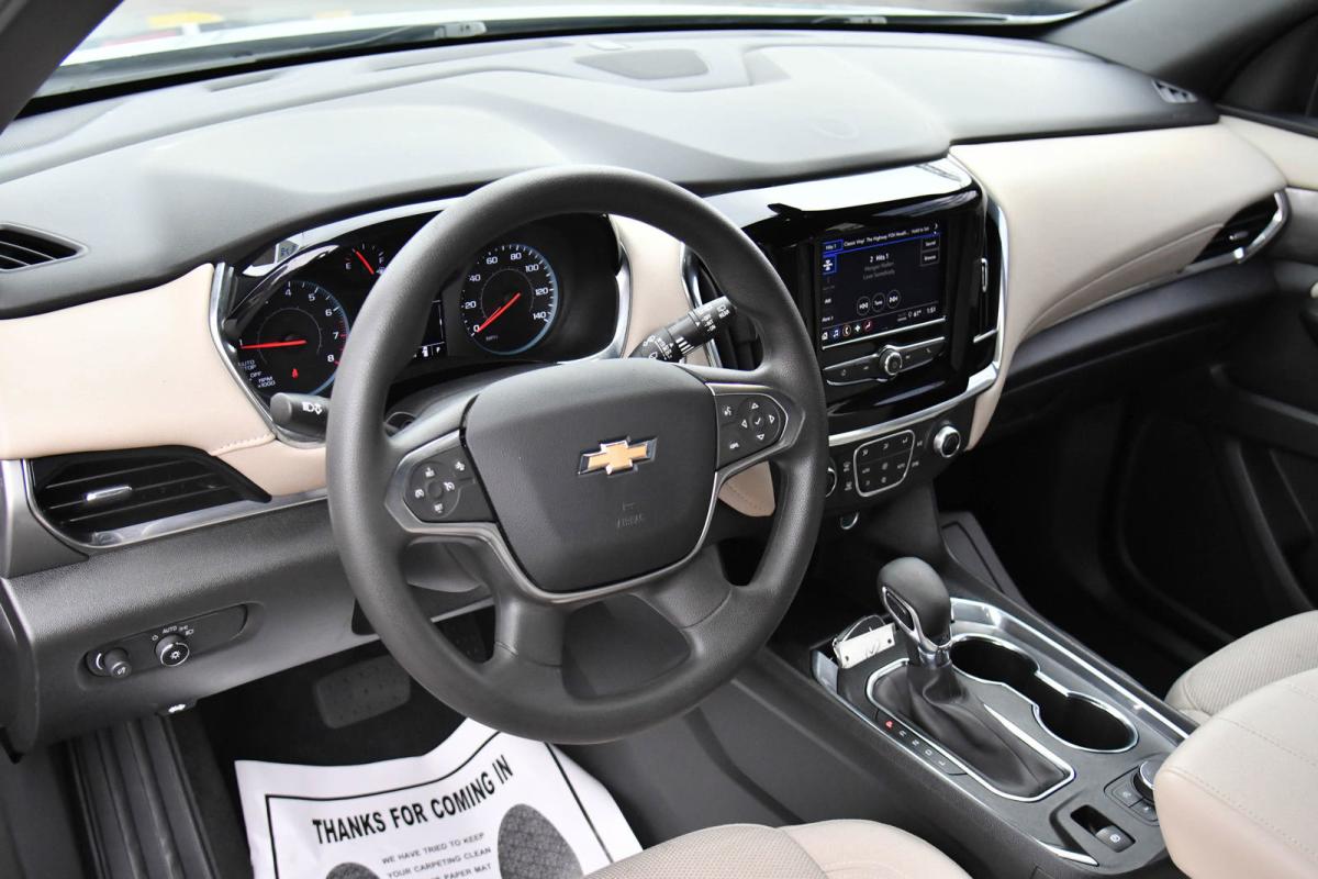 Boasts 27 Highway MPG and 18 City MPG! This Chevrolet Traverse boasts a Gas V6 3.6L/217 engine powering this Automatic transmission. WHEELS, 18 (45.7 CM) BRIGHT SILVER PAINTED ALUMINUM (STD), TRANSMISSION, 9-SPEED AUTOMATIC (STD), TIRES, P255/65R18 ALL-SEASON BLACKWALL (STD).*This Chevrolet Traverse Features the Following Options *LICENSE PLATE FRONT MOUNTING PACKAGE (will be forced on orders with ship-to states that require a front license plate) , STERLING GRAY METALLIC, SEATS, FRONT BUCKET (STD), LS PREFERRED EQUIPMENT GROUP Includes Standard Equipment, JET BLACK/CHAI, PREMIUM CLOTH SEAT TRIM, ENGINE, 3.6L V6, SIDI, VVT (310 hp [232.0 kW] @ 6800 rpm, 266 lb-ft of torque [361 N-m] @ 2800 rpm) (STD), AUDIO SYSTEM, CHEVROLET INFOTAINMENT 3 SYSTEM 7 diagonal color touchscreen, AM/FM stereo. Additional features for compatible phones include: Bluetooth audio streaming for 2 active devices, voice command pass-through to phone, Apple CarPlay and Android Auto capable (STD), Wireless Apple CarPlay/Wireless Android Auto, Wipers, front intermittent with washers, Wiper, rear intermittent with washer.
