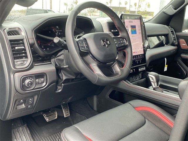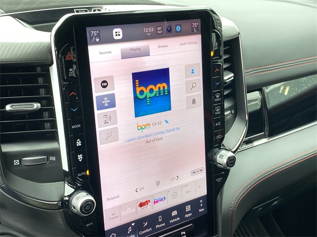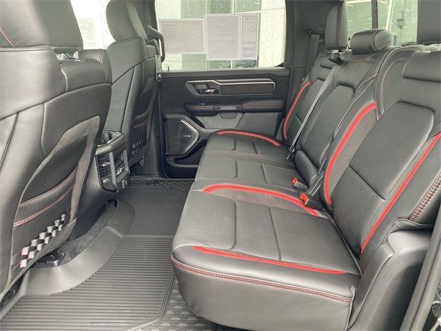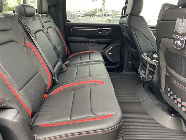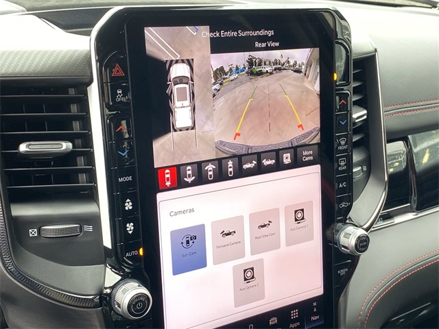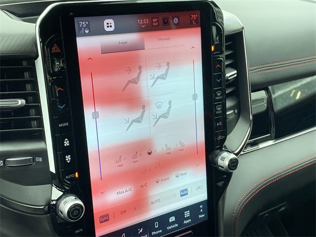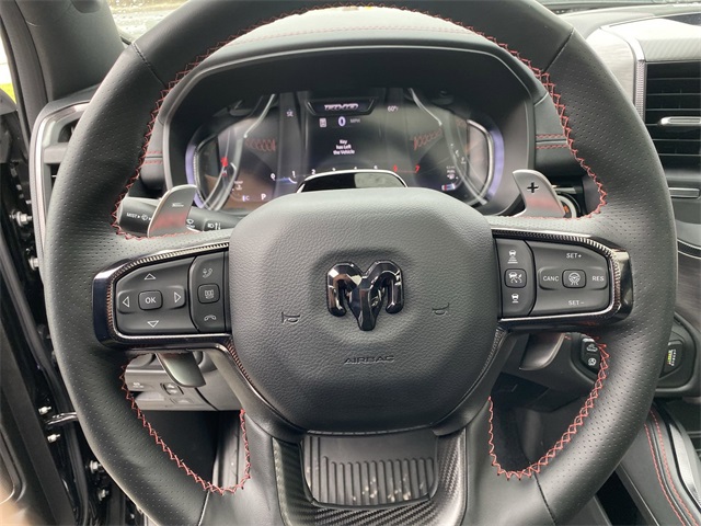 Certified. Odometer is 2166 miles below market average! Clean CARFAX. CUSTOM TIRES & WHEELS, INTERIOR & EXTERIOR PROFESSIONALLY DETAILED FOR DELIVERY, MCPEEK CHRYSLER DODGE JEEP RAM FAMILY OWNED AND OPERATED SINCE 1961 !!!!!, 10 Speakers, 12-Way/1-Way Trailer Connector, 14.4" Touchscreen Display, 240 Amp Alternator, 3.92 Rear Axle Ratio, 4-Wheel Disc Brakes, 4G LTE Wi-Fi Hot Spot, ABS brakes, Adaptive suspension, Adjustable pedals, Air Conditioning, Alloy wheels, AM/FM radio: SiriusXM with 360L, Apple CarPlay, Apple CarPlay/Android Auto, Auto High-beam Headlights, Auto Power-Folding Mirrors, Auto-dimming door mirrors, Auto-Dimming Exterior Driver Mirror, Auto-dimming Rear-View mirror, Automatic temperature control, Bed Utility Group, Brake assist, Compass, Connected Travel & Traffic Services, Connectivity - US/Canada, Delay-off headlights, Dome Dual LED Reading Lamp, Driver door bin, Driver Power Seat Back Massage, Driver Seat Memory, Driver/Passenger Wrapped Assist Handles, Drowsy Driver Detection, Dual front impact airbags, Dual front side impact airbags, Dual Wireless Charging Pad, Dual-Pane Panoramic Sunroof, Electronic Stability Control, Evasive Steer Assist, Exterior 115V AC Outlet, Exterior Mirrors Courtesy Lamps, Exterior Mirrors w/Heating Element, Exterior Mirrors w/Memory, Exterior Mirrors w/Supplemental Signals, Flareside Box, Front anti-roll bar, Front Bucket Seats, Front Center Armrest w/Storage, Front dual zone A/C, Front fog lights, Front Passenger Interactive Display, Front Passenger Power Seat Back Massage, Front reading lights, Front wheel independent suspension, Full Length Premium Upgraded Floor Console, Fully automatic headlights, Garage door transmitter, Google Android Auto, GPS Navigation, Hands-Free Active Driving Assist System, harman/kardon 19 Speaker Premium Sound, HD Radio, Heads-Up Display, Heated door mirrors, Heated front seats, Heated Second Row Seats, Heated steering wheel, Illuminated entry, Integrated Voice Command w/Bluetooth, Intersection Collision Assist System, Leather Shift Knob, Leather steering wheel, Leather Trimmed Bucket Seats, Leather/Carbon Flat-Bottom Steering Wheel, LED CHMSL Lamp, Low tire pressure warning, Luxury Front Door Trim Panel, Manufacturer's Statement of Origin, MOPAR Deployable Bed Step, MOPAR Off-Road Style Running Boards, MOPAR Spray In Bedliner, Navigation System, Occupant sensing airbag, Outside temperature display, Overhead airbag, Overhead console, Panic alarm, ParkView Rear Back-Up Camera, Passenger door bin, Passenger vanity mirror, Power Adjustable Pedals w/Memory, Power door mirrors, Power driver seat, Power passenger seat, Power steering, Power Tailgate, Power windows, Premium Wrapped I/P Bezel, Quick Order Package 22Y RHO, Radio data system, Radio: Uconnect 5 Nav w/12.0" Display, Radio: Uconnect 5 Nav w/14.4" Display, Radio/Driver Seat/Mirrors/Pedals Memory, Rain Sensitive Windshield Wipers, Real Carbon Fiber Interior Accents, Rear 60/40 Folding Split Recline Seat, Rear reading lights, Rear seat center armrest, Rear step bumper, Rear window defroster, Red Interior Accents, Remote keyless entry, RHO Level 1 Equipment Group, Security system, Smartphone As A Key Capable, Speed control, Split folding rear seat, Sport steering wheel, Steering wheel mounted audio controls, Surround View Camera System, Tachometer, Telescoping steering wheel, Tilt steering wheel, Traction control, Traffic Sign Recognition, Trip computer, Turn signal indicator mirrors, USB Host Flip, Variably intermittent wipers, Ventilated Front Seats, Ventilated Rear Seats, Voltmeter, Wheels: 18" x 9" Bead-Lock Aluminum, Wheels: 18" x 9" Black Paint/Polish Aluminum.Diamond Black Crystal Pearlcoat 2025 Ram 1500 RHO 4WD 8-Speed AutomaticCertification Program Details: *2 Months or 2,000 Miles 50/50 Powertrain Warranty *Complimentary Carfax *125 Point Safety & Mechanical Inspection by Certified TechnicianAwards: * Motor Trend Automobiles of the yearReceive Free lube and oil filter changes