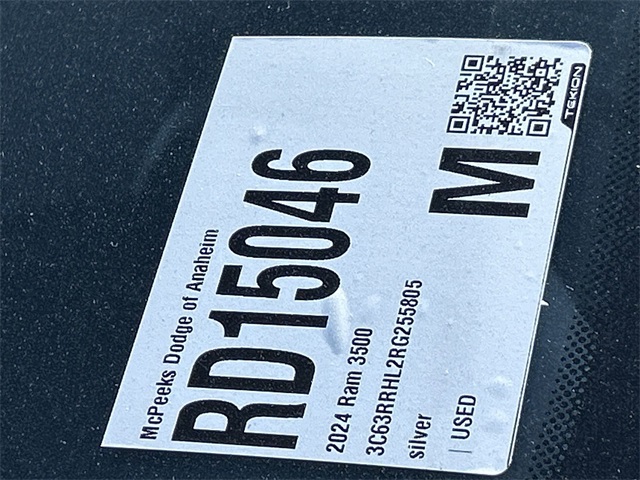 Certified. Odometer is 3936 miles below market average! Clean CARFAX. CARFAX One-Owner. INTERIOR & EXTERIOR PROFESSIONALLY DETAILED FOR DELIVERY, MCPEEK CHRYSLER DODGE JEEP RAM FAMILY OWNED AND OPERATED SINCE 1961 !!!!!.Billet Silver Metallic Clearcoat 2024 Ram 3500 Big Horn 4WD 6-Speed AutomaticFCA US LLC Certified Pre-Owned Details: * Vehicle History * 125 Point Inspection * Roadside Assistance * Includes First Day Rental, Car Rental Allowance, and Trip Interruption Benefits. SiriusXM 3 month trial subscription. * Limited Warranty: 3 Month/3,000 Mile (whichever comes first) after new car warranty expires or from certified purchase date * Warranty Deductible: $100 * Powertrain Limited Warranty: 84 Month/100,000 Mile (whichever comes first) from original in-service date * Transferable WarrantyReceive Free lube and oil filter changes for up to 45,000 miles for 3 years!!! McPeek's Dodge of Anahiem 1221 S. Auto Center Drive Anahiem, CA 92806 714-262-4902.
