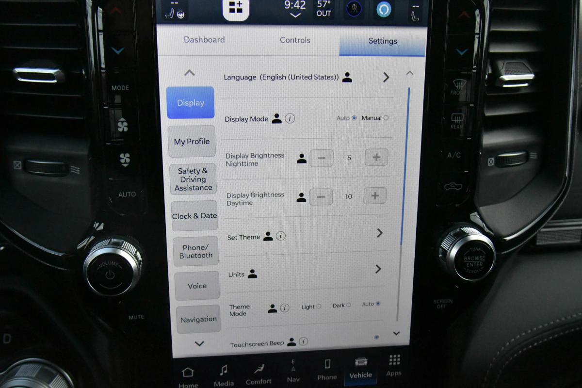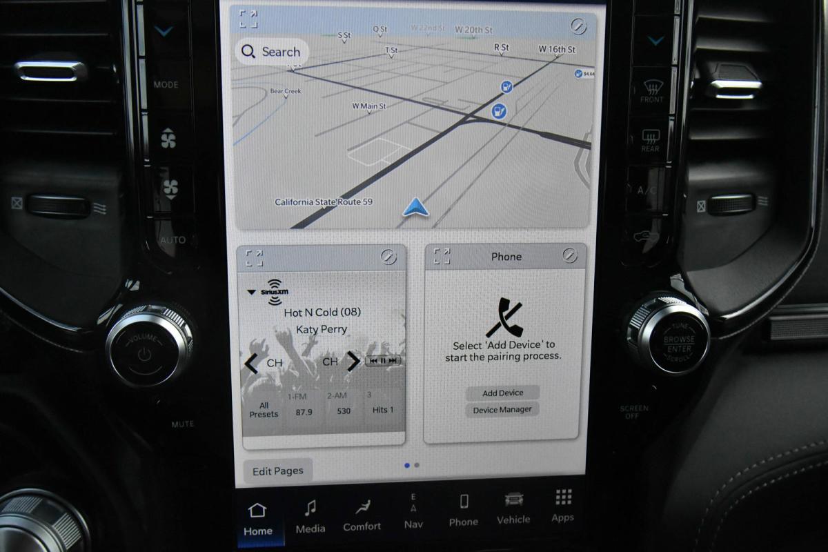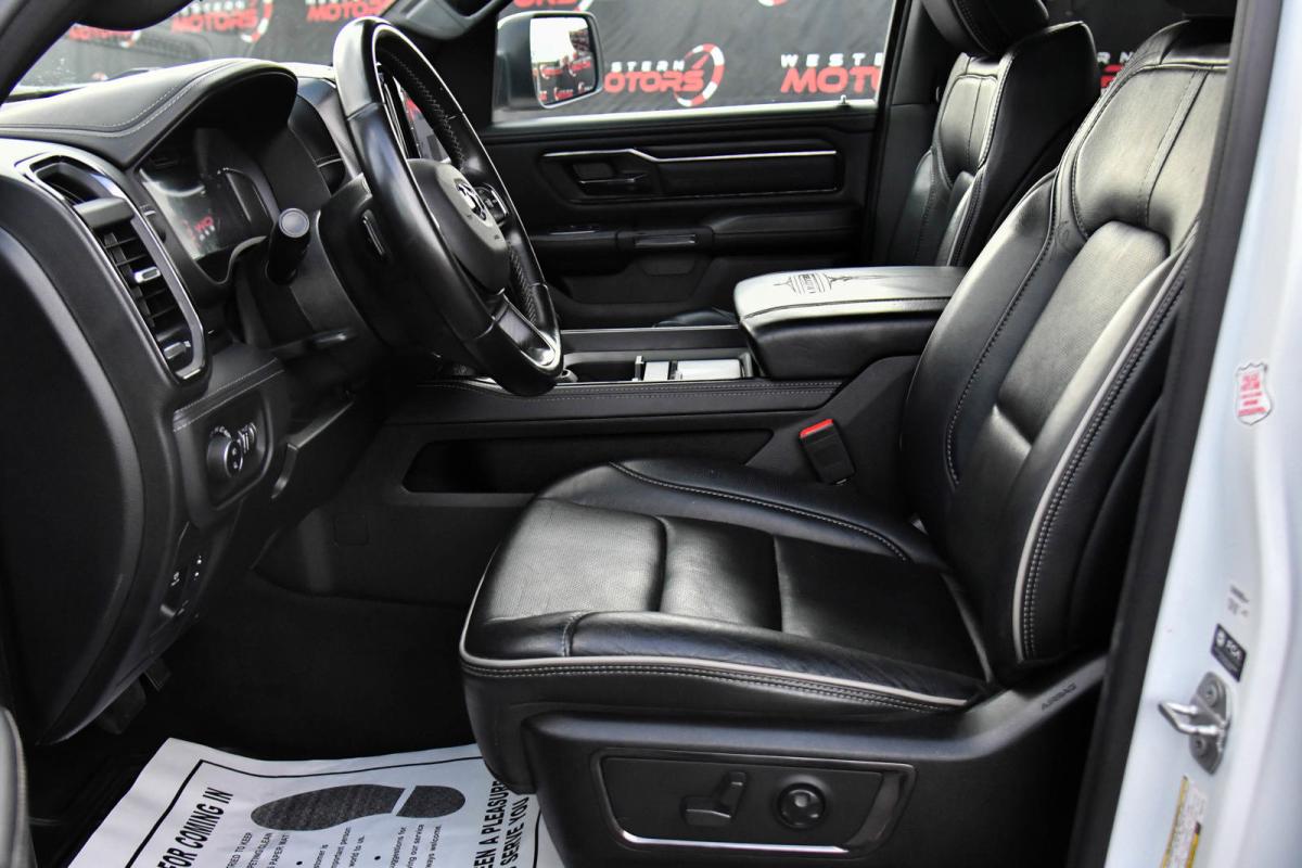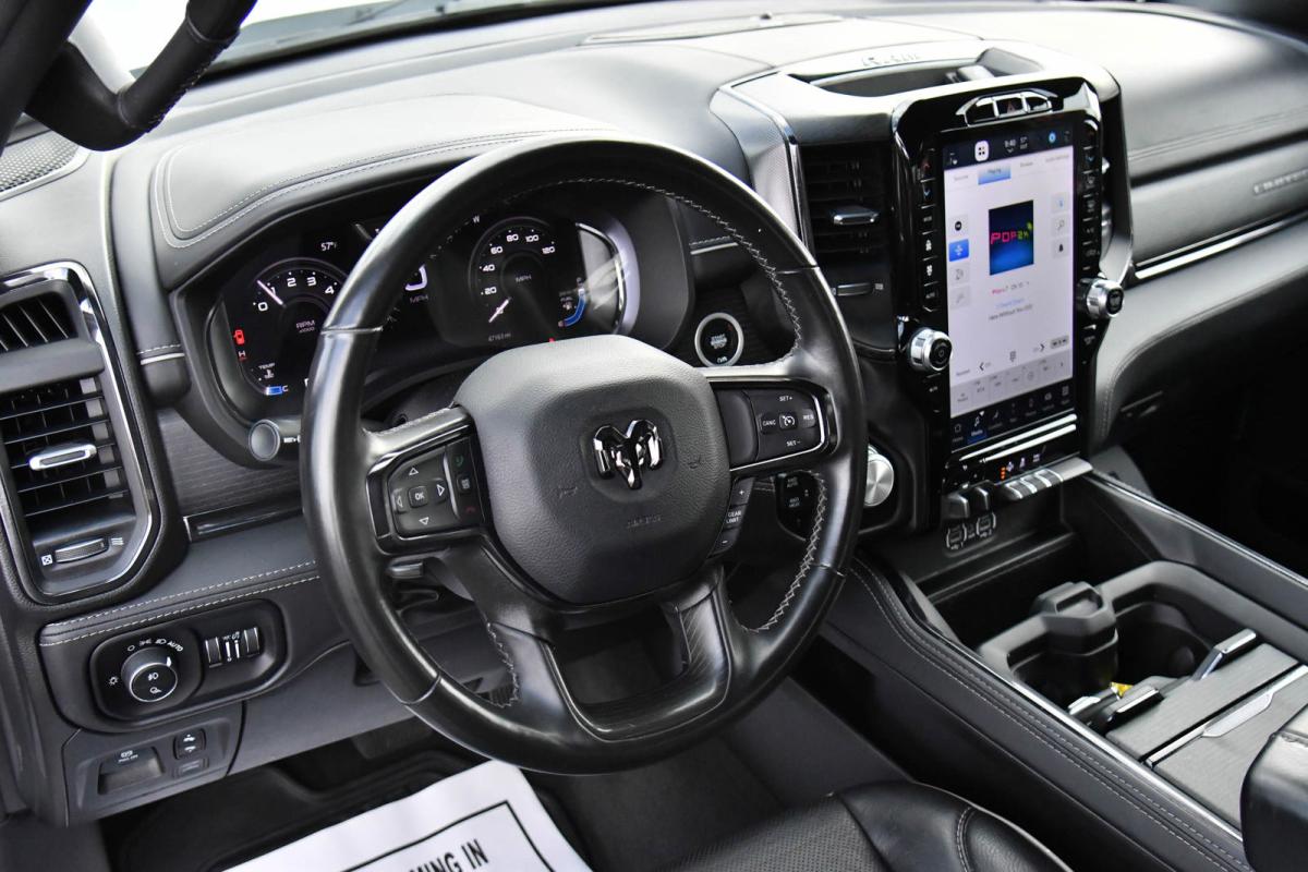This Ram 1500 has a strong Gas/Electric V-8 5.7 L/345 engine powering this Automatic transmission. WHEELS: 22 X 9 POLISH/PAINTED W/INSERTS -inc: Tires: 285/45R22XL BSW All Season, TRANSMISSION: 8-SPEED AUTOMATIC (8HP75) (STD), TRAILER BRAKE CONTROL.*This Ram 1500 Comes Equipped with These Options *QUICK ORDER PACKAGE 27M LIMITED -inc: Engine: 5.7L V8 HEMI MDS VVT eTorque, Transmission: 8-Speed Automatic (8HP75) , TIRES: 285/45R22XL BSW ALL SEASON, RAMBOX CARGO MANAGEMENT SYSTEM -inc: Exterior 115V AC Outlet, IVORY WHITE TRI-COAT PEARLCOAT, GVWR: 7,100 LBS (STD), FRONT LICENSE PLATE BRACKET, ENGINE: 5.7L V8 HEMI MDS VVT ETORQUE -inc: Delete Alternator, 18 Aluminum Spare Wheel (STD), DUAL-PANE PANORAMIC SUNROOF -inc: LED Dome/Reading Lamp, Dome Dual LED Reading Lamp, BODY COLOR BUMPER GROUP -inc: Body Color Rear Bumper w/Step Pads, Body Color Front Bumper, BLACK, PREMIUM LEATHER TRIMMED BUCKET SEATS.