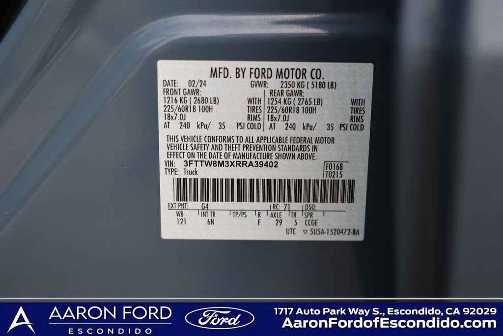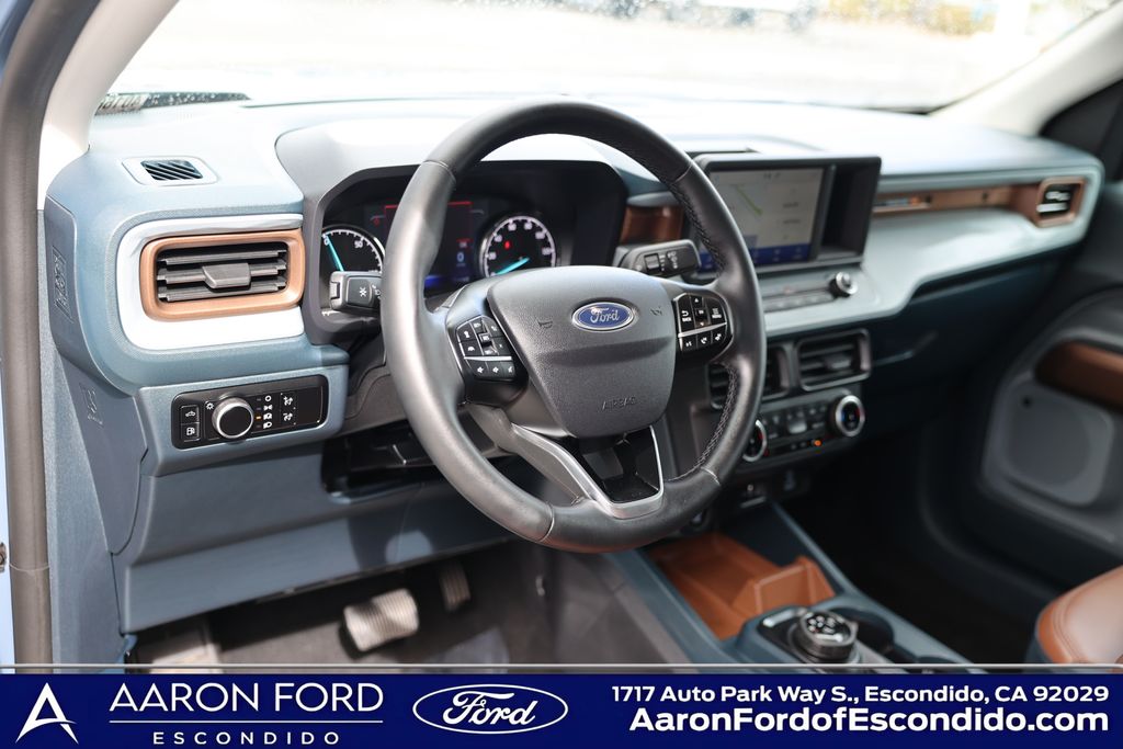 Azure Gray Metallic Tri-Coat 2024 Ford Maverick Lariat FWD CVT 2.5L I-4 Hybrid 2.5L I-4 Hybrid, Equipment Group 500A Standard, Navigation System, Radio: B&O Sound System by Bang & Olufsen, SiriusXM Radio, SYNC 3 Communications & Entertainment System, Wheels: 18" Machined-Face Bright Aluminum.42/33 City/Highway MPG