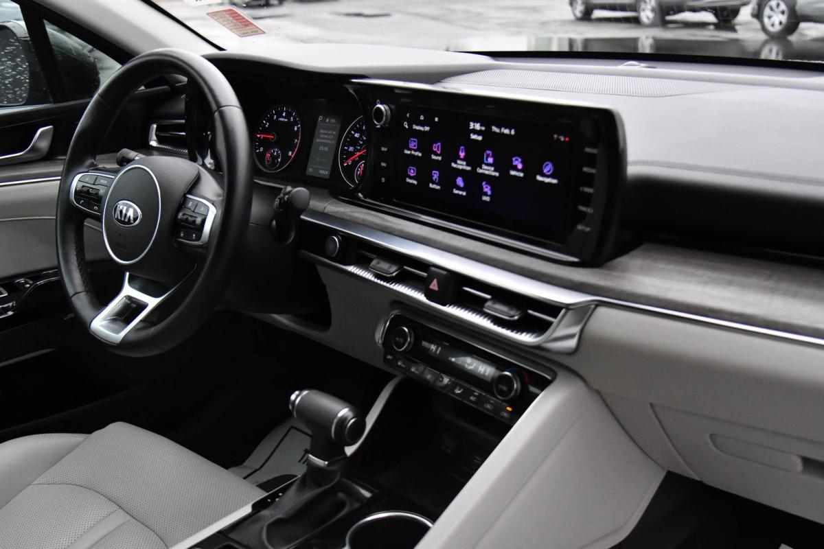Delivers 37 Highway MPG and 27 City MPG! This Kia K5 delivers a Intercooled Turbo Regular Unleaded I-4 1.6 L/98 engine powering this Automatic transmission. SAND, LEATHERETTE SEAT TRIM, GRAVITY GRAY, EX PREMIUM PACKAGE -inc: Highway Driving Assist, Navigation-Based Smart Cruise Control - Curve, Power Child Lock, Safe Exit Assist w/Lock, LED Rear Combi Lamps, Heated Steering Wheel, Radio: AM/FM/SiriusXM Bose Premium Audio System, 10.25 color TFT touchscreen, navigation, HD Radio, wired Android Auto and Apple CarPlay, telematics, voice recognition, natural language understanding, telematics, Bose premium audio w/12-speakers including subwoofer, external amplifier, active sound design and Bluetooth wireless technology w/multiple device connection, Outside Mirrors w/LED Turn Signals, Smart Cruise Control w/Stop & Go, Memory Driver's Seat & Outside Mirrors, Forward Collision Avoidance-Assist - Junction Turn, Parking Collision Avoidance-Assist - Reverse, 10-Way Power Passenger Seat, 8 way power passenger seat w/2 way lumbar support, Forward Collision Avoidance-Assist - Cyclist.*This Kia K5 Features the Following Options *CARGO NET, CARGO MAT, Window Grid Antenna, Wheels: 7.5J x 18 Gray Machined Finish Alloy, Variable Intermittent Wipers, UVO link Tracker System, UVO Link, Urethane Gear Shifter Material, Turn-By-Turn Navigation Directions, Trunk Rear Cargo Access.