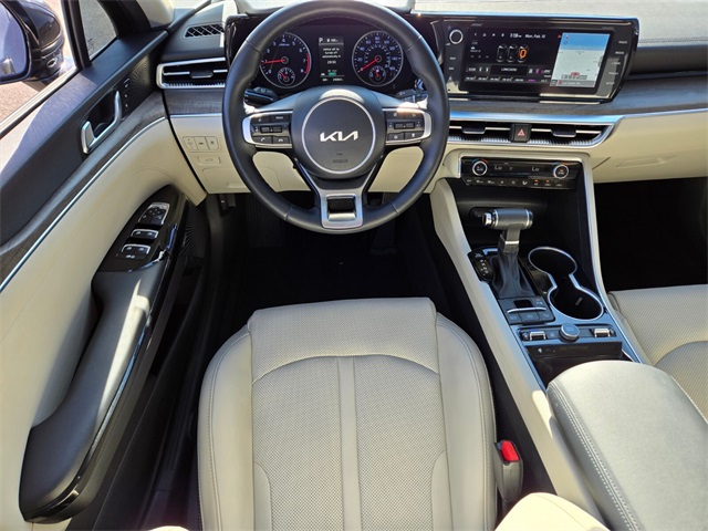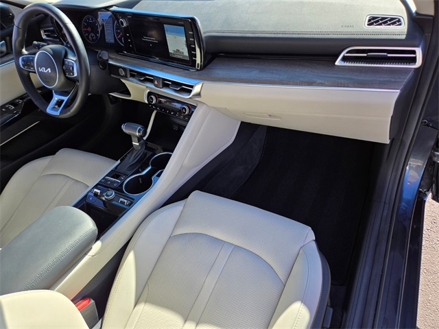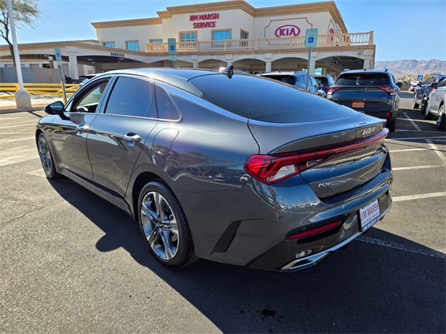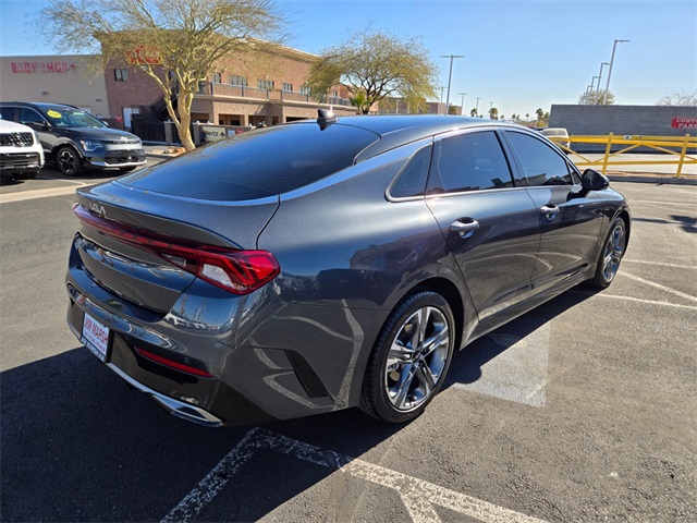 Recent Arrival!CARFAX One-Owner.Priced below KBB Fair Purchase Price!Odometer is 12983 miles below market average!27/37 City/Highway MPGGravity Gray 2022 Kia K5 EX FWD 8-Speed Automatic I4If you don't drive here, you can't save here!Price may not include recon fee. EX Premium Package (10-Way Power Passenger Seat, Active Sound Design, Auto Up/Down Rear Windows, Bose Premium Audio, Forward Collision Avoidance-Assist - Cyclist, Forward Collision Avoidance-Assist - Junction Turn, Heated Steering Wheel, LED Rear Combi Lamps, Memory Driver's Seat & Outside Mirrors, Navigation-Based Smart Cruise Control - Curve, Outside Mirrors w/LED Turn Signals, Parking Collision Avoidance-Assist - Reverse, Parking Distance Warning - Forward, Power Child Lock, Power Folding Outside Mirrors, Safe Exit Assist w/Lock, Smart Cruise Control w/Stop & Go, and Surround View Monitor), 4-Wheel Disc Brakes, 6 Speakers, ABS brakes, Air Conditioning, Alloy wheels, AM/FM radio: SiriusXM, Apple CarPlay & Android Auto, Auto High-beam Headlights, Automatic temperature control, Brake assist, Bumpers: body-color, Carpeted Floor Mats, Delay-off headlights, Driver door bin, Driver vanity mirror, Dual front impact airbags, Dual front side impact airbags, EC Mirror w/Homelink, Electronic Stability Control, Emergency communication system, Four wheel independent suspension, Front anti-roll bar, Front Bucket Seats, Front Center Armrest, Front dual zone A/C, Front reading lights, Fully automatic headlights, Heated & Ventilated Front Bucket Seats, Heated door mirrors, Heated front seats, Illuminated entry, Knee airbag, Leatherette Seat Trim, Low tire pressure warning, Navigation System, Occupant sensing airbag, Outside temperature display, Overhead airbag, Overhead console, Panic alarm, Passenger door bin, Passenger vanity mirror, Power door mirrors, Power driver seat, Power moonroof, Power steering, Power windows, Radio data system, Radio: AM/FM/MP3 Audio System, Rear anti-roll bar, Rear reading lights, Rear seat center armrest, Rear side impact airbag, Rear window defroster, Remote keyless entry, Security system, Smart Key w/ Push Button and Remote Start, Speed control, Speed-sensing steering, Split folding rear seat, Steering wheel mounted audio controls, Tachometer, Telescoping steering wheel, Tilt steering wheel, Traction control, Trip computer, Variably intermittent wipers, Ventilated front seats, Wheel Locks, and Wheels: 7.5J x 18" Gray Machined Finish Alloy.