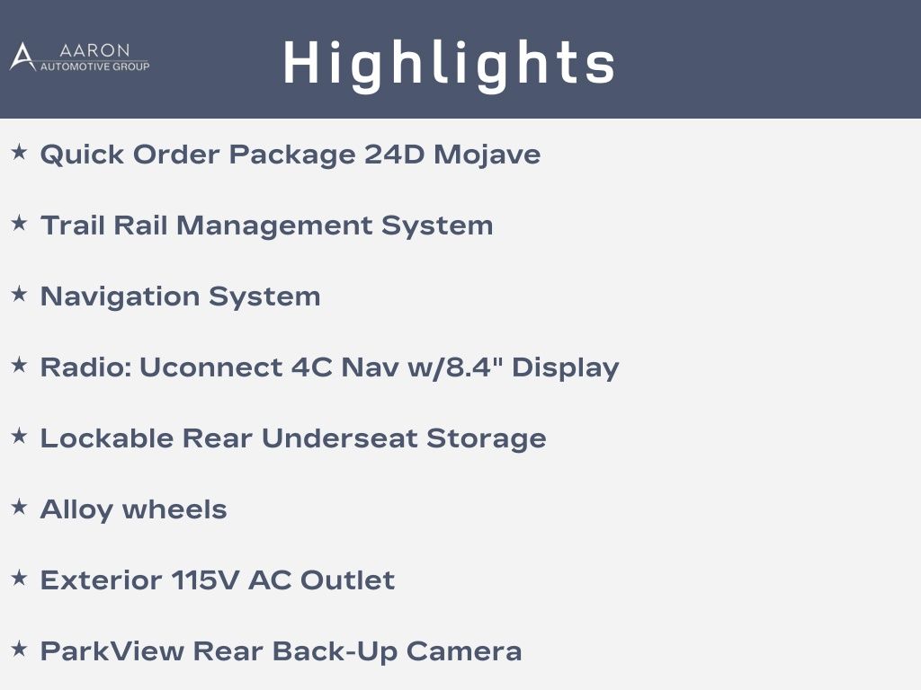 Priced below KBB Fair Purchase Price!240 Amp Alternator, Alloy wheels, Black 3-Piece Hard Top, Exterior 115V AC Outlet, Freedom Panel Storage Bag, Lockable Rear Underseat Storage, Navigation System, ParkView Rear Back-Up Camera, Quick Order Package 24D Mojave, Radio: Uconnect 4C Nav w/8.4" Display, Rear Sliding Window, Rear Window Defroster, Trail Rail Management System.CARFAX One-Owner.