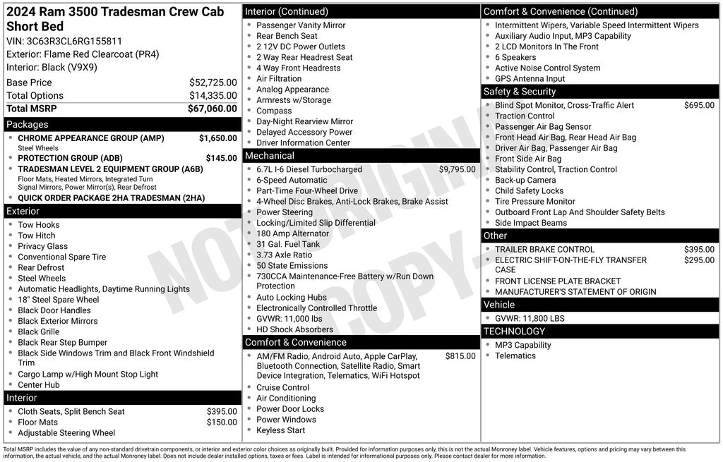 Priced below KBB Fair Purchase Price!2 Way Rear Headrest Seat, 4 Way Front Headrests, 40/20/40 Split Bench Seat, 4G LTE Wi-Fi Hot Spot, 8.4" Touchscreen Display, Apple CarPlay, Black Exterior Mirrors, Blind Spot & Cross Path Detection, Bright Front Bumper, Bright Rear Bumper, Carpet Floor Covering, Center Hub, Chrome Appearance Group, Chrome Grille Surround, Chrome Headlamp Bezels, Cloth 40/20/40 Bench Seat, Exterior Mirrors Courtesy Lamps, Exterior Mirrors w/Heating Element, Exterior Mirrors w/Supplemental Signals, Front & Rear Floor Mats, Front Armrest w/Cupholders, Integrated Voice Command w/Bluetooth, LED Tail Lamps, Manual Adjust 4-Way Driver Seat, Manual Adjust 4-Way Front Passenger Seat, Manual Folding Exterior Mirrors, Manual Telescoping Mirrors, Matte Black Mesh w/Chrome Grille, Mirror Running Lights, ParkView Rear Back-Up Camera, Power Adjust Mirrors, Power Heat Fold Telescopic Mirrors, Power-Adjustable Convex Aux Mirrors, Protection Group, Quick Order Package 2HA Tradesman, Radio: Uconnect 3 w/5" Display, Rear Folding Seat, Rear Power Sliding Window, Rear Window Defroster, Remote USB Port - Charge Only, Storage Tray, Tradesman Level 2 Equipment Group, Wheels: 18" x 8.0" Steel Chrome Clad.CARFAX One-Owner.