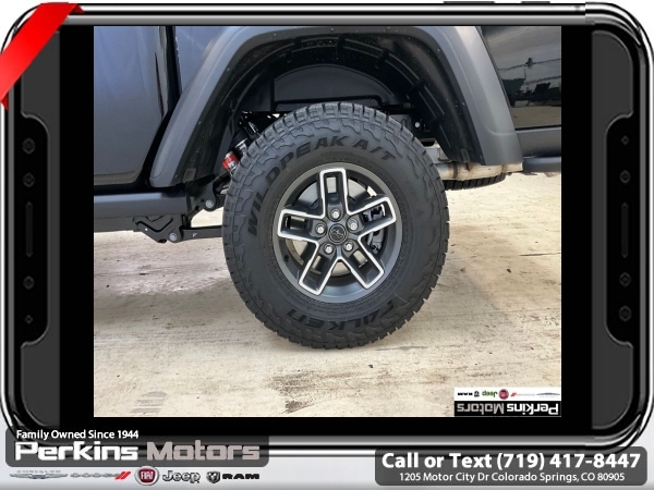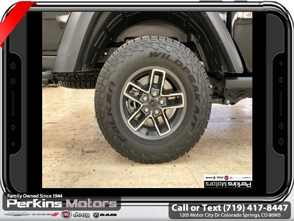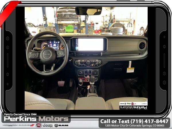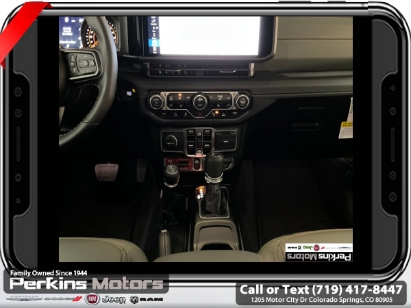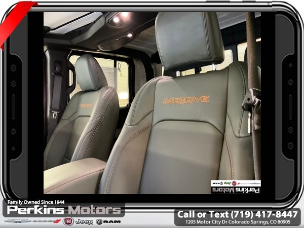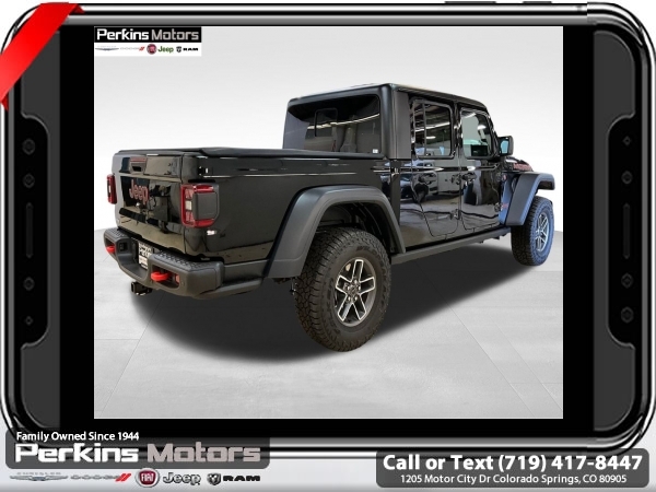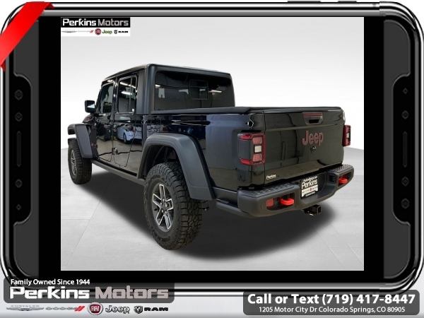 Factory MSRP: $67,375 $11,500 off MSRP! Black Clearcoat 2025 Jeep Gladiator Mojave 4WD 8-Speed Automatic 3.6L V6 24V VVT<br><br>Check us out at www.perkinsmotors.com to see our specials! Since opening our doors in 1944, we’ve been proud to serve Colorado Springs, CO, and the surrounding areas of Pueblo, Castle Rock and Denver, CO. Throughout this time of being family owned for 80 years, we’ve maintained a firm commitment to our customers: to offer a wide selection of New Chrysler, Dodge, Fiat, Jeep, and Ram vehicles and quality pre-owned vehicles, and provide a quick, no-hassle car-buying process that ensures everyone drives off the lot satisfied with their purchase.<br><br>Cargo Group w/Trail Rail System (Exterior 115V AC Outlet, Lockable Rear Underseat Storage, Roll-Up Tonneau Cover, and Trail Rails), Convenience Group (Heated Front Seats, Heated Steering Wheel, Remote Start System, SiriusXM Radio Service, SiriusXM w/360L, and Universal Garage Door Opener), Quick Order Package 24D Mojave, Safety Group (Auto High Beam Headlamp Control, Blind Spot & Cross Path Detection, and ParkSense Rear Park Assist System), Steel Bumper Group (Steel Front Bumper and Steel Rear Bumper), Technology Group (12.3 Touchscreen Display, 4G LTE Wi-Fi Hot Spot, Alexa Built-In, Alpine Premium Audio System, Apple CarPlay, Auto-Dimming Rear-View Mirror, Bluetooth Wireless Speaker, Connected Travel & Traffic Services, Connectivity - US/Canada, Google Android Auto, GPS Antenna Input, GPS Navigation, HD Radio, Integrated Off-Road Camera, Integrated Voice Command w/Bluetooth, Radio: Uconnect 5 Nav w/12.3 Display, and USB Host Flip), 4-Wheel Disc Brakes, 4.10 Rear Axle Ratio, 8 Speakers, 97 MPH Vehicle Max Speed Calibration, ABS brakes, Air Conditioning, Alloy wheels, AM/FM radio: SiriusXM, Apple CarPlay/Android Auto, Automatic temperature control, Black 3-Piece Hard Top, Brake assist, Compass, Cruise Control, Delay-off headlights, Driver door bin, Driver vanity mirror, Dual front impact airbags, Dual front side impact airbags, Electronic Stability Control, Emergency communication system: Jeep Connect, Freedom Panel Storage Bag, Front anti-roll bar, Front Bucket Seats, Front Center Armrest w/Storage, Front dual zone A/C, Front fog lights, Front License Plate Bracket, Front reading lights, Fully automatic headlights, Heated door mirrors, Heavy Duty Suspension w/Gas Shocks, Illuminated entry, Integrated roll-over protection, Jeep Trail Rated Kit, Low tire pressure warning, MOPAR Spray In Bedliner, Occupant sensing airbag, Outside temperature display, Overhead airbag, Panic alarm, Passenger door bin, Passenger vanity mirror, Power door mirrors, Power steering, Power windows, Premium Cloth Seats w/Sport Bolsters, Radio data system, Radio: Uconnect 5 w/12.3 Display, Rear anti-roll bar, Rear reading lights, Rear Sliding Window, Rear Window Defroster, Remote keyless entry, Security system, Split folding rear seat, Steering wheel mounted audio controls, Tachometer, Telescoping steering wheel, Tilt steering wheel, Traction control, Trip computer, Variably intermittent wipers, Voltmeter, and Wheels: 17 x 7.5 Dark Gray Painted. Sale price includes all manufacture's incentives and dealer discounts. Sale price not available on lease or compatible with special APR. $7000 - 2025 National Jeep Celebration Event Bonus Cash . Exp. 04/30/2025