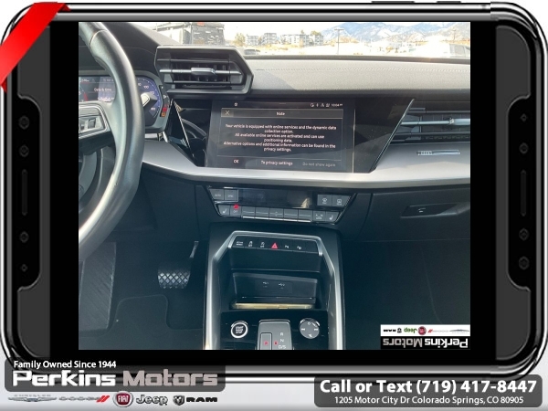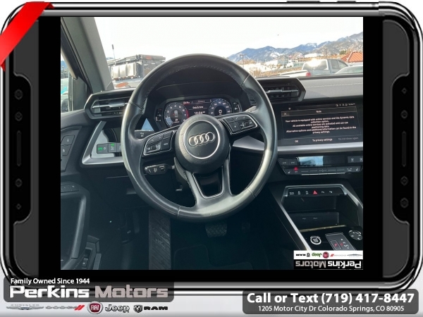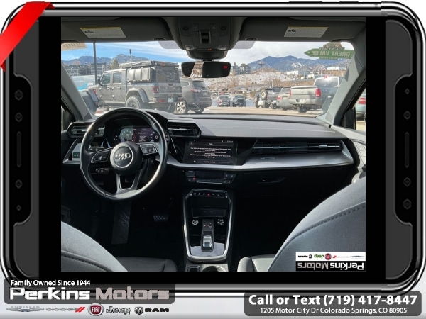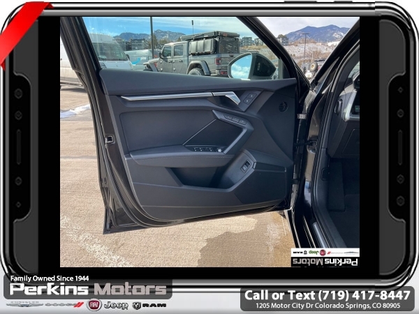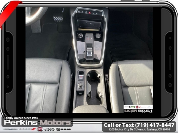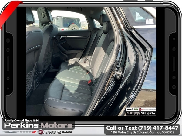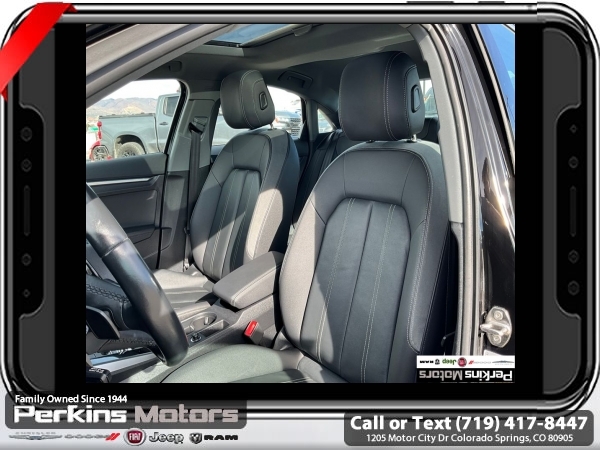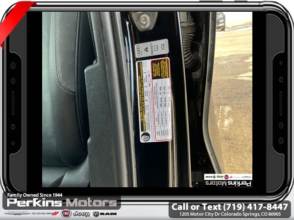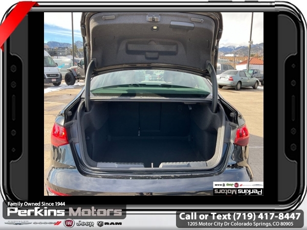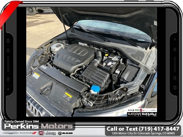 Black FrontTrak 2.0L 4-Cylinder TFSI 7-Speed Automatic S tronic<br><br>Black/Rock Gray Stitching Leather, ABS brakes, Alloy wheels, Electronic Stability Control, Emergency communication system, Front dual zone A/C, Heated door mirrors, Heated Front Bucket Seats, Heated front seats, Illuminated entry, Low tire pressure warning, Power moonroof, Remote keyless entry, Traction control.<br><br><br>Check us out at www.perkinsmotors.com to see our specials! Since opening our doors in 1944, we’ve been proud to serve Colorado Springs, CO, and the surrounding areas of Pueblo, Castle Rock and Denver, CO. Throughout this time of being family owned for 80 years, we’ve maintained a firm commitment to our customers: to offer a wide selection of New Chrysler, Dodge, Fiat, Jeep, and Ram vehicles and quality pre-owned vehicles, and provide a quick, no-hassle car-buying process that ensures everyone drives off the lot satisfied with their purchase.<br><br><br>Black/Rock Gray Stitching Leather, ABS brakes, Alloy wheels, Electronic Stability Control, Emergency communication system, Front dual zone A/C, Heated door mirrors, Heated Front Bucket Seats, Heated front seats, Illuminated entry, Low tire pressure warning, Power moonroof, Remote keyless entry, Traction control, 4-Wheel Disc Brakes, 6 Speakers, Air Conditioning, AM/FM radio, Auto High-beam Headlights, Automatic temperature control, Brake assist, Bumpers: body-color, Cruise Control, Delay-off headlights, Driver door bin, Driver vanity mirror, Dual front impact airbags, Dual front side impact airbags, Exterior Parking Camera Rear, Four wheel independent suspension, Front anti-roll bar, Front Bucket Seats, Front Center Armrest, Front reading lights, Fully automatic headlights, Knee airbag, Leather Seating Surfaces, Leather steering wheel, Occupant sensing airbag, Outside temperature display, Overhead airbag, Overhead console, Panic alarm, Passenger door bin, Passenger vanity mirror, Power door mirrors, Power driver seat, Power passenger seat, Power steering, Power windows, Radio data system, Radio: Audi Sound System, Rain sensing wipers, Rear air conditioning, Rear anti-roll bar, Rear fog lights, Rear reading lights, Rear seat center armrest, Rear side impact airbag, Rear window defroster, Speed-sensing steering, Speed-Sensitive Wipers, Split folding rear seat, Steering wheel mounted audio controls, Tachometer, Telescoping steering wheel, Tilt steering wheel, Trip computer, Turn signal indicator mirrors, Variably intermittent wipers, and Wheels: 17 5-Arm Design.
