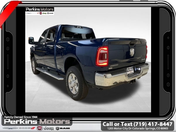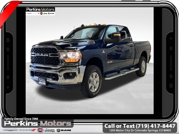 Factory MSRP: $79,490 $15,542 off MSRP! Patriot Blue Pearlcoat 2024 Ram 2500 Big Horn 4WD 6-Speed Automatic Cummins 6.7L I6 Turbodiesel<br><br>Check us out at www.perkinsmotors.com to see our specials! Since opening our doors in 1944, we’ve been proud to serve Colorado Springs, CO, and the surrounding areas of Pueblo, Castle Rock and Denver, CO. Throughout this time of being family owned for 80 years, we’ve maintained a firm commitment to our customers: to offer a wide selection of New Chrysler, Dodge, Fiat, Jeep, and Ram vehicles and quality pre-owned vehicles, and provide a quick, no-hassle car-buying process that ensures everyone drives off the lot satisfied with their purchase.<br><br>Bed Utility Group (LED Bed Lighting, MOPAR Deployable Bed Step, and MOPAR Spray In Bedliner), Cold Weather Group (Engine Block Heater and MOPAR Winter Front Grille Cover), Heated Seats & Wheel Group (Heated Front Seats, Heated Steering Wheel, Leather Wrapped Steering Wheel, and Steering Wheel Mounted Audio Controls), Level 1 Equipment Group (2 Way Rear Headrest Seat, 2nd Row In Floor Storage Bins, 4 Way Front Headrests, 40/20/40 Split Bench Seat, 4G LTE Wi-Fi Hot Spot, 8.4 Touchscreen Display, Apple CarPlay, Auto Power-Folding Mirrors, Big Horn IP Badge, Black Exterior Mirrors, Bluetooth Handsfree Phone & Audio, Center Hub, Connectivity - US/Canada, Dual Glove Boxes, Exterior Mirrors Courtesy Lamps, Exterior Mirrors w/Heating Element, Exterior Mirrors w/Supplemental Signals, Foam Bottle Insert (Door Trim Panel), Footwell Courtesy Lamp, For Details, Visit DriveUconnect.com, For More Info, Call 800-643-2112, Forward & Reverse Utility Lights, Front Armrest w/Cupholders, Front Center Seat Cushion Storage, Front Fog Lamps, Front Seat Back Map Pockets, Global Telematics Box Module (TBM), Glove Box Lamp, Google Android Auto, GPS Antenna Input, Integrated Center Stack Radio, Integrated Voice Command w/Bluetooth, Locking Lower Glove Box, Manual Adjust 4-Way Front Passenger Seat, Mirror Running Lights, Power 2-Way Driver Lumbar Adjust, Power Adjust 8-Way Driver Seat, Power Adjust Mirrors, Power Adjustable Convex Aux Mirrors, Power Heated Fold Telescope Mirrors, Power Telescoping Mirrors, Rear 60/40 Folding Seat, Rear Dome w/On/Off Switch Lamp, Remote USB Port - Charge Only, Selectable Tire Fill Alert, SiriusXM Radio Service, SiriusXM Satellite Radio, Storage Tray, and Wheels: 18 x 8.0 Polished Aluminum), Protection Group (Tow Hooks), Quick Order Package 2HZ Big Horn, Snow Chief Group (Anti-Spin Differential Rear Axle, Auxiliary Switches Prep, Clearance Lamps, Dash Pass Thru Wire Circuits, and I/P Mounted Auxiliary Switches), 115V Auxiliary Front Power Outlet, 12 Touchscreen Display, 220 Amp Alternator, 3.73 Axle Ratio, 4-Wheel Disc Brakes, 400W Inverter, 5th Wheel/Gooseneck Towing Prep Group, 6 Speakers, 9 Alpine Speakers w/Subwoofer, ABS brakes, Active Noise Control System, Air Conditioning, Air Conditioning ATC w/Dual Zone Control, Alexa Built-In, All R1 High Radios, All Radio Equipped Vehicles, Auto Level Rear Air Suspension, Blind Spot & Cross Path Detection, Brake assist, Bumpers: chrome, Center Stack Storage Drawer, Chrome Flat Wheel-to-Wheel Side Steps, Cloth 40/20/40 Bench Seat, Compass, Connected Travel & Traffic Services, Cruise Control, CTR Stop Lamp w/Cargo View Camera, Delay-off headlights, Disassociated Touchscreen Display, Driver door bin, Dual Alternators Rated At 440 Amps, Dual front impact airbags, Dual front side impact airbags, Electronic Stability Control, Electronically Controlled Throttle, Emergency communication system: SiriusXM Guardian, Exterior 115V AC Outlet, Front anti-roll bar, Front Sale price includes all manufacture's incentives and dealer discounts. Sale price not available on lease or compatible with special APR. $1000 - 2024West BC Trade Assist Bonus Cash. Exp. 06/30/2025 $1500 - 2024 National Stellantis Loyalty Bonus Cash . Exp. 06/30/2025 $6726 - 2024 National Minimum Employee Pricing Discount . Exp. 0