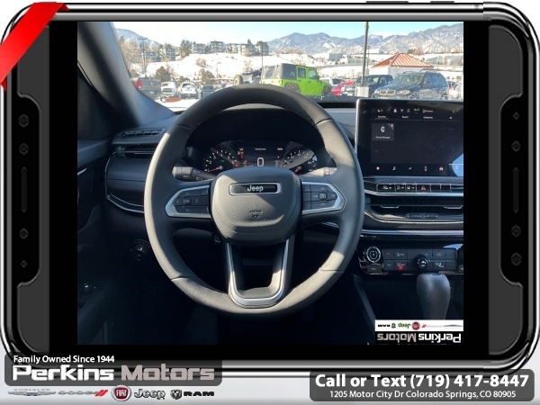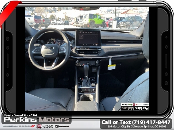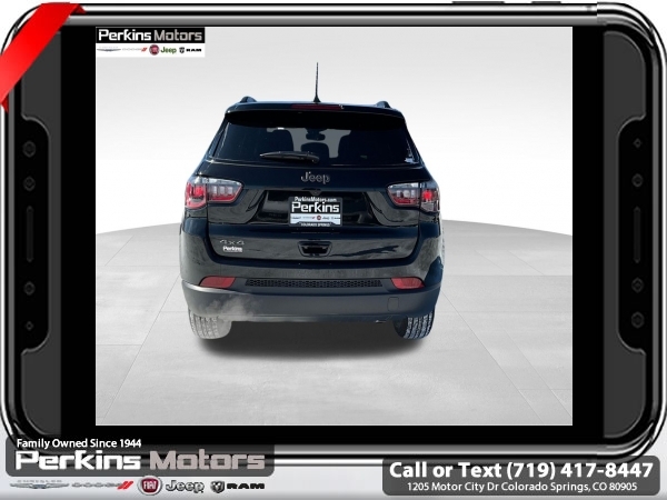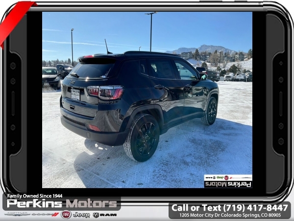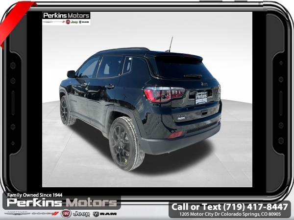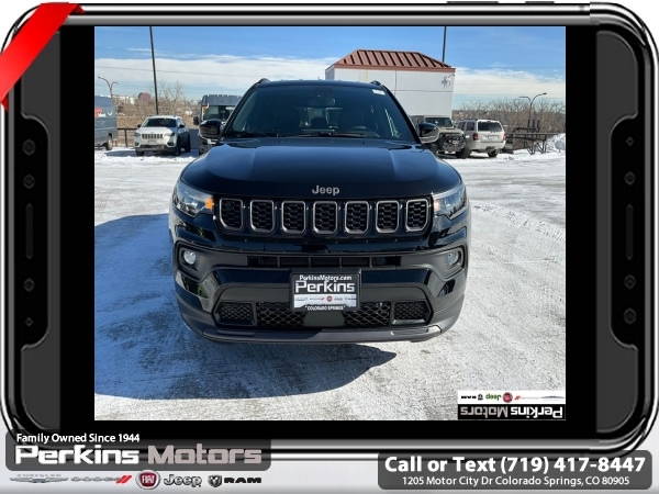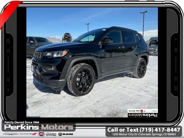 Factory MSRP: $32,700 $4,250 off MSRP! Priced below KBB Fair Purchase Price! Diamond Black Crystal Pearlcoat 2025 Jeep Compass Latitude 4WD 8-Speed Automatic 2.0L I4 DOHC<br>4WD.<br>Check us out at www.perkinsmotors.com to see our specials! Since opening our doors in 1944, we’ve been proud to serve Colorado Springs, CO, and the surrounding areas of Pueblo, Castle Rock and Denver, CO. Throughout this time of being family owned for 80 years, we’ve maintained a firm commitment to our customers: to offer a wide selection of New Chrysler, Dodge, Fiat, Jeep, and Ram vehicles and quality pre-owned vehicles, and provide a quick, no-hassle car-buying process that ensures everyone drives off the lot satisfied with their purchase.<br><br>Altitude Special Edition (Black Day Light Opening Moldings, Gloss Black Surround/Neutral Gray Rings, Neutral Gray Exterior Badging, Piano Black Interior Accents, Sliding Sun Visors w/Illuminated Mirrors, and Wheels: 18 x 7 Gloss Black Painted Aluminum), MOPAR Interior Protection Package (MOPAR All-Weather Floor Mats), Quick Order Package 29J, 4WD, 17 x 7 Aluminum Wheels, 3.73 Final Drive Ratio, 4-Wheel Disc Brakes, 6 Speakers, ABS brakes, Air Conditioning, Alloy wheels, AM/FM radio: SiriusXM, Auto High-beam Headlights, Brake assist, Bumpers: body-color, Compass, Cruise Control, Delay-off headlights, Driver door bin, Driver vanity mirror, Dual front impact airbags, Dual front side impact airbags, Electronic Stability Control, Emergency communication system: Jeep Connect, Four wheel independent suspension, Front anti-roll bar, Front Bucket Seats, Front Center Armrest w/Storage, Front fog lights, Front License Plate Bracket, Front reading lights, Fully automatic headlights, Heated door mirrors, Heated front seats, Heated steering wheel, Illuminated entry, Knee airbag, Leather Shift Knob, Leather steering wheel, Low tire pressure warning, Occupant sensing airbag, Outside temperature display, Overhead airbag, Overhead console, Panic alarm, ParkView Rear Back-Up Camera, Passenger door bin, Passenger vanity mirror, Power door mirrors, Power steering, Power windows, Premium Cloth/Vinyl Bucket Seats, Radio: Uconnect 5 w/8.4 Display, Rear anti-roll bar, Rear seat center armrest, Rear window defroster, Rear window wiper, Remote keyless entry, Security system, Split folding rear seat, Spoiler, Steering wheel mounted audio controls, Tachometer, Telescoping steering wheel, Tilt steering wheel, Traction control, Trip computer, and Variably intermittent wipers.<br><br>24/32 City/Highway MPG Sale price includes all manufacture's incentives and dealer discounts. Sale price not available on lease or compatible with special APR. $1500 - 2025 National Presidents Day Retail Bonus Cash. Exp. 03/03/2025 $500 - 2025 National Retail Consumer Cash. Exp. 03/03/2025