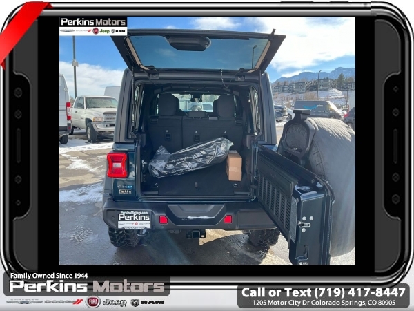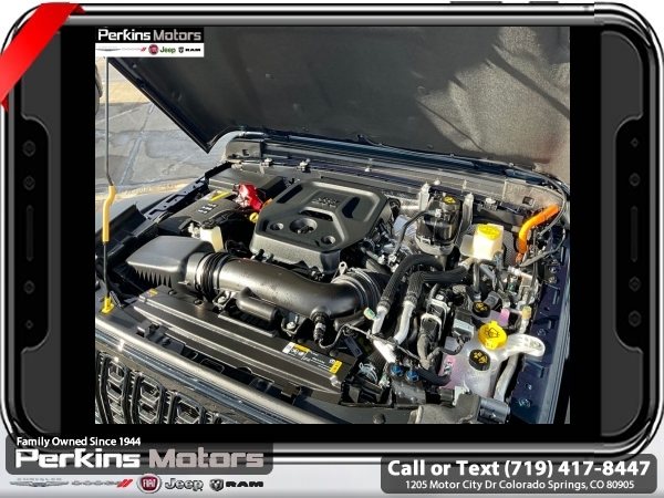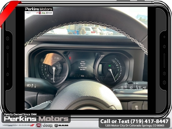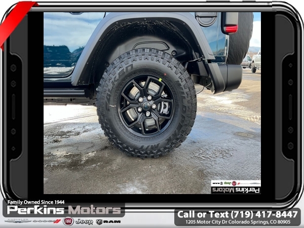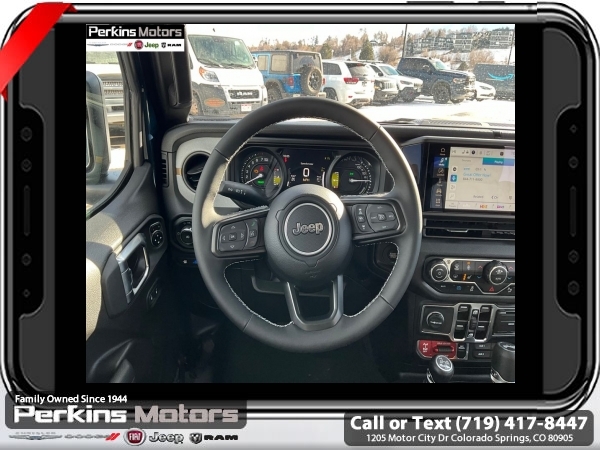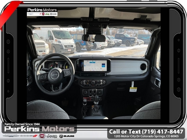 Factory MSRP: $66,550 $14,000 off MSRP! Priced below KBB Fair Purchase Price! Fathom Blue Pearlcoat 2025 Jeep Wrangler Willys 4xe 4WD 8-Speed Automatic 2.0L I4 DOHC<br>2.0L I4 DOHC.<br>Check us out at www.perkinsmotors.com to see our specials! Since opening our doors in 1944, we’ve been proud to serve Colorado Springs, CO, and the surrounding areas of Pueblo, Castle Rock and Denver, CO. Throughout this time of being family owned for 80 years, we’ve maintained a firm commitment to our customers: to offer a wide selection of New Chrysler, Dodge, Fiat, Jeep, and Ram vehicles and quality pre-owned vehicles, and provide a quick, no-hassle car-buying process that ensures everyone drives off the lot satisfied with their purchase.<br><br>Convenience Group (2-Door Passive Entry, Front Door Locks, Heated Steering Wheel, and Universal Garage Door Opener), Quick Order Package 29W Willys 4xe (4-Wheel Drive Swing Gate Decal, 4.10 Rear Axle Ratio, 7 & 4 Pin Wiring Harness, Auxiliary Switches, Front LED Fog Lamps, MOPAR All-Weather Floor Mats, and Willys 4xe Hood Decal), Safety Group (Blind Spot & Cross Path Detection and LED Taillamps), 2.0L I4 DOHC, 3.73 Rear Axle Ratio, 4-Wheel Disc Brakes, 8 Speakers, ABS brakes, Air Conditioning, Alloy wheels, Apple CarPlay/Android Auto, Black 3-Piece Hard Top, Brake assist, Cloth Low-Back Bucket Seats, Compass, Cruise Control, Delay-off headlights, Driver door bin, Driver vanity mirror, Dual front impact airbags, Dual front side impact airbags, Electronic Stability Control, Front anti-roll bar, Front Bucket Seats, Front Center Armrest w/Storage, Front fog lights, Front License Plate Bracket (DISC), Front reading lights, Fully automatic headlights, Heated door mirrors, Illuminated entry, Integrated roll-over protection, Jeep Trail Rated Kit, Low tire pressure warning, MOPAR Cargo Tub Liner, MOPAR Doors Off Mirror Kit, MOPAR Hardtop Headliner, MOPAR Hinge-Gate Reinforcement, MOPAR Plastic Door Sill Guards, Occupant sensing airbag, Outside temperature display, Overhead airbag, Panic alarm, ParkView Rear Back-Up Camera, Passenger door bin, Passenger vanity mirror, Power door mirrors, Power steering, Power windows, Radio data system, Radio: Uconnect 5 w/12.3 Display, Rear anti-roll bar, Rear reading lights, Rear Window Wiper/Washer, Remote keyless entry, Security system, Split folding rear seat, Sport Suspension, Steering wheel mounted audio controls, Tachometer, Telescoping steering wheel, Tilt steering wheel, Traction control, Trip computer, Variably intermittent wipers, Voltmeter, and Wheels: 20 x 8 Machined/Painted Gray. Sale price includes all manufacture's incentives and dealer discounts. Sale price not available on lease or compatible with special APR. $500 - 2025 National Jeep Celebration Event Bonus Cash . Exp. 04/30/2025 $6500 - 2025 National Retail Consumer Cash. Exp. 04/30/2025