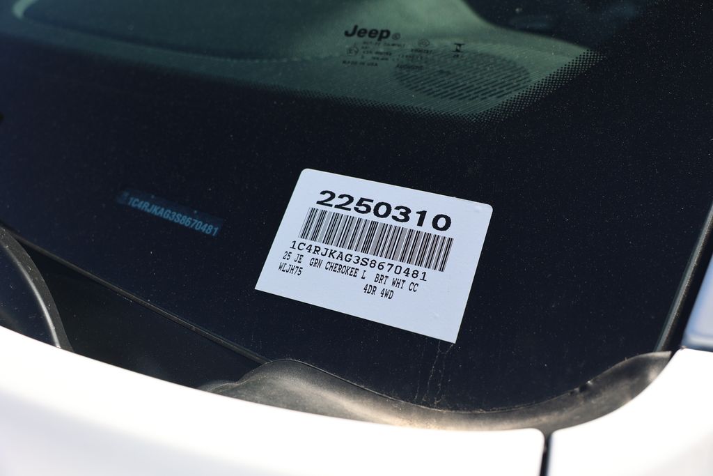 2025 Jeep Grand Cherokee L Altitude X Bright White ClearcoatFactory MSRP: $49,580115V Auxiliary Power Outlet, 3rd Row Charge-Only USB Ports, Altitude X, Black Headliner, Capri Leatherette/Suede Seats, Delete Laredo Badge, Gloss Black Exterior Accents, Heated Front Seats, Heated Steering Wheel, Power Liftgate, Power Sunroof, Quick Order Package 23M Altitude X, Rain Sensitive Windshield Wipers, Remote Start System, Selectable Tire Fill Alert, Wheels: 18" x 8.0" Fully Painted Aluminum 1, Wireless Charging Pad. 18/25 City/Highway MPG 4WD 8-Speed Automatic 3.6L V6 24V VVT Price includes: $3158 - 2025 National Minimum Employee Pricing Discount. Exp. 06/02/2025