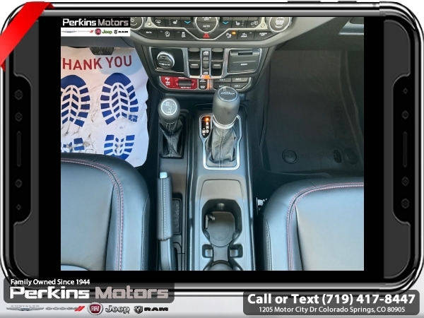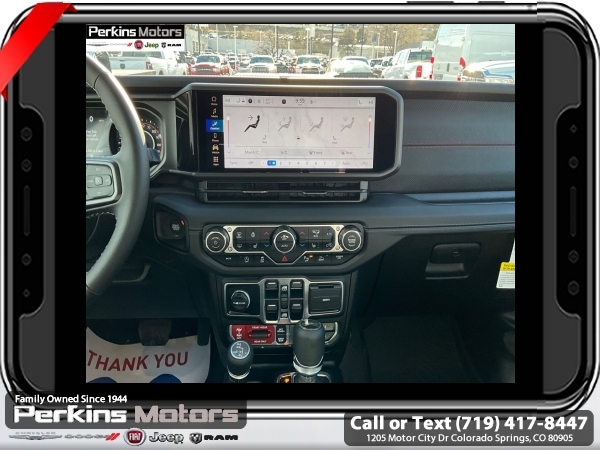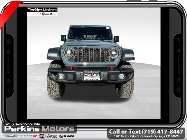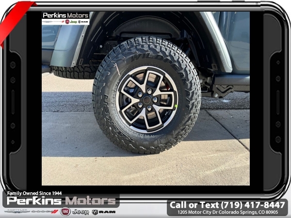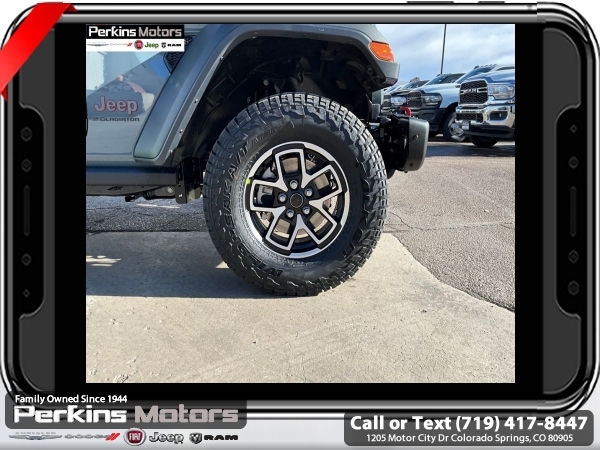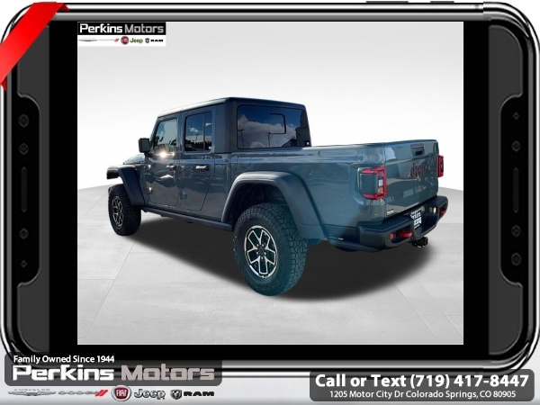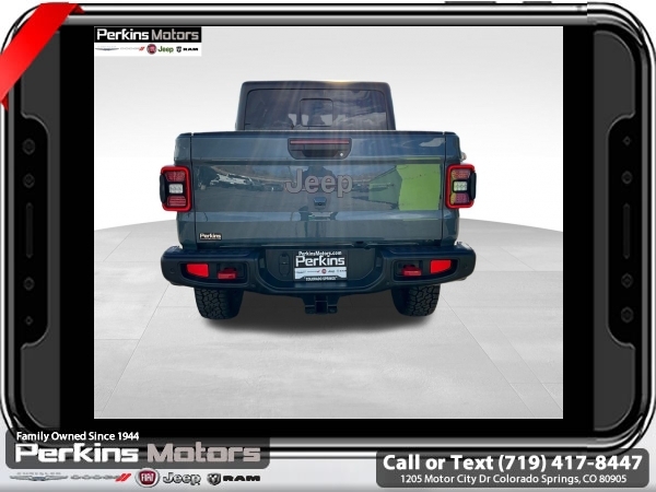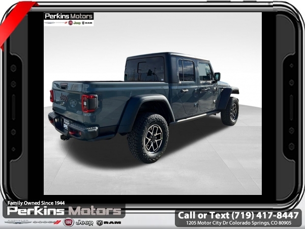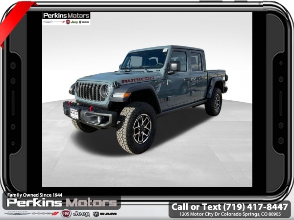 Factory MSRP: $62,610 $10,405 off MSRP! Anvil Clearcoat 2025 Jeep Gladiator Rubicon 4WD 8-Speed Automatic 3.6L V6 24V VVT<br><br>Check us out at www.perkinsmotors.com to see our specials! Since opening our doors in 1944, we’ve been proud to serve Colorado Springs, CO, and the surrounding areas of Pueblo, Castle Rock and Denver, CO. Throughout this time of being family owned for 80 years, we’ve maintained a firm commitment to our customers: to offer a wide selection of New Chrysler, Dodge, Fiat, Jeep, and Ram vehicles and quality pre-owned vehicles, and provide a quick, no-hassle car-buying process that ensures everyone drives off the lot satisfied with their purchase.<br><br>Convenience Group (Heated Front Seats, Heated Steering Wheel, Remote Start System, SiriusXM Radio Service, SiriusXM w/360L, and Universal Garage Door Opener), Quick Order Package 24R Rubicon, Safety Group (Auto High Beam Headlamp Control, Blind Spot & Cross Path Detection, and ParkSense Rear Park Assist System), Steel Bumper Group (Steel Front Bumper), 12.3 Touchscreen Display, 4-Wheel Disc Brakes, 4.10 Rear Axle Ratio, 4G LTE Wi-Fi Hot Spot, 8 Speakers, 97 MPH Vehicle Max Speed Calibration, ABS brakes, Air Conditioning, Alexa Built-In, Alloy wheels, AM/FM radio: SiriusXM, Apple CarPlay, Apple CarPlay/Android Auto, Automatic temperature control, Black 3-Piece Hard Top, Brake assist, Cloth Low-Back Bucket Seats, Compass, Connectivity - US/Canada, Cruise Control, Delay-off headlights, Driver door bin, Driver vanity mirror, Dual front impact airbags, Dual front side impact airbags, Electronic Stability Control, Emergency communication system: Jeep Connect, Freedom Panel Storage Bag, Front anti-roll bar, Front Bucket Seats, Front Center Armrest w/Storage, Front dual zone A/C, Front fog lights, Front License Plate Bracket, Front reading lights, Fully automatic headlights, Google Android Auto, Heated door mirrors, Illuminated entry, Integrated roll-over protection, Jeep Trail Rated Kit, Low tire pressure warning, MOPAR All-Weather Slush Mats, MOPAR Hardtop Headliner, MOPAR Spray In Bedliner, Occupant sensing airbag, Outside temperature display, Overhead airbag, Panic alarm, Passenger door bin, Passenger vanity mirror, Performance Suspension, Power door mirrors, Power steering, Power windows, Radio data system, Radio: Uconnect 5 w/12.3 Display, Rear anti-roll bar, Rear reading lights, Rear Sliding Window, Rear Window Defroster, Remote keyless entry, Security system, Split folding rear seat, Steering wheel mounted audio controls, Tachometer, Telescoping steering wheel, Tilt steering wheel, Traction control, Trip computer, USB Host Flip, Variably intermittent wipers, Voltmeter, and Wheels: 17 x 7.5 Machined/Painted Black. Sale price includes all manufacture's incentives and dealer discounts. Sale price not available on lease or compatible with special APR. $3250 - 2025 National Bonus Cash . Exp. 06/30/2025