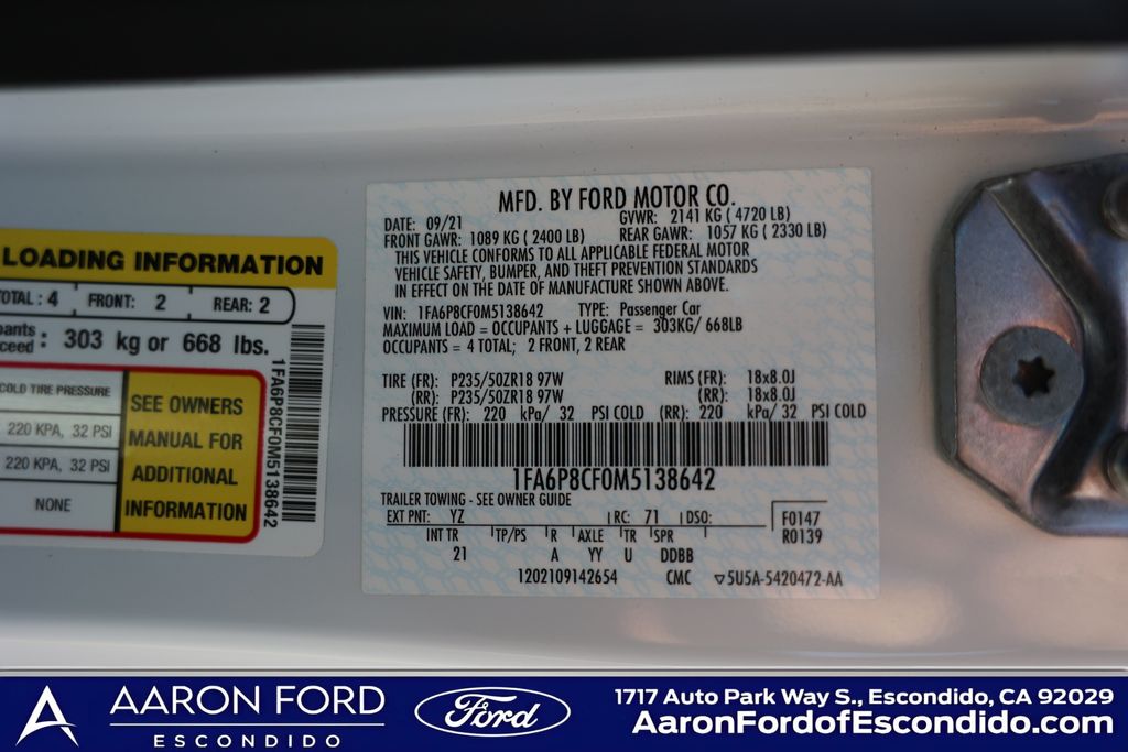Oxford White 2021 Ford Mustang GT RWD 10-Speed Automatic 5.0L V8 Ti-VCT Equipment Group 300A, Spoiler.Recent Arrival! Odometer is 27616 miles below market average!