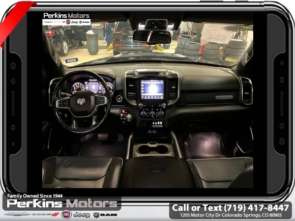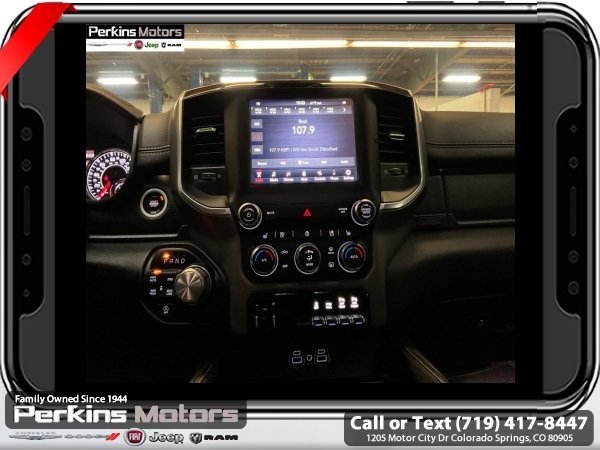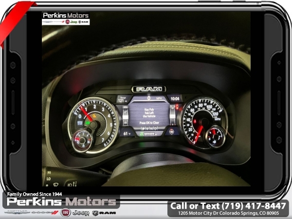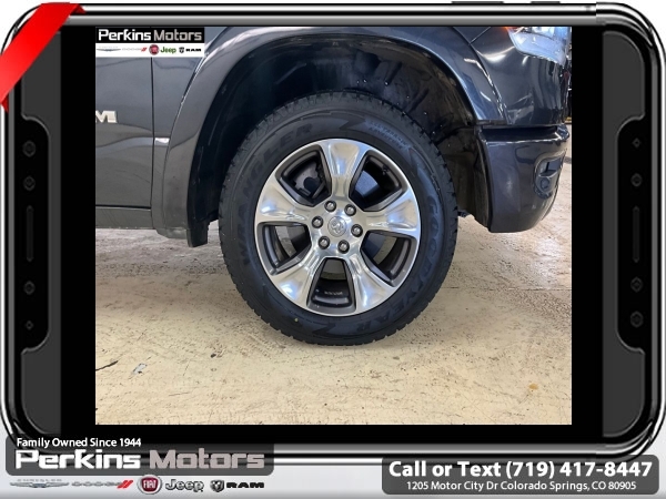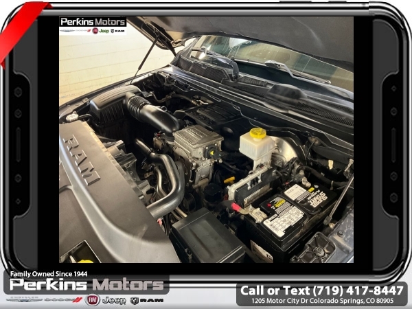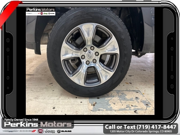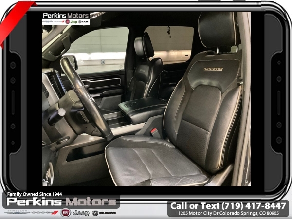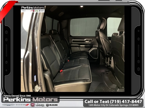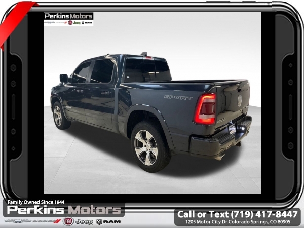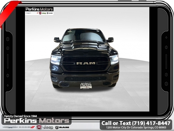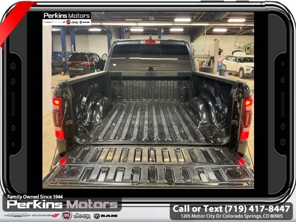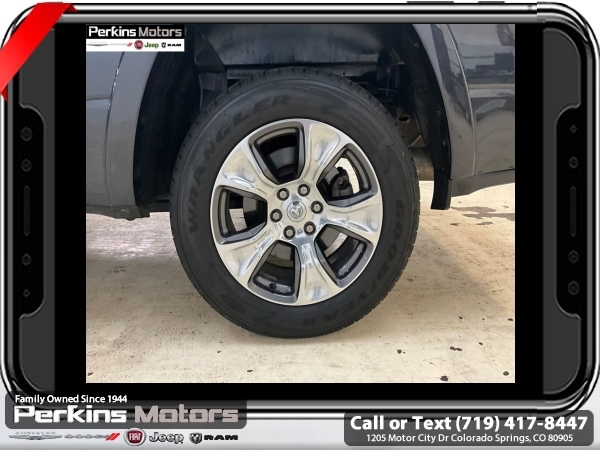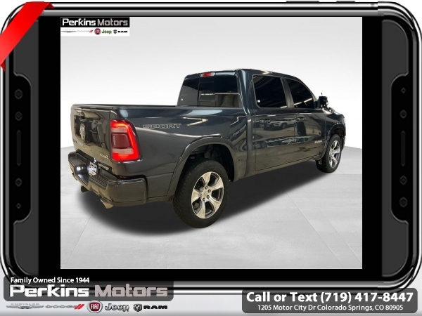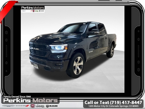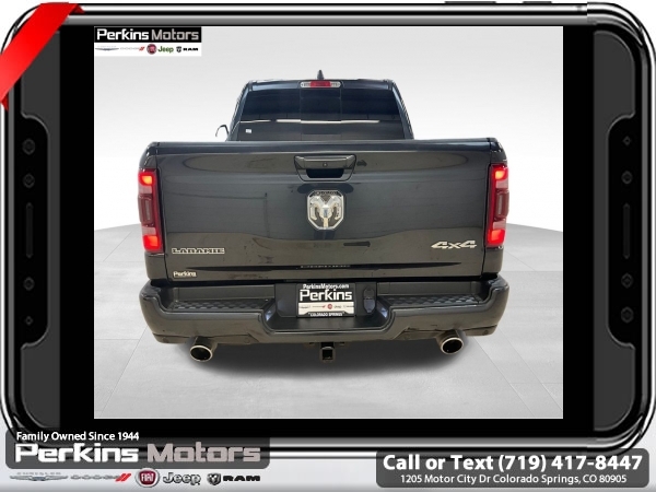 Maximum Steel Metallic Clearcoat 4WD HEMI 5.7L V8 Multi Displacement VVT eTorque 8-Speed Automatic<br><br>Auto High Beam Headlamp Control, Black Interior Accents, Blind Spot & Cross Path Detection, Body Color Door Handles, Body Color Exterior Mirrors, Body Color Front Bumper, Body Color Premium Power Mirrors, Body Color Rear Bumper w/Step Pads, Foam Bottle Insert (Door Trim Panel), Grille Surround 3 Body Color Tex 2 Black, Laramie Level 1 Equipment Group, ParkSense Front/Rear Park Assist w/Stop, Rain Sensitive Windshield Wipers, Rear 60/40 Folding Split Recline Seat, Remote Tailgate Release, Sport Appearance Package, Sport Decal, Sport Performance Hood, Tailgate Ajar Warning Lamp, Wheels: 20 x 9 Premium Painted w/Inserts.<br><br><br>Check us out at www.perkinsmotors.com to see our specials! Since opening our doors in 1944, we’ve been proud to serve Colorado Springs, CO, and the surrounding areas of Pueblo, Castle Rock and Denver, CO. Throughout this time of being family owned for 80 years, we’ve maintained a firm commitment to our customers: to offer a wide selection of New Chrysler, Dodge, Fiat, Jeep, and Ram vehicles and quality pre-owned vehicles, and provide a quick, no-hassle car-buying process that ensures everyone drives off the lot satisfied with their purchase.<br><br><br>Awards:<br> * JD Power Automotive Performance, Execution and Layout (APEAL) Study<br><br>Laramie Level 1 Equipment Group (Auto High Beam Headlamp Control, Blind Spot & Cross Path Detection, Foam Bottle Insert (Door Trim Panel), ParkSense Front/Rear Park Assist w/Stop, Rain Sensitive Windshield Wipers, Rear 60/40 Folding Split Recline Seat, Remote Tailgate Release, and Tailgate Ajar Warning Lamp), Sport Appearance Package (Black Interior Accents, Body Color Door Handles, Body Color Exterior Mirrors, Body Color Front Bumper, Body Color Premium Power Mirrors, Body Color Rear Bumper w/Step Pads, Grille Surround 3 Body Color Tex 2 Black, Sport Decal, Sport Performance Hood, and Wheels: 20 x 9 Premium Painted w/Inserts), Quick Order Package 27H Laramie, #1 Seat Foam Cushion, 10 Speakers, 3 Rear Seat Head Restraints, 3.21 Rear Axle Ratio, 4 Way Front Headrests, 4-Wheel Disc Brakes, 48V Belt Starter Generator, 8.4 Touchscreen Display, ABS brakes, Adjustable pedals, Air Conditioning, Alloy wheels, AM/FM radio: SiriusXM, Anti-Spin Differential Rear Axle, Apple CarPlay, Apple CarPlay/Android Auto, Audio memory, Auto-dimming door mirrors, Auto-dimming Rear-View mirror, Automatic temperature control, Brake assist, Bumpers: chrome, Compass, Cruise Control, Delay-off headlights, Driver door bin, Driver Seat Memory, Driver vanity mirror, Dual front impact airbags, Dual front side impact airbags, Electronic Stability Control, Front anti-roll bar, Front Center Armrest w/Storage, Front dual zone A/C, Front fog lights, Front reading lights, Front Seat Back Map Pockets, Front wheel independent suspension, Fully automatic headlights, Garage door transmitter, Google Android Auto, GPS Antenna Input, Heated door mirrors, Heated Front Seats, Heated front seats, Heated Steering Wheel, Heated steering wheel, Illuminated entry, Integrated Center Stack Radio, Leather steering wheel, Leather Trim 40/20/40 Bench Seat, Low tire pressure warning, Memory seat, Occupant sensing airbag, Outside temperature display, Overhead airbag, Overhead console, Panic alarm, ParkSense Front/Rear Park Assist w/Stop (DISC), ParkView Rear Back-Up Camera, Passenger door bin, Passenger vanity mirror, Pedal memory, Power 4-Way Driver Lumbar Adjust, Power 4-Way Passenger Lumbar Adjust, Power 8-Way Driver & Passenger Seats, Power door mirrors, Power driver seat, Power passenger seat, Power steering, Power windows, Radio data system, Radio: Uconnect 4 w/8.4 Display, Rear anti-roll bar, Rear seat center armrest, Rear step bumper, Rear window defroster, Remote keyless entry, Security system, SiriusXM Satellite Radio, Split folding rear seat, Steering wheel mounted audio controls, Tachometer, Telesco