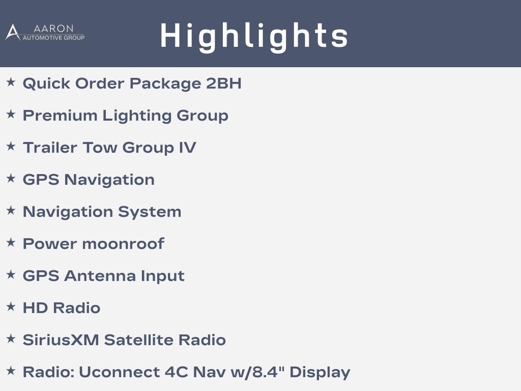 Priced below KBB Fair Purchase Price!1-Year SiriusXM Guardian Trial, 4G LTE Wi-Fi Hot Spot, 7 & 4 Pin Wiring Harness, 8.4" Touchscreen Display, Apple CarPlay, Apple CarPlay/Android Auto, Auto High Beam Headlamp Control, Bi-Xenon High-Intensity Discharge Headlamps, Class IV Receiver Hitch, Front LED Fog Lamps, Google Android Auto, GPS Antenna Input, GPS Navigation, HD Radio, Heated front seats, Heated steering wheel, Heavy-Duty Engine Cooling, Integrated Voice Command w/Bluetooth, LED Daytime Running Headlamps, Navigation System, Normal Duty Suspension, Power Liftgate, Power moonroof, Premium Lighting Group, Quick Order Package 2BH, Radio: Uconnect 4C Nav w/8.4" Display, Rear Load Leveling Suspension, Remote keyless entry, SiriusXM Satellite Radio, SiriusXM Traffic Plus, SiriusXM Travel Link, Trailer Tow Group IV, Wheels: 18" x 8.0" Tech Gray Diamond Cut.Clean CARFAX.CARFAX One-Owner.