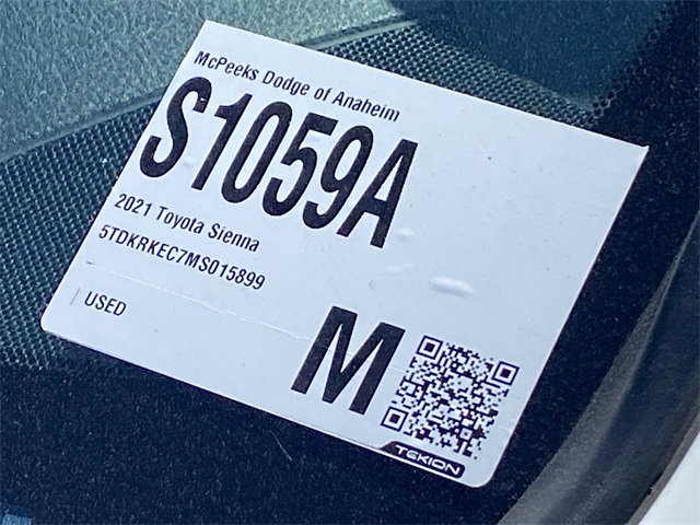 36/36 City/Highway MPG INTERIOR & EXTERIOR PROFESSIONALLY DETAILED FOR DELIVERY, MCPEEK CHRYSLER DODGE JEEP RAM FAMILY OWNED AND OPERATED SINCE 1961 !!!!!.Blizzard Pearl 2021 Toyota Sienna LE 8 Passenger FWD CVTAwards: * JD Power Automotive Performance, Execution and Layout (APEAL) StudyReceive Free lube and oil filter changes for up to 45,000 miles for 3 years!!! McPeek's Dodge of Anahiem 1221 S. Auto Center Drive Anahiem, CA 92806 714-262-4902.