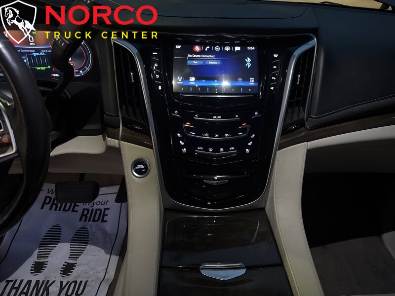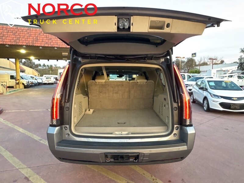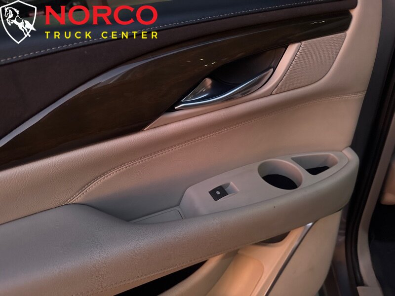 INSTALLED FEATURES: Air filtration, Front air conditioning: automatic climate control, Front air conditioning zones: dual, Rear air conditioning: automatic climate control / independently controlled, Rear air conditioning zones: single, Rear vents: third row, Airbag deactivation: occupant sensing passenger, Front airbags: center / dual, Side airbags: front, Side curtain airbags: front / rear / third row, Antenna type: diversity / mast, Auxiliary audio input: Bluetooth / iPod/iPhone / jack / USB, In-Dash CD: MP3 Playback / single disc, Premium brand: Bose, Radio: AM/FM / HD radio / touch screen display / voice operated, Radio data system, Satellite radio: SiriusXM, Speed sensitive volume control, Subwoofer: 1, Surround sound, Total speakers: 15, ABS: 4-wheel, Braking assist, Electronic brakeforce distribution, Emergency braking preparation, Front brake type: ventilated disc, Power brakes, Rear brake type: ventilated disc, Armrests: rear folding / rear outboard seats, Center console trim: leather, Dash trim: leather, Door trim: leather, Floor mat material: carpet, Floor material: carpet, Floor mats: front / rear, Heated steering wheel, Interior accents: chrome, Shift knob trim: leather, Steering wheel trim: leather / wood, Active parking system: semi-automatic, Adjustable pedals: power, Ambient lighting, Assist handle: front / rear, Capless fuel filler system, Cargo area light, Center console: front console with armrest and storage / illuminated, Courtesy lights: door, Cruise control, Cupholders: front / rear / third row, Easy entry: power rear seat, Footwell lights, Memorized settings: 2 driver / adjustable pedals / driver seat / liftgate / side mirrors / steering wheel, Multi-function remote: panic alarm / proximity entry system / trunk release, One-touch windows: 4, Overhead console: front, Power outlet(s): 115V rear / 12V cargo area / 12V front / 12V rear, Power steering, Power windows: lockout button, Push-button start, Reading lights: front / rear, Rearview mirror: auto-dimming, Remote engine start, Steering wheel: power tilt and telescopic, Steering wheel mounted controls: audio / cruise control / multi-function / phone / voice control, Storage: bin / cargo net / cargo tie-down anchors and hooks / door pockets / front seatback, Universal remote transmitter: garage door opener, Vanity mirrors: dual illuminating, Wireless charging station: front, Active grille shutters, Body side moldings: chrome, Door handle color: chrome, Exhaust: hidden, Front bumper color: body-color, Grille color: chrome, Mirror color: body-color, Rear bumper color: body-color, Rear trunk/liftgate: liftgate / power operated / sensor-activated, Running board color: aluminum, Running boards, Window trim: chrome, Connected in-car apps: app marketplace integration / Google POIs / Google search, Infotainment: Cadillac Infotainment System, Infotainment screen size: 8 in., Smartphone integration: Android Auto / Apple CarPlay, Clock, Compass, Customizable instrument cluster, Digital odometer, External temperature display, Fuel economy display: MPG / range, Gauge: tachometer, Head-up display, Instrument cluster screen size: 12 in., Multi-function display, Trip odometer, Warnings and reminders: coolant temperature warning / lamp failure / low fuel level / low oil pressure / maintenance due, Daytime running lights: LED, Exterior entry lights: approach lamps / puddle lamps, Headlights: auto delay off / auto high beam dimmer / auto on/off / LED / wiper activated, Taillights: LED, Side mirror adjustments: power / power folding / reverse gear tilt, Side mirrors: driver side auto-dimming / heated / integrated turn signals, Alternator: 170 amps, Auxiliary oil cooler, Auxiliary transmission fluid cooler, Battery: heavy duty / maintenance-free, Battery saver, Cylinder deactivation, Drive mode selector, Locking differential: rear, Moonroof / Sunroof: anti-trapping / one-touch open/close / power glass / sliding sunshade / tilt/slide, Moonroof / Sunroof wind deflector, Roof rails: chrome, Automatic emergency braking: front, Blind spot safety: sensor/alert, Camera system: surround view, Camera system washer: rear, Check rear seat reminder, Child safety door locks, Child seat anchors: LATCH system, Cross traffic alert: rear, Crumple zones: front / rear, Lane deviation sensors, Lane keeping assist, Parking sensors: front / rear, Pre-collision warning system: audible warning / vibrating driver seat / visual warning, Programmable safety key, Rearview monitor: in mirror, Emergency locking retractors: front / rear, Front seatbelts: 3-point, Rear seatbelts: 3-point, Seatbelt force limiters: front, Seatbelt pretensioners: front, Seatbelt warning sensor: front, Third row seatbelts: 3-point, Driver seat: cooled / heated, Driver seat power adjustments: 12 / 4-way power lumbar / height / reclining, Front headrests: 2 / adjustable, Front seat type: bucket, Passenger seat: cooled / heated, Passenger seat power adjustments: 12 / 4-way power lumbar / height / reclining, Rear headrests: 2 / adjustable, Rear seat: heated, Rear seat folding: power, Rear seat manual adjustments: reclining, Rear seat type: bucket, Third row headrests: 2 / adjustable, Third row seat folding: power / split, Third row seat type: 40-60 split bench, Upholstery: leather-trimmed, Anti-theft system: alarm / anti-tow sensor / glass breakage sensor / interior motion sensor / vehicle immobilizer, Power door locks: anti-lockout / auto-locking, Hill holder control, Roll stability control, Stability control, Traction control, Trailer stability control, Active suspension, Air suspension: rear, Driver adjustable suspension: ride control, Front shock type: monotube, Front spring type: coil, Front stabilizer bar: diameter 36 mm, Front struts, Front suspension classification: independent, Front suspension type: short and long arm, Rear shock type: monotube, Rear spring type: coil, Rear stabilizer bar: diameter 28 mm, Rear suspension classification: solid live axle, Rear suspension type: mult