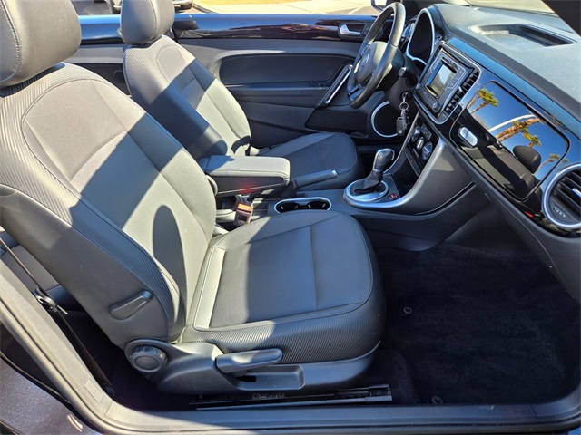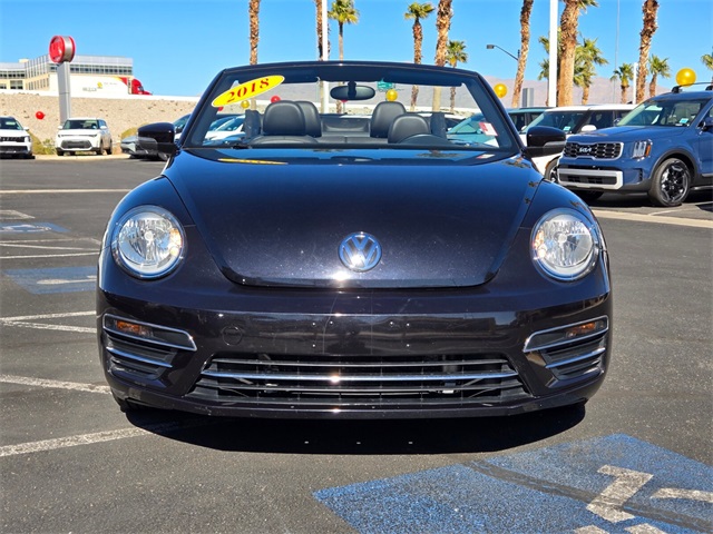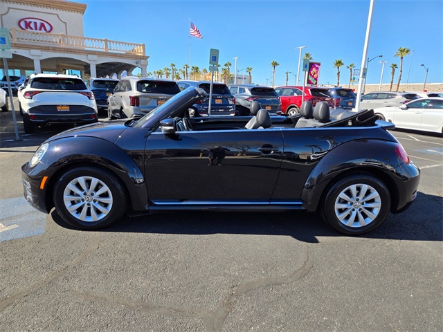 Priced below KBB Fair Purchase Price!Odometer is 25012 miles below market average!26/33 City/Highway MPGBlack 2018 Volkswagen Beetle 2.0T S FWD 6-Speed Automatic with Tiptronic 2.0L TSIIf you don't drive here, you can't save here!Price may not include recon fee. 4-Wheel Disc Brakes, 8 Speakers, ABS brakes, Air Conditioning, Alloy wheels, AM/FM radio, Bodyside moldings, Brake assist, Bumpers: body-color, CD player, Convertible roof lining, Driver door bin, Driver vanity mirror, Dual front impact airbags, Dual front side impact airbags, Electronic Stability Control, Exterior Parking Camera Rear, Four wheel independent suspension, Front anti-roll bar, Front Bucket Seats, Front Center Armrest w/Storage, Front reading lights, Glass rear window, Heated door mirrors, Heated Front Comfort Seats, Heated front seats, Illuminated entry, Integrated roll-over protection, Leather Shift Knob, Leather steering wheel, Low tire pressure warning, Occupant sensing airbag, Outside temperature display, Overhead console, Panic alarm, Passenger door bin, Passenger vanity mirror, Power convertible roof, Power door mirrors, Power steering, Power windows, Radio data system, Radio: AM/FM/HD 5" Touchscreen w/CD Player, Rear anti-roll bar, Rear window defroster, Remote keyless entry, Speed control, Speed-sensing steering, Split folding rear seat, Spoiler, Steering wheel mounted audio controls, Tachometer, Telescoping steering wheel, Tilt steering wheel, Traction control, Trip computer, Turn signal indicator mirrors, V-Tex Leatherette Seating Surfaces, Variably intermittent wipers, and Wheels: 16" Whirl Alloy.