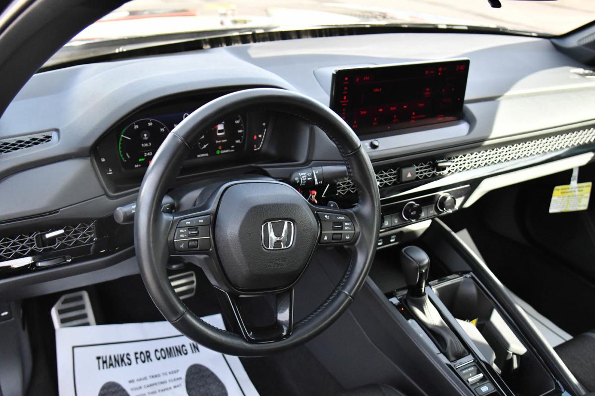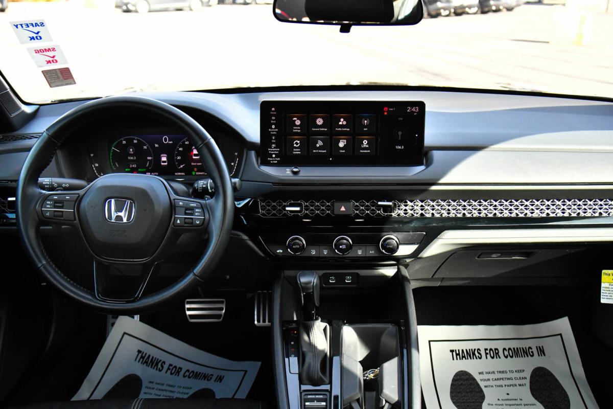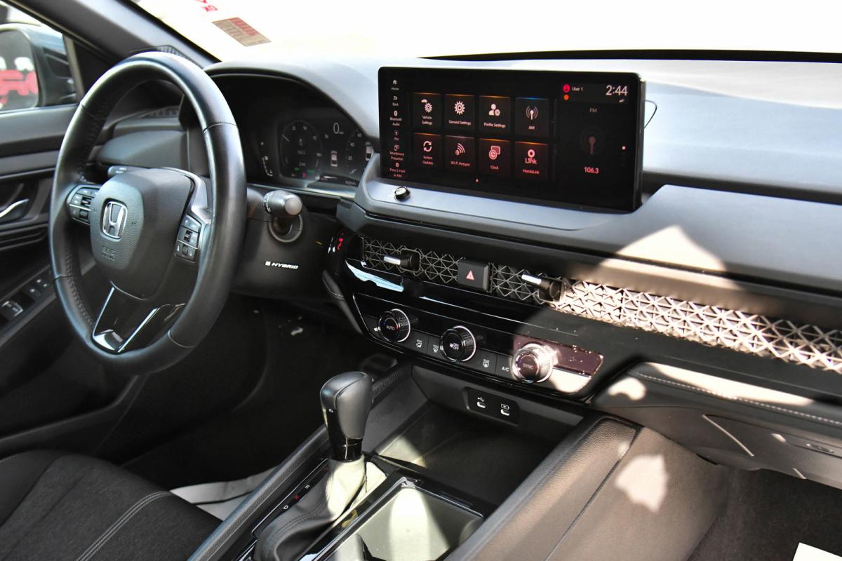 Boasts 41 Highway MPG and 46 City MPG! This Honda Accord Hybrid boasts a Gas/Electric I-4 2.0 L/122 engine powering this Variable transmission. Wheels: 19 x 8.5J Berlina Black -inc: machined face, Vehicle Stability Assist (VSA) Electronic Stability Control (ESC), Valet Function.*This Honda Accord Hybrid Comes Equipped with These Options *Trunk Rear Cargo Access, Trip Computer, Transmission: Electronic Continuously Variable -inc: econ, normal, sport and individual modes, Traffic Jam Assist, Tires: 235/40R19 96V AS, Tire Specific Low Tire Pressure Warning, Tire mobility kit, Strut Front Suspension w/Coil Springs, Speed Sensitive Variable Intermittent Wipers, Smart Device Remote Engine Start.