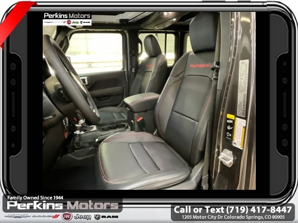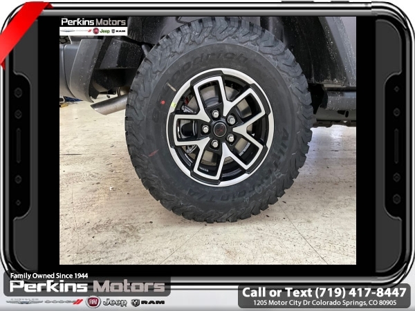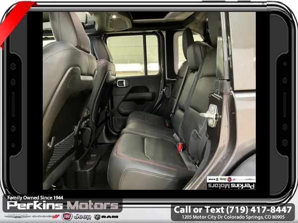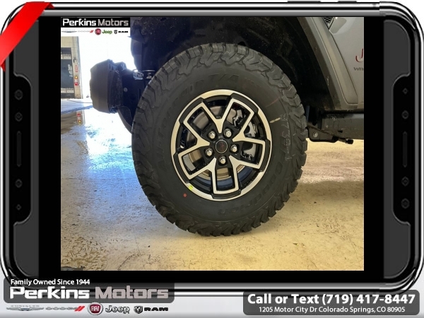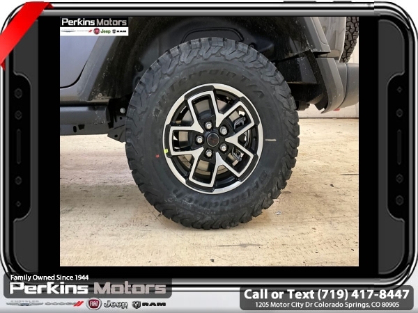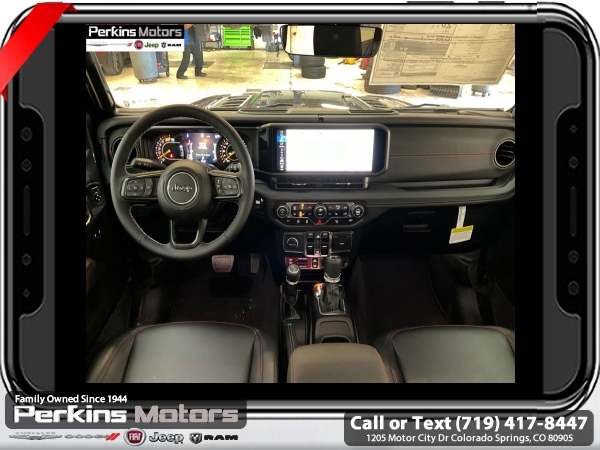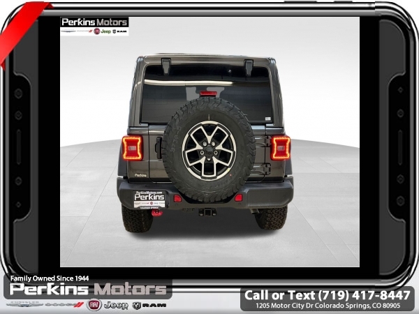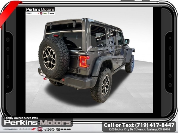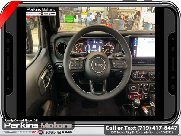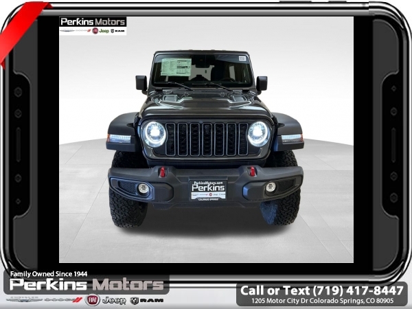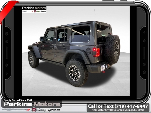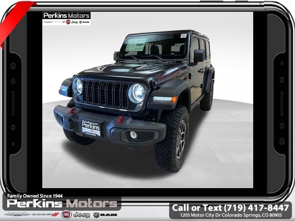 Factory MSRP: $68,635 $8,701 off MSRP! Granite Crystal Metallic Clearcoat 2025 Jeep Wrangler Rubicon 4WD 8-Speed Automatic 3.6L V6 24V VVT<br><br>Check us out at www.perkinsmotors.com to see our specials! Since opening our doors in 1944, we’ve been proud to serve Colorado Springs, CO, and the surrounding areas of Pueblo, Castle Rock and Denver, CO. Throughout this time of being family owned for 80 years, we’ve maintained a firm commitment to our customers: to offer a wide selection of New Chrysler, Dodge, Fiat, Jeep, and Ram vehicles and quality pre-owned vehicles, and provide a quick, no-hassle car-buying process that ensures everyone drives off the lot satisfied with their purchase.<br><br>Convenience Group (Heated Front Seats, Heated Steering Wheel, and Universal Garage Door Opener), Quick Order Package 24R Rubicon, Safety Group (Auto High Beam Headlamp Control, Blind Spot & Cross Path Detection, and ParkSense Rear Park Assist System), Technology Group (12.3 Touchscreen Display, 4G LTE Wi-Fi Hot Spot, Apple CarPlay, Auto-Dimming Rear-View Mirror, Connected Travel & Traffic Services, Connectivity - US/Canada, Google Android Auto, GPS Navigation, HD Radio, Integrated Off-Road Camera, Integrated Voice Command w/Bluetooth, Radio: Uconnect 5 Nav w/12.3 Display, SiriusXM Radio Service, and SiriusXM w/360L), 4-Wheel Disc Brakes, 4.10 Rear Axle Ratio, 8 Speakers, 97 MPH Vehicle Max Speed Calibration, ABS brakes, Air Conditioning, Alloy wheels, Alpine Premium Audio System, AM/FM radio: SiriusXM, Apple CarPlay/Android Auto, Automatic temperature control, Aux Battery, Auxiliary Switches, Body Color 3-Piece Hard Top, Brake assist, Class II Receiver Hitch, Cloth Low-Back Bucket Seats, Compass, Cruise Control, Delay-off headlights, Driver door bin, Driver vanity mirror, Dual front impact airbags, Dual front side impact airbags, Electronic Stability Control, Emergency communication system: Jeep Connect, Freedom Panel Storage Bag, Front anti-roll bar, Front Bucket Seats, Front Center Armrest w/Storage, Front dual zone A/C, Front fog lights, Front License Plate Bracket (DISC), Front reading lights, Fully automatic headlights, Heated door mirrors, Illuminated entry, Integrated roll-over protection, Jeep Trail Rated Kit, Low tire pressure warning, MOPAR All-Weather Floor Mats, MOPAR Doors Off Mirror Kit, MOPAR Hardtop Headliner, Non-Lock Fuel Cap w/o Discriminator, Occupant sensing airbag, Outside temperature display, Overhead airbag, Panic alarm, ParkView Rear Back-Up Camera, Passenger door bin, Passenger vanity mirror, Performance Suspension, Power door mirrors, Power steering, Power windows, Radio data system, Radio: Uconnect 5 w/12.3 Display, Rear anti-roll bar, Rear reading lights, Rear Window Defroster, Rear Window Wiper/Washer, Remote keyless entry, Security system, Split folding rear seat, Steering wheel mounted audio controls, Stop-Start Dual Battery System, Tachometer, Telescoping steering wheel, Tilt steering wheel, Traction control, Trip computer, Variably intermittent wipers, Voltmeter, and Wheels: 17 x 7.5 Machined/Painted Black.