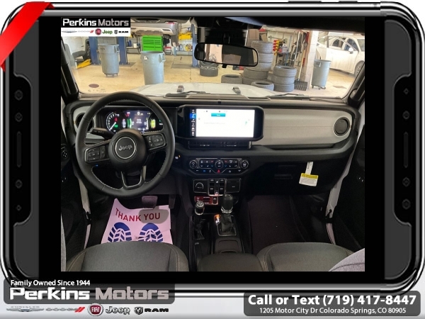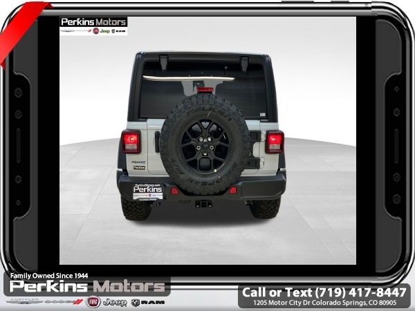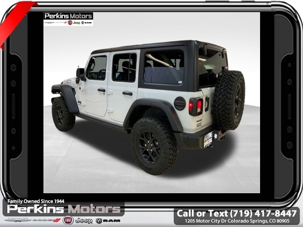 Factory MSRP: $64,060 $14,000 off MSRP! Priced below KBB Fair Purchase Price! Bright White Clearcoat 2025 Jeep Wrangler Willys 4xe 4WD 8-Speed Automatic 2.0L I4 DOHC<br>2.0L I4 DOHC.<br>Check us out at www.perkinsmotors.com to see our specials! Since opening our doors in 1944, we’ve been proud to serve Colorado Springs, CO, and the surrounding areas of Pueblo, Castle Rock and Denver, CO. Throughout this time of being family owned for 80 years, we’ve maintained a firm commitment to our customers: to offer a wide selection of New Chrysler, Dodge, Fiat, Jeep, and Ram vehicles and quality pre-owned vehicles, and provide a quick, no-hassle car-buying process that ensures everyone drives off the lot satisfied with their purchase.<br><br>Convenience Group (Heated Front Seats and Remote Start System), Quick Order Package 29W Willys 4xe (Conventional Differential Front Axle, Off-Road Plus Mode, and Wheels: 17 x 7.5 Painted Black), 2.0L I4 DOHC, 3.73 Rear Axle Ratio, 4-Wheel Disc Brakes, 8 Speakers, ABS brakes, Air Conditioning, Alloy wheels, Apple CarPlay/Android Auto, Black 3-Piece Hard Top, Brake assist, Cloth Low-Back Bucket Seats, Compass, Cruise Control, Delay-off headlights, Driver door bin, Driver vanity mirror, Dual front impact airbags, Dual front side impact airbags, Electronic Stability Control, Front anti-roll bar, Front Bucket Seats, Front Center Armrest w/Storage, Front fog lights, Front License Plate Bracket (DISC), Front reading lights, Fully automatic headlights, Heated door mirrors, Illuminated entry, Integrated roll-over protection, Jeep Trail Rated Kit, Low tire pressure warning, MOPAR Cargo Tub Liner, MOPAR Doors Off Mirror Kit, MOPAR Hardtop Headliner, MOPAR Hinge-Gate Reinforcement, MOPAR Plastic Door Sill Guards, Occupant sensing airbag, Outside temperature display, Overhead airbag, Panic alarm, ParkView Rear Back-Up Camera, Passenger door bin, Passenger vanity mirror, Power door mirrors, Power steering, Power windows, Radio data system, Radio: Uconnect 5 w/12.3 Display, Rear anti-roll bar, Rear reading lights, Remote keyless entry, Security system, Split folding rear seat, Sport Suspension, Steering wheel mounted audio controls, Tachometer, Telescoping steering wheel, Tilt steering wheel, Traction control, Trip computer, Variably intermittent wipers, Voltmeter, and Wheels: 20 x 8 Machined/Painted Gray. Sale price includes all manufacture's incentives and dealer discounts. Sale price not available on lease or compatible with special APR. $500 - 2025 National Jeep Celebration Event Bonus Cash . Exp. 03/31/2025 $6500 - 2025 National Retail Consumer Cash. Exp. 03/31/2025