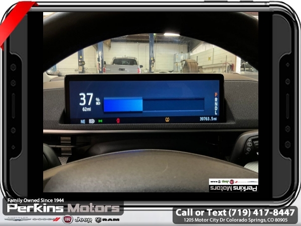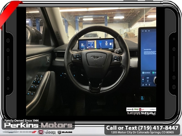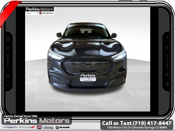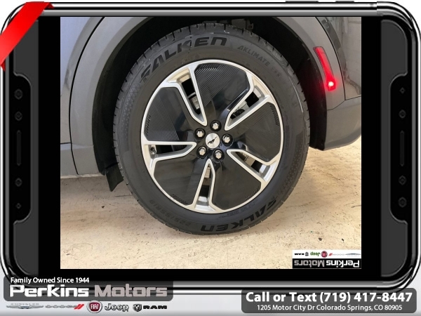 Gray AWD Dual Electric Motor Single-Speed Automatic<br><br>Navigation system: Connected Navigation.<br><br><br>Check us out at www.perkinsmotors.com to see our specials! Since opening our doors in 1944, we’ve been proud to serve Colorado Springs, CO, and the surrounding areas of Pueblo, Castle Rock and Denver, CO. Throughout this time of being family owned for 80 years, we’ve maintained a firm commitment to our customers: to offer a wide selection of New Chrysler, Dodge, Fiat, Jeep, and Ram vehicles and quality pre-owned vehicles, and provide a quick, no-hassle car-buying process that ensures everyone drives off the lot satisfied with their purchase.<br><br><br>Awards:<br> * JD Power Automotive Performance, Execution and Layout (APEAL) Study * NACTOY 2021 North American Utility of the Year<br><br>Navigation system: Connected Navigation, 4-Wheel Disc Brakes, 6 Speakers, ABS brakes, ActiveX Bucket Seats, Air Conditioning, Alloy wheels, AM/FM radio: SiriusXM, AM/FM Stereo, Apple CarPlay/Android Auto, Auto High-beam Headlights, Auto-dimming Rear-View mirror, Automatic temperature control, Axle Ratio: 9.05, Brake assist, Bumpers: body-color, Compass, Cruise Control, Delay-off headlights, Driver door bin, Driver vanity mirror, Dual front impact airbags, Dual front side impact airbags, Electronic Stability Control, Emergency communication system: 911 Assist, Exterior Parking Camera Rear, Four wheel independent suspension, Front anti-roll bar, Front Bucket Seats, Front Center Armrest, Front dual zone A/C, Front reading lights, Fully automatic headlights, Garage door transmitter, Heated door mirrors, Illuminated entry, Knee airbag, Low tire pressure warning, Occupant sensing airbag, Outside temperature display, Overhead airbag, Overhead console, Panic alarm, Passenger door bin, Passenger vanity mirror, Power door mirrors, Power driver seat, Power steering, Power windows, Radio data system, Rain sensing wipers, Rear anti-roll bar, Rear seat center armrest, Rear side impact airbag, Rear window defroster, Rear window wiper, Remote keyless entry, Security system, SiriusXM Radio w/360L, Speed-sensing steering, Speed-Sensitive Wipers, Split folding rear seat, Spoiler, Steering wheel mounted audio controls, SYNC 4A w/Enhanced Voice Recognition, Telescoping steering wheel, Tilt steering wheel, Traction control, Trip computer, Turn signal indicator mirrors, Variably intermittent wipers, and Wheels: 18 Carbonized Gray-Painted Aluminum.