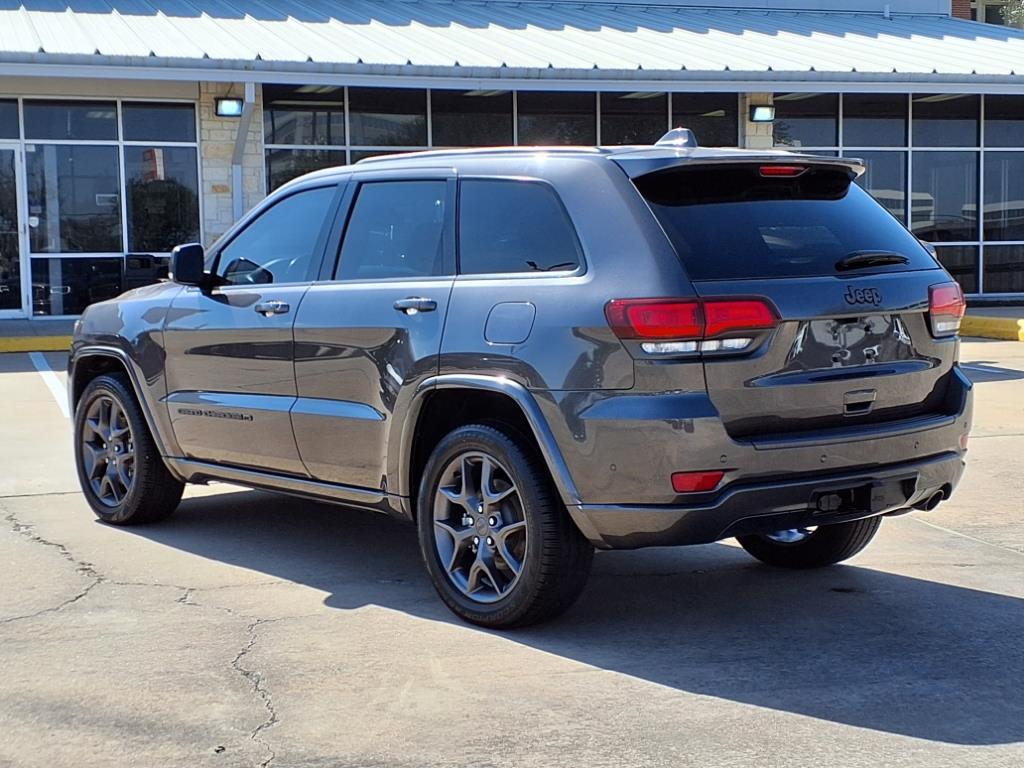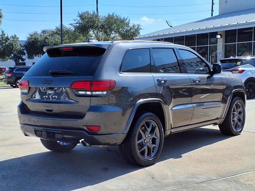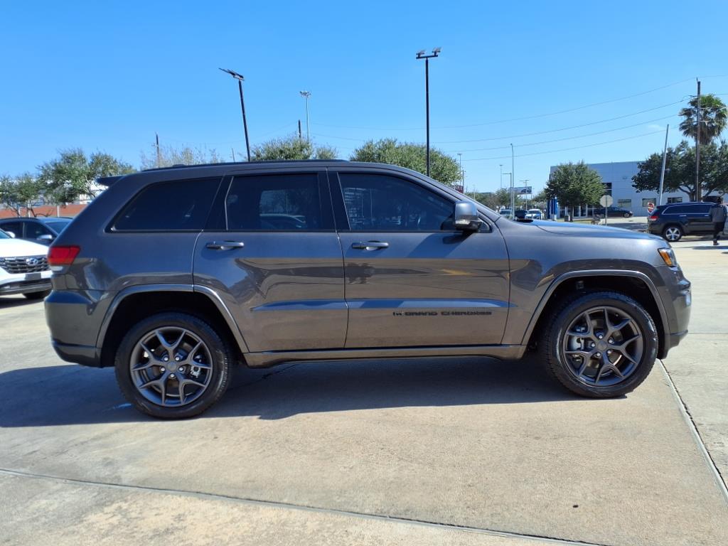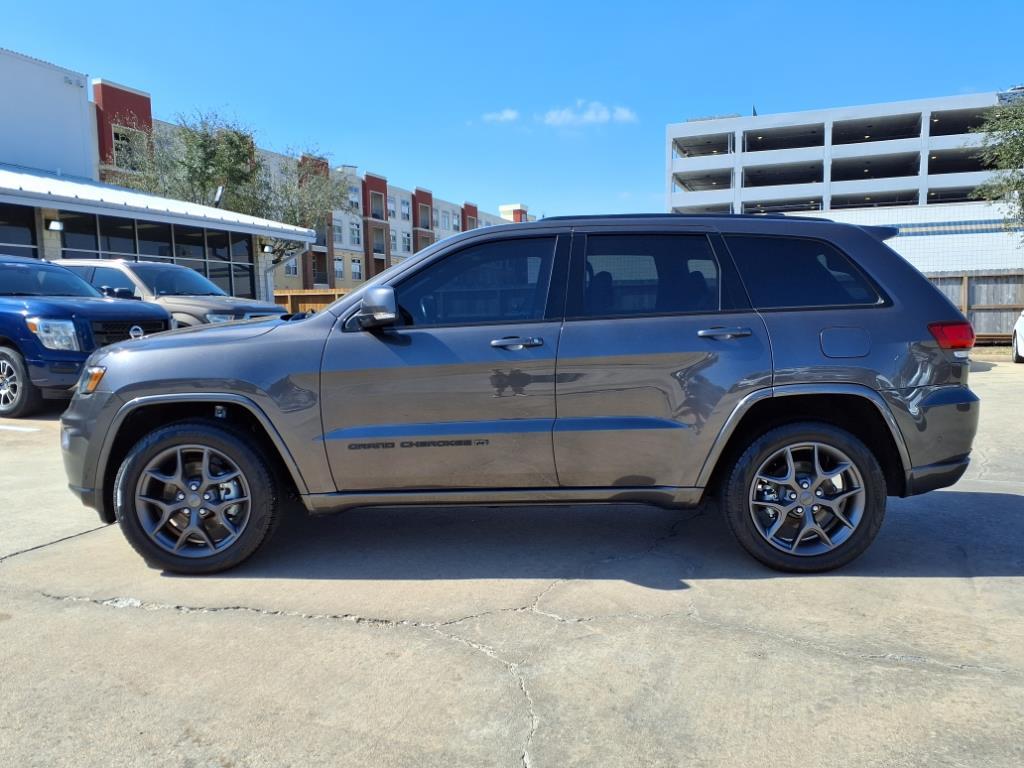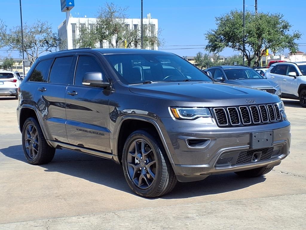 This Granite Crystal Metallic Clearcoat 2021 Jeep Grand Cherokee 80th Anniversary would be a welcomed addition to your family or business. \n\n \n\nThis Grand Cherokee has the following features:\n\n\n\n<h4 class=vc_build_package_name>80th Anniversary Luxury Group ($1,895 value)</h4><ul class=vc_build_package_item_list><li>Ventilated Front Seats</li><li>Cargo Compartment Cover</li><li>Dual-Pane Panoramic Sunroof</li><li>Active Noise Control System</li><li>Heated Second Row Seats</li><li>Premium Alpine Speaker System</li><li>506 Watt Amplifier</li><li>Power Tilt/telescope Steering Column</li></ul><h4 class=vc_build_package_name>MOPAR Interior Protection Group ($275 value)</h4><ul class=vc_build_package_item_list><li>MOPAR Cargo Area Liner</li><li>MOPAR Slush Mats</li></ul><h4 class=vc_build_package_name>Trailer Tow Group IV ($995 value)</h4><ul class=vc_build_package_item_list><li>Heavy Duty Engine Cooling</li><li>Normal Duty Suspension</li><li>Rear Load Leveling Suspension</li><li>Full Size Spare Tire</li><li>Steel Spare Wheel</li><li>7 and 4 Pin Wiring Harness</li><li>Class IV Receiver Hitch</li></ul><h4 class=vc_build_package_name>Premium Lighting Group ($1,095 value)</h4><ul class=vc_build_package_item_list><li>Bi-Xenon HID Headlamps</li><li>Auto High Beam Headlamp Control</li><li>LED Daytime Running Headlamps</li><li>Front LED Fog Lamps</li></ul>\n\n\n<h4 class=vc_build_feature_name>Comfort</h4><ul class=vc_build_feature_item_list><li> Ventilated front seats -That's cool. Ventilated front seats provides targeted cool air so you and your passenger can get comfortable quicker in hot weather. Getting comfortable is no sweat when you have ventilated front seats.</li></ul><h4 class=vc_build_feature_name>Exterior and Appearance</h4><ul class=vc_build_feature_item_list><li> First-row power express open/close sunroof - Let more of the outside in. Now you can be in the sun or gaze at the stars from the comfort of your seat, and have a more open cabin during your drive. With one touch of a button, The first-row power express open/close sunroof is a breath of fresh air.</li></ul><h4 class=vc_build_feature_name>Technology and Telematics</h4><ul class=vc_build_feature_item_list><li> Smart device mirroring - Smartphone, meet smart car. You can control your device through your vehicle's infotainment system. Smart device mirroring brings together safety and convenience by making it easier to find what you're looking for while keeping your eyes on the road.</li><li> Voice activated integrated navigation system - A to B made easy! Whether it's an errand or a road trip, the voice activated integrated navigation system will guide you to your destination. No more bulky, impossible-to-fold maps, and no more stopping to ask for directions. Just tell it where you want to go, and the voice activated integrated navigation system shows you the right way.</li><li> Wireless connectivity - Strike the cord. Wireless technology makes it easy to place calls without having to fumble with your phone. It integrates your device with the system inside your vehicle for hands-free access. Keep connected and keep your hands on the wheel with wireless connectivity.</li></ul>\n\n\n\n\n \n\nTo be sure you don't miss out, give us a call at and schedule a test drive. We are located at 8811 Lakes At 610 Dr Houston TX 77054. We look forward to seeing you soon.